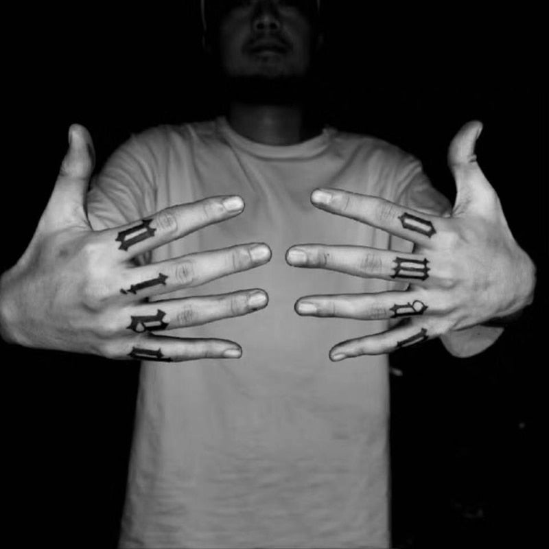 Finger Tattoo Stickers Letter Small Pattern Waterproof Personality Cool Fake Tattoos Men Black Hand Back Temporary Tattoo Women