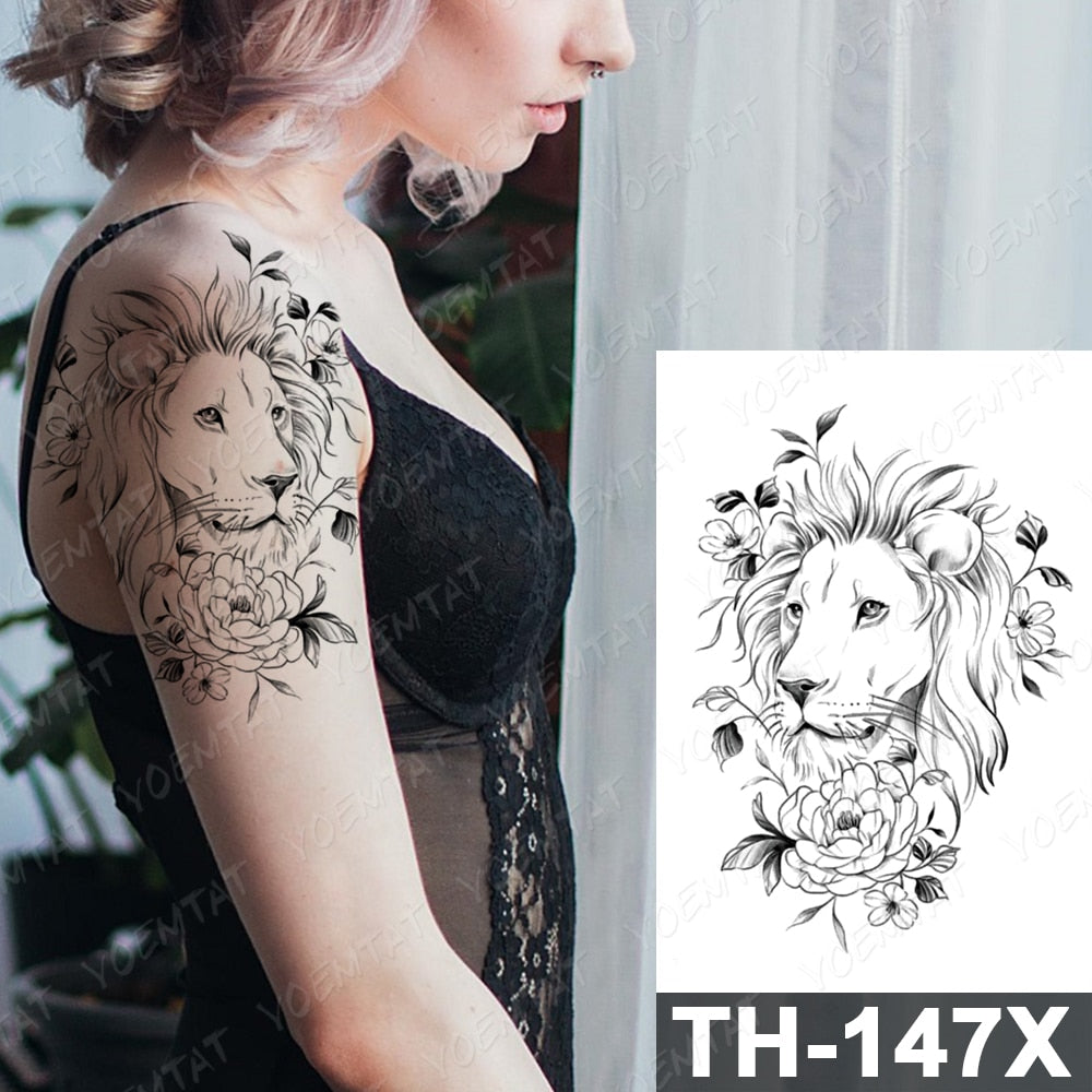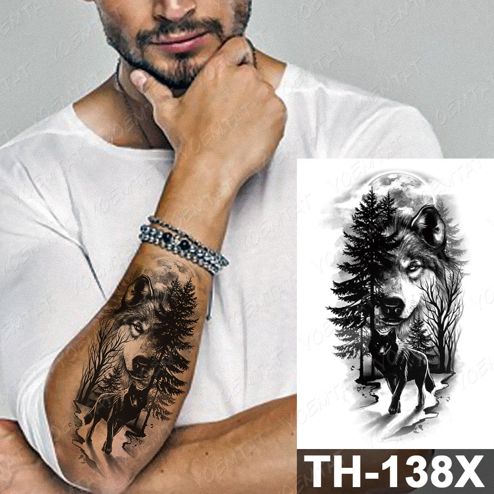 Forest Shadow Wolf Temporary Tattoo Sticker For Men Women Owl Lion Waterproof Fake Henna Tiger Animal Body Art Tatoo Decal