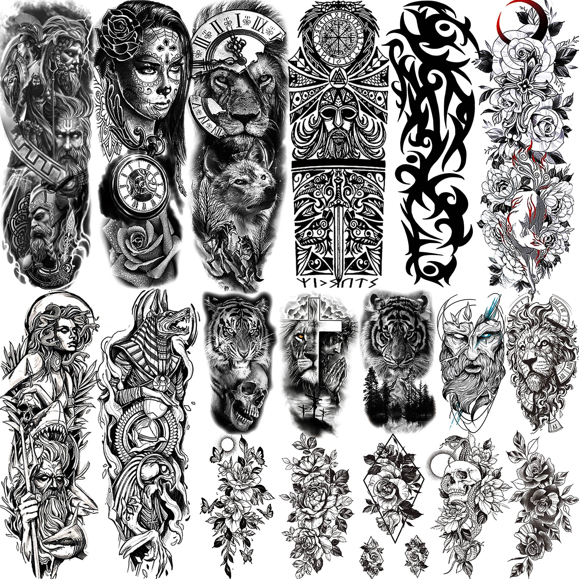Full Arm Temporary Tattoos Sleeve For Men Women Realistic Fake Tatoos Warrior Lion Tiger Flower Tatoo Sticker Black Totem Maori 924-1
