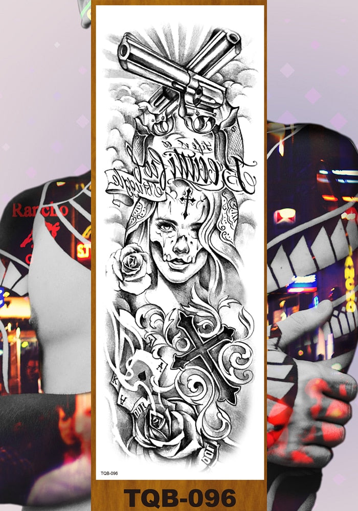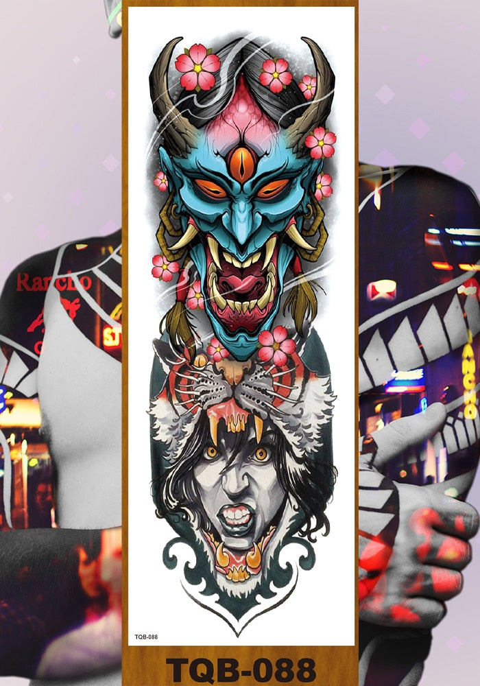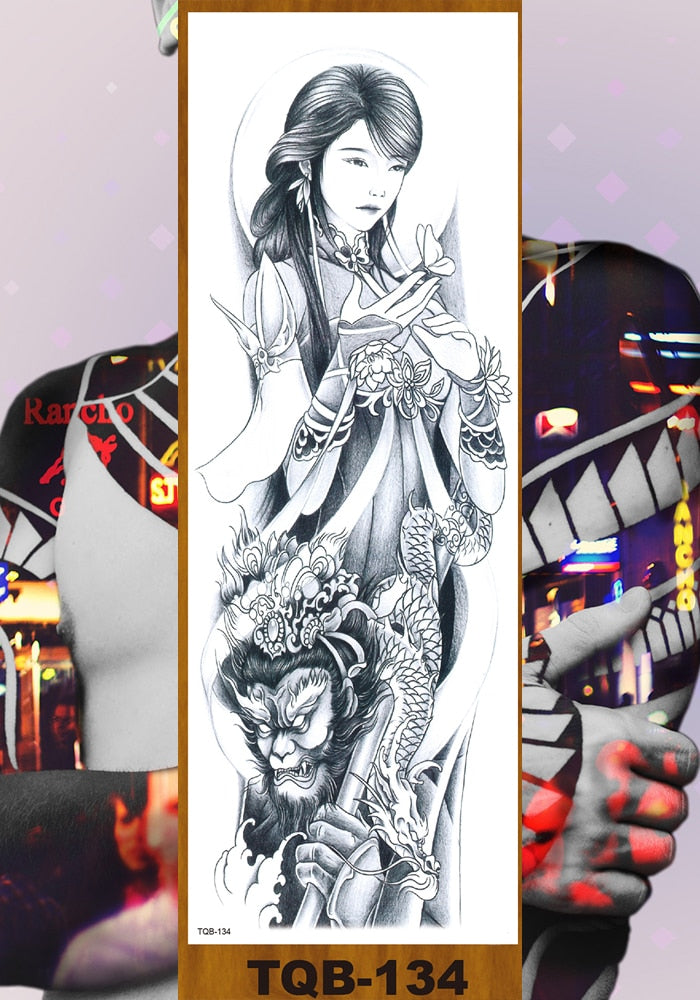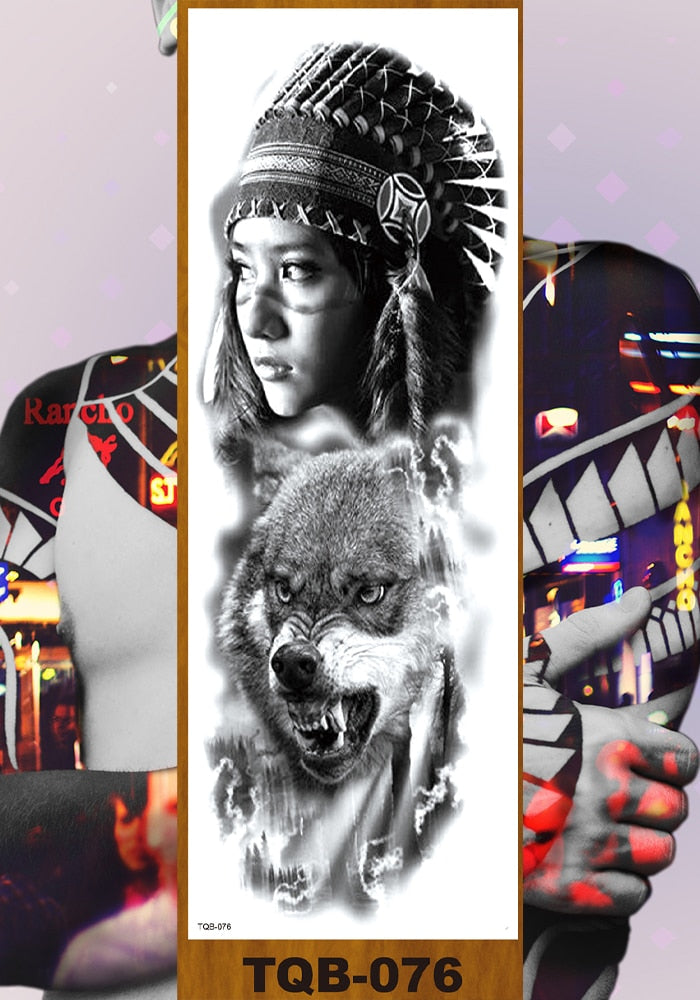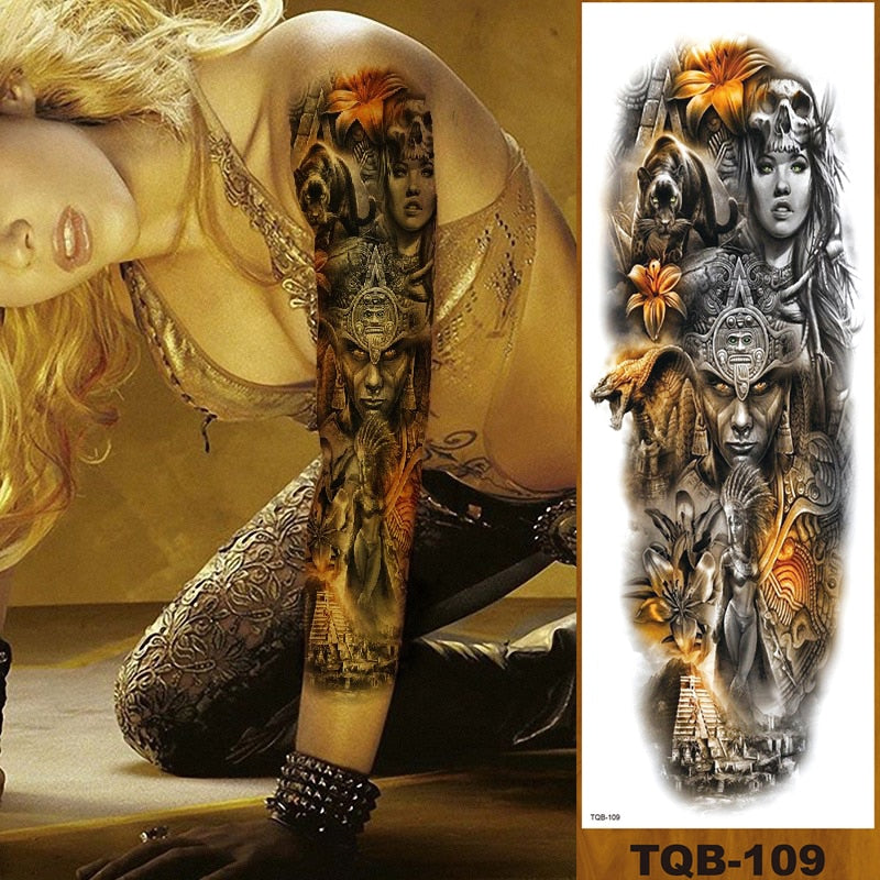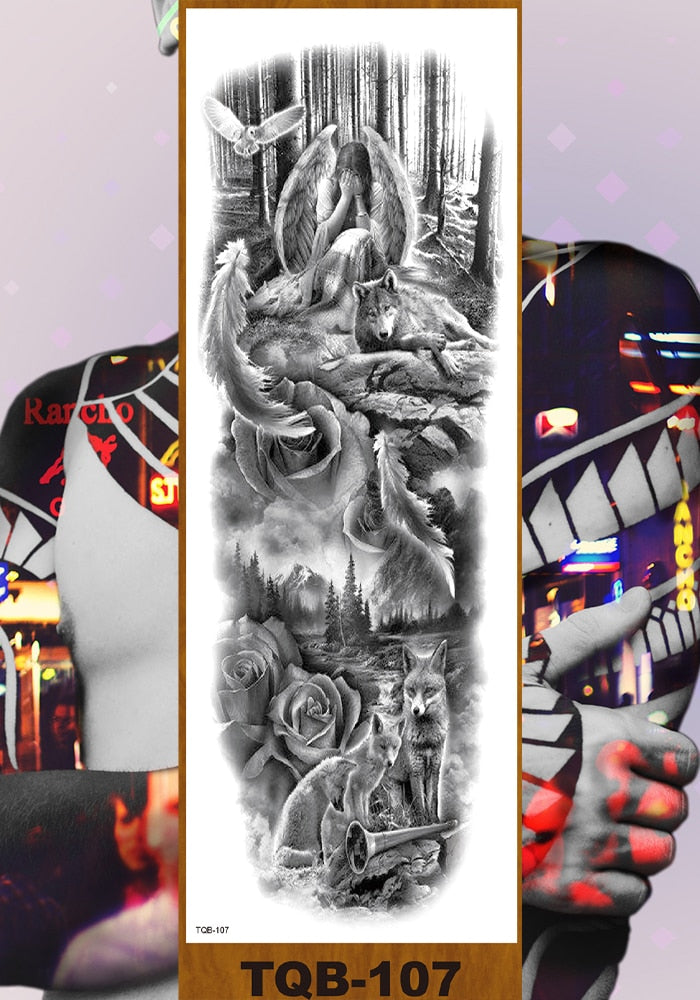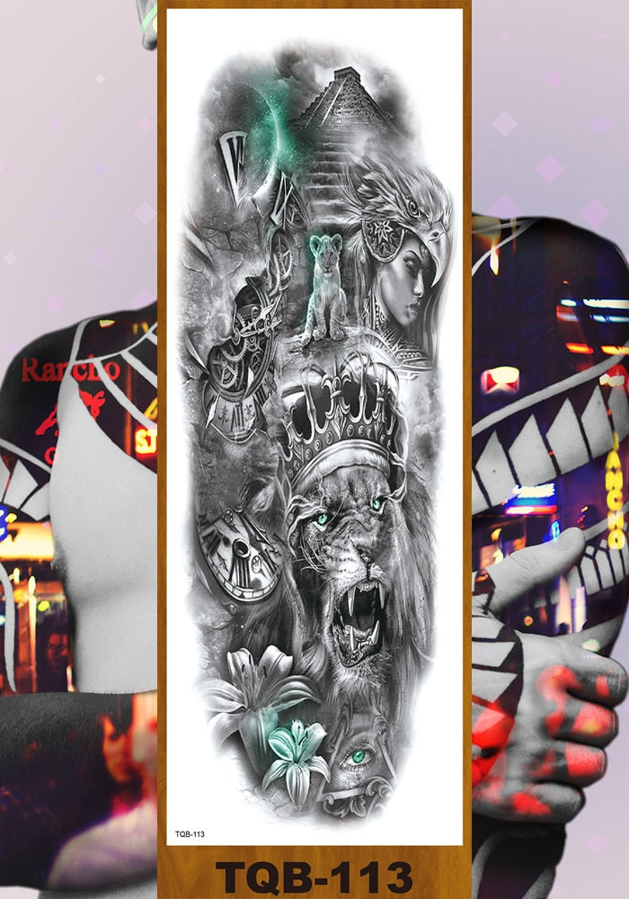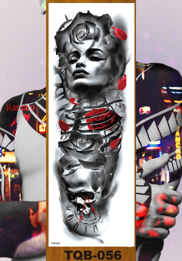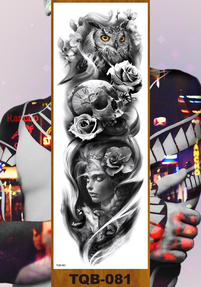 Full Flower Arm Temporary Tattoo Sticker Man Woman Body Leg Art Fake Tatoo Beauty & Snake Bear Owl Fox Mermaid Egypt Queen Sexy