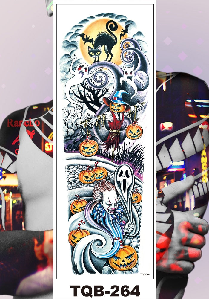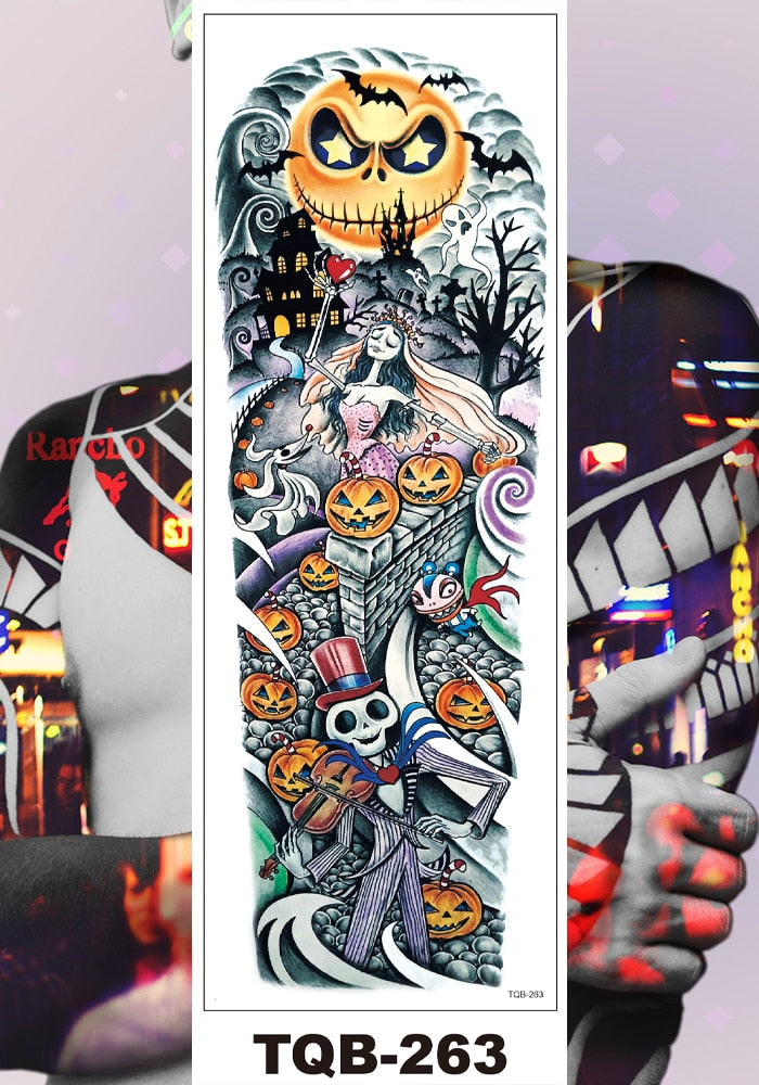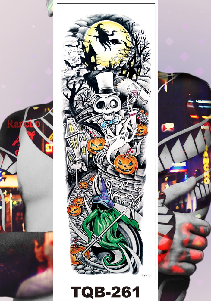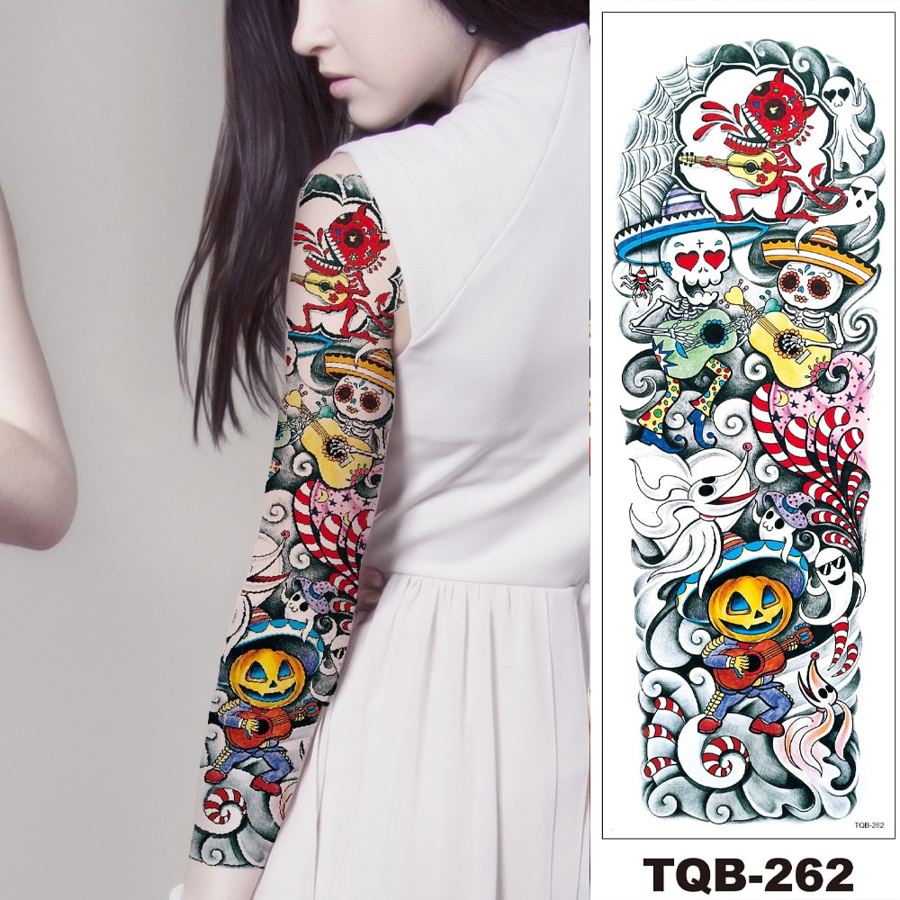 Full Flower Arm Temporary Tattoo Sticker Man Woman Body Leg Fake Tatoo Cute Girl Sexy Skull Rabbit Hotwife Decor Halloween DIY