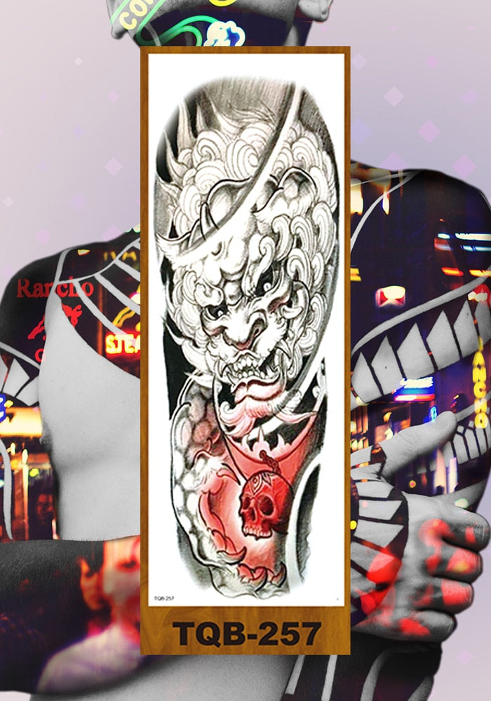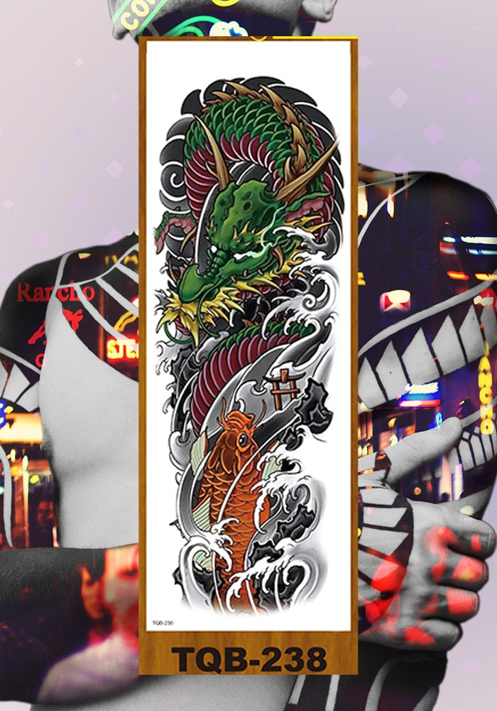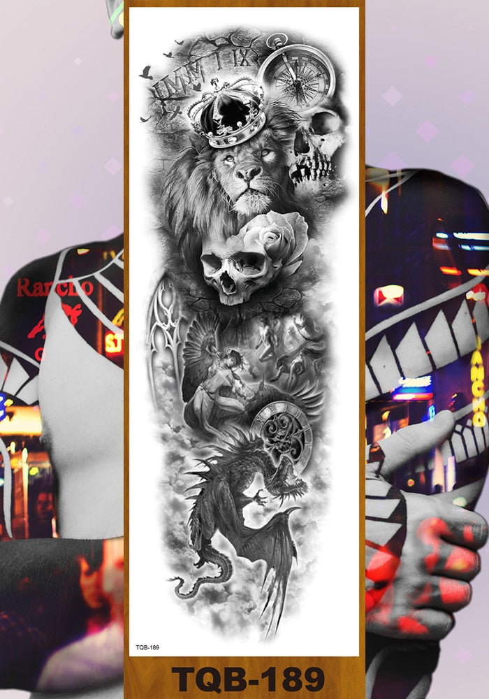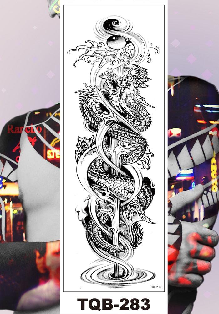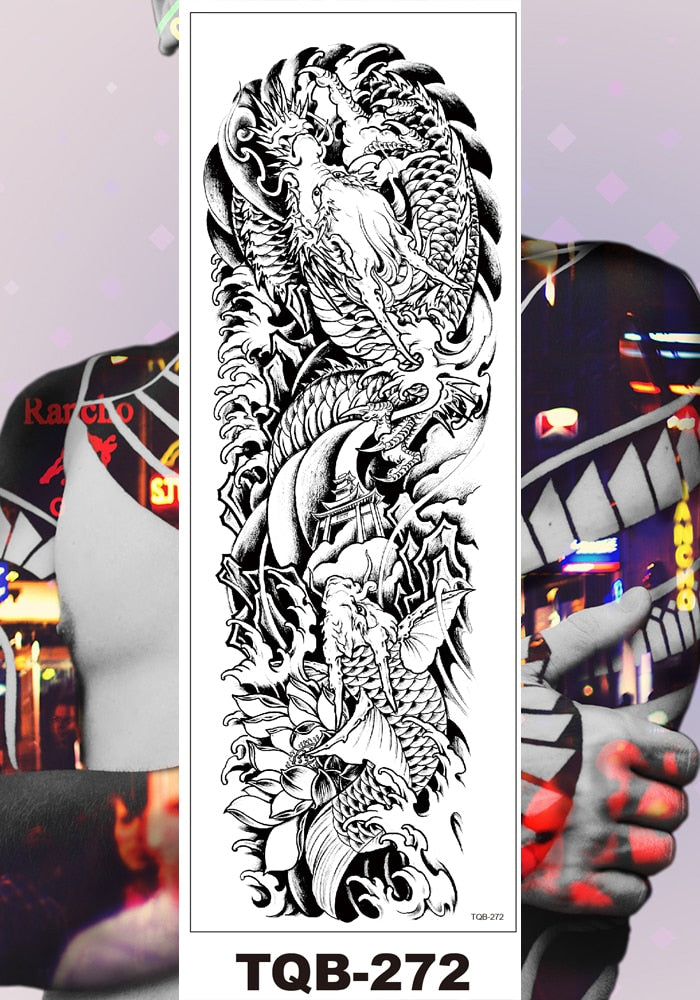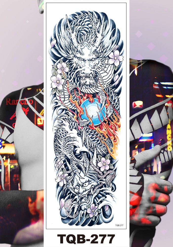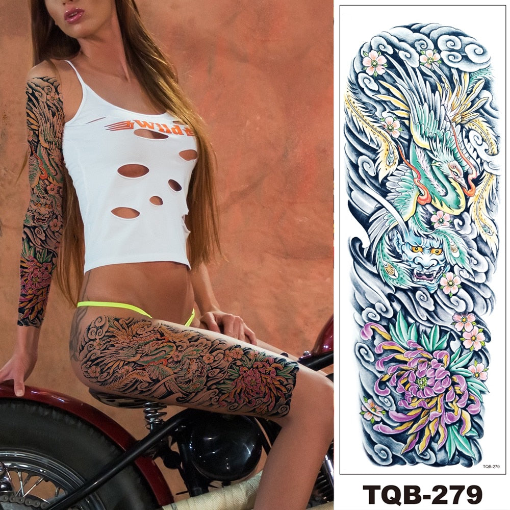 Full Flower Arm Temporary Tattoo Stickers Man Woman Adults Girls Body Sexy Fake Tatoo Dragon Tiger Mythical Beast Koi Skull DIY