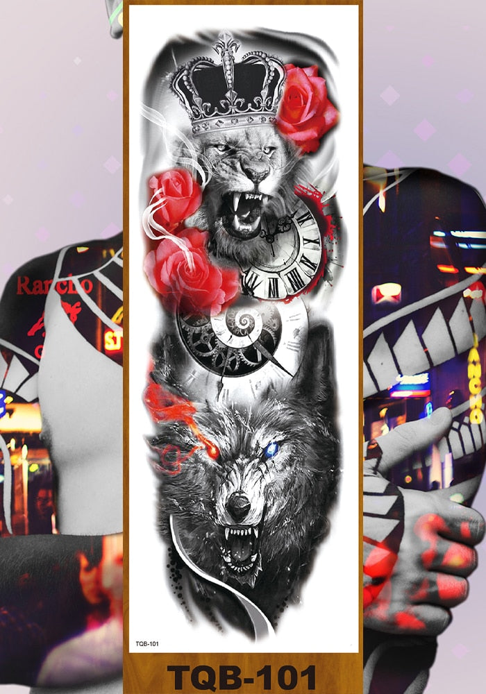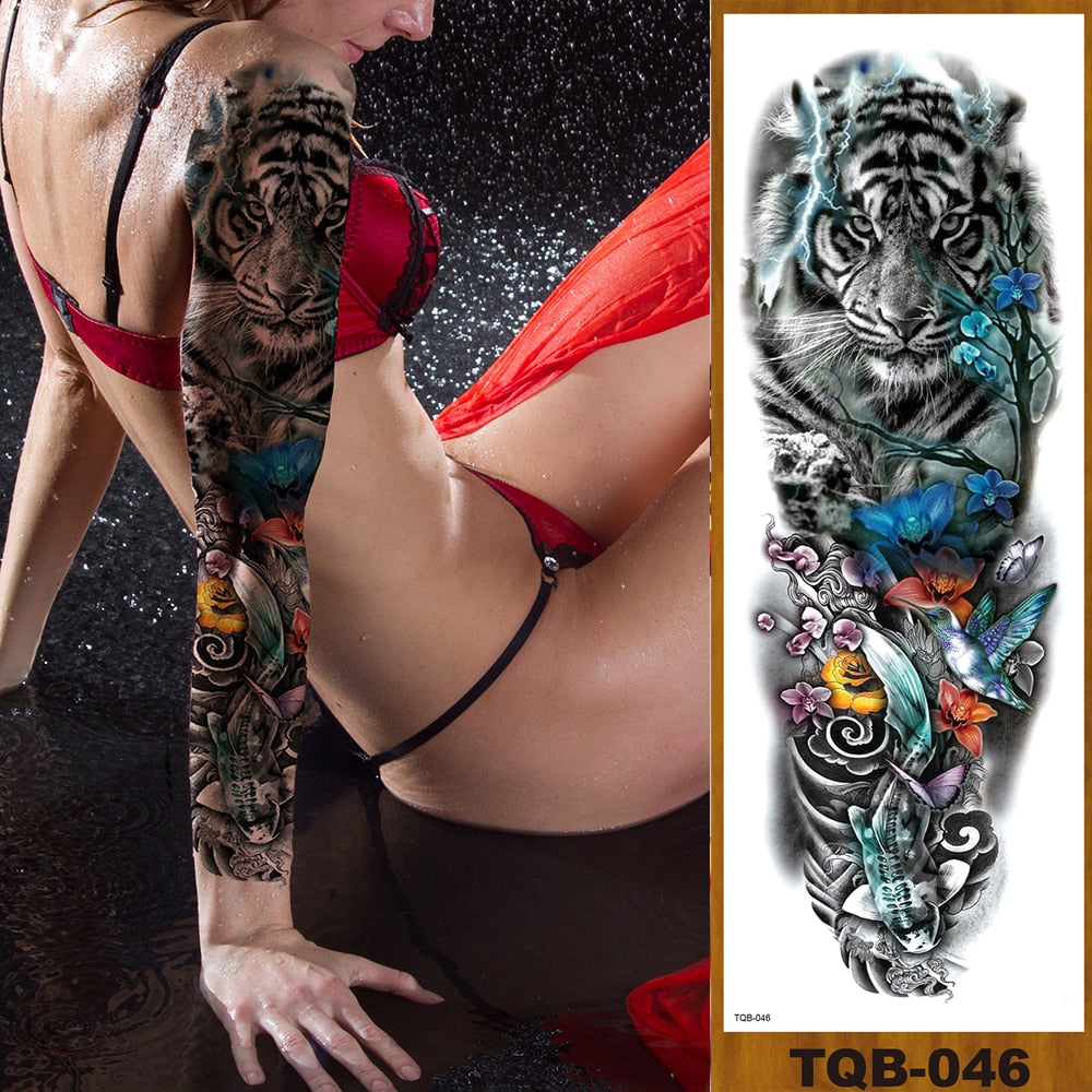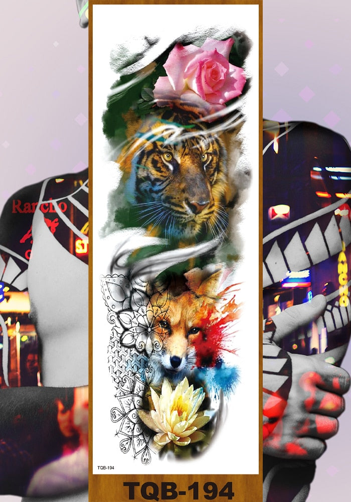 Full Flower Arm Temporary Tattoo Stickers Man Woman Girl Body Leg Fake Tatoo Sexy Fox Bear Owl Cheetah Tiger Timberwolves Lion