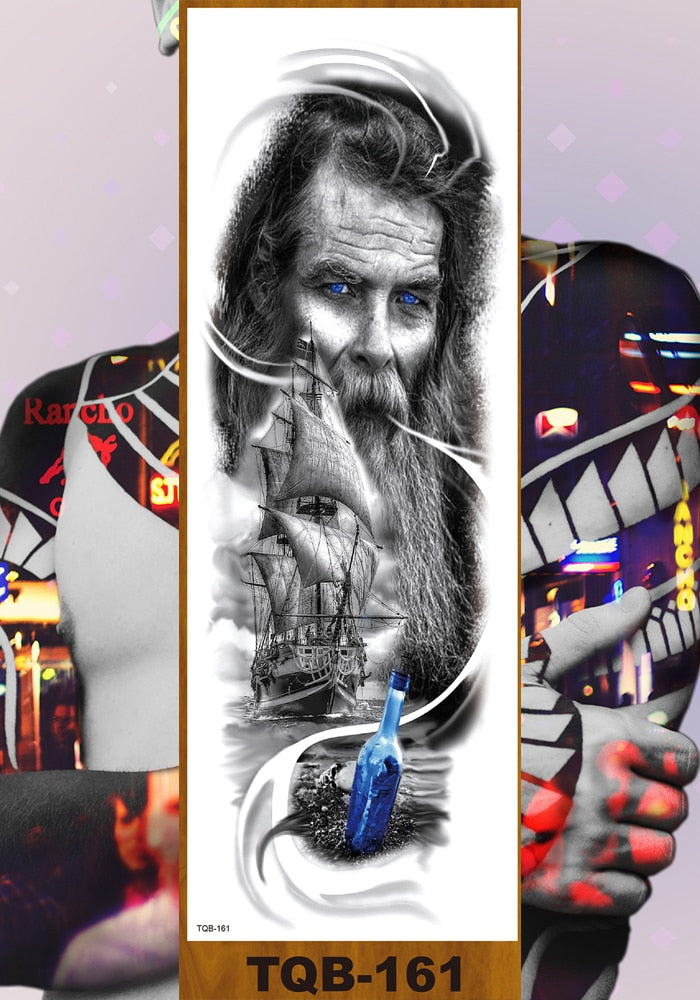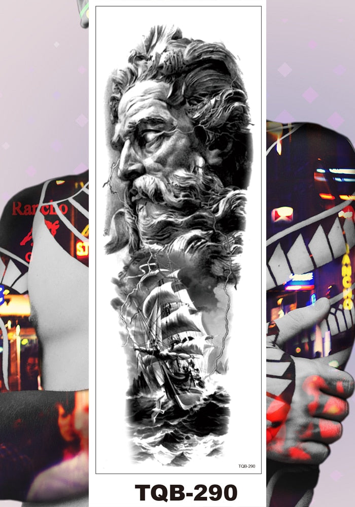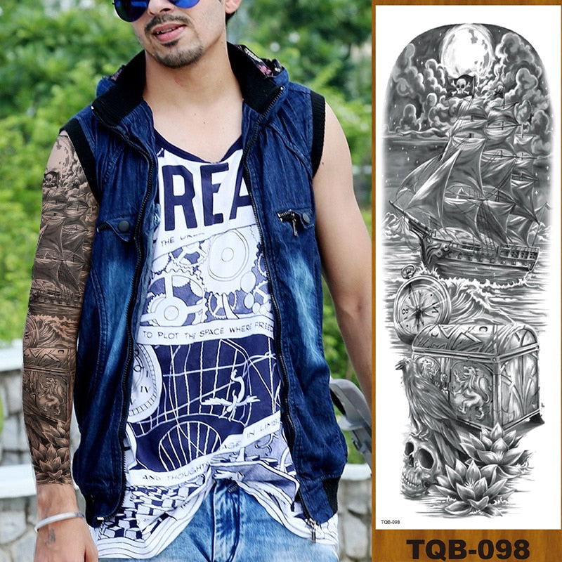 Full Flower Arm Temporary Tattoos Stickers Man Woman Girl Body Fake Tatoo Mechanical Robotic Photorealistic Steampunk Astronaut