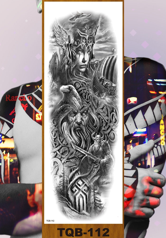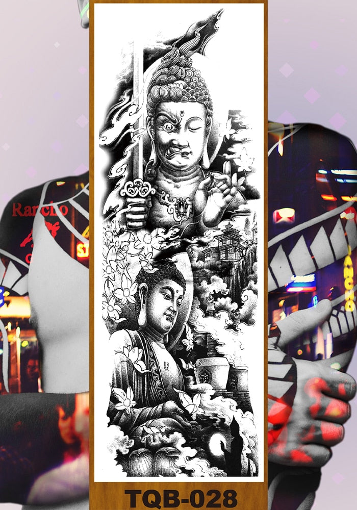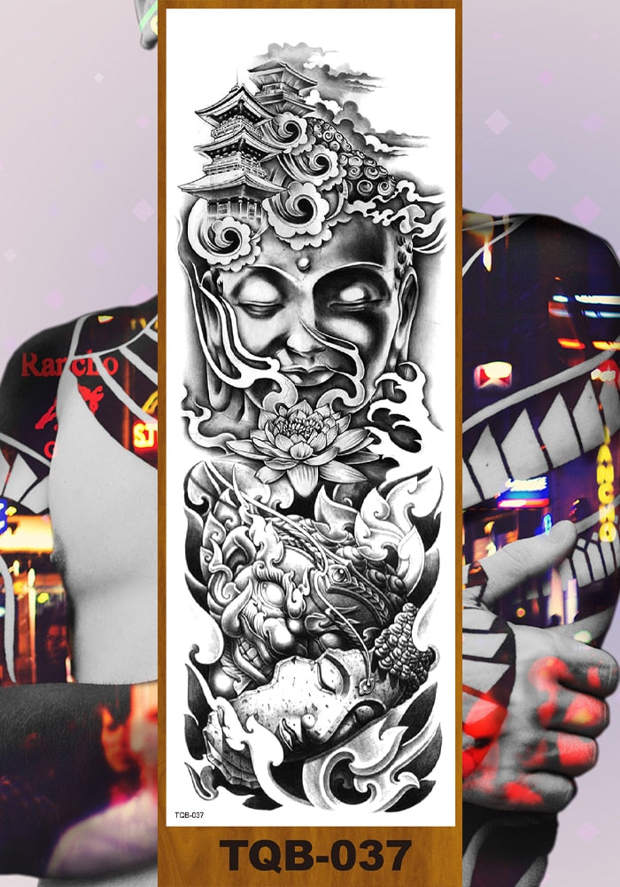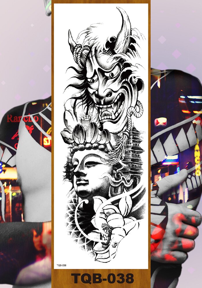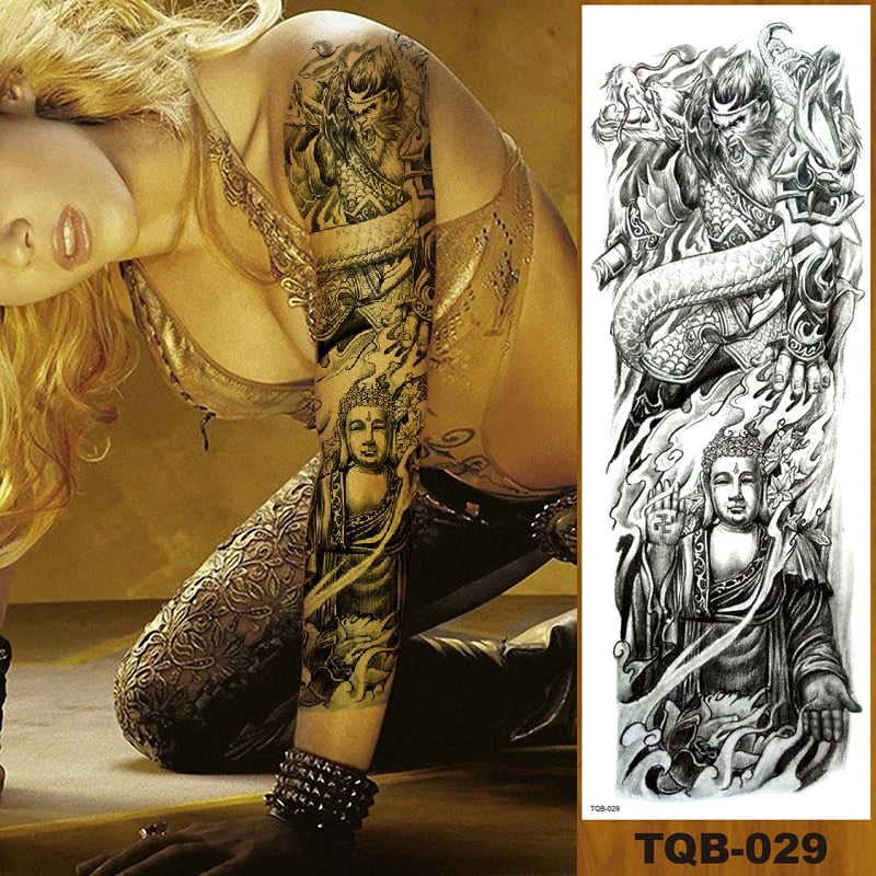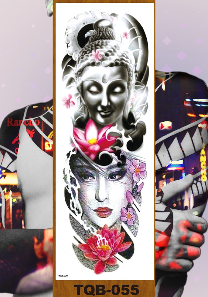 Full Flower Arm Temporary Tattoos Stickers Man Woman Girls Body Leg Fake Tatoo Buddha Bodhisattva Valkyrie Warrior Goddess DIY