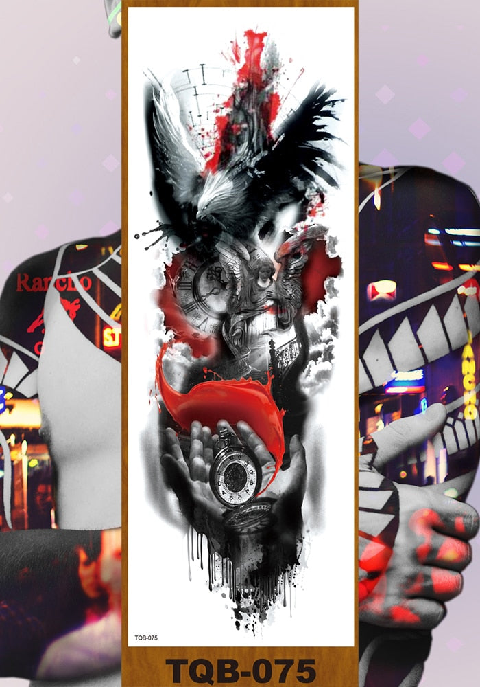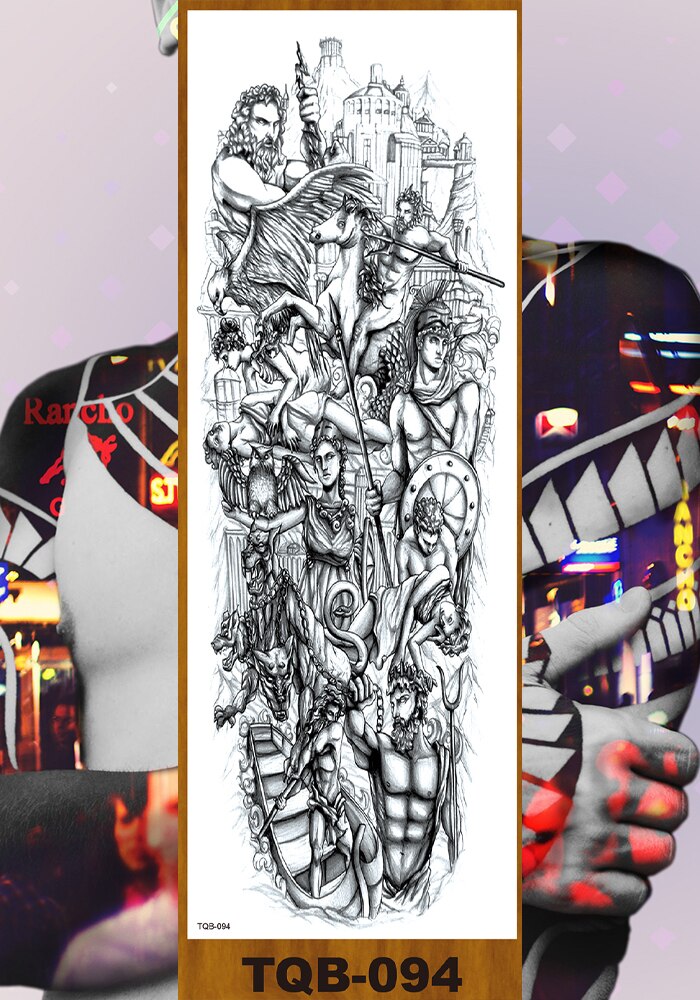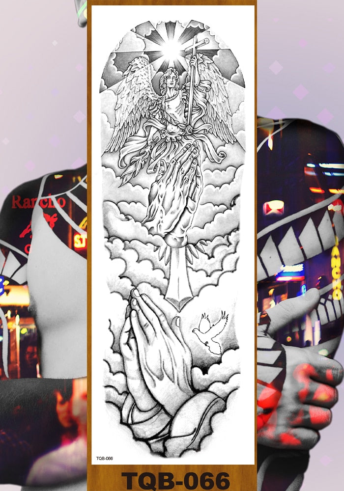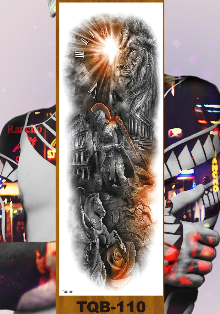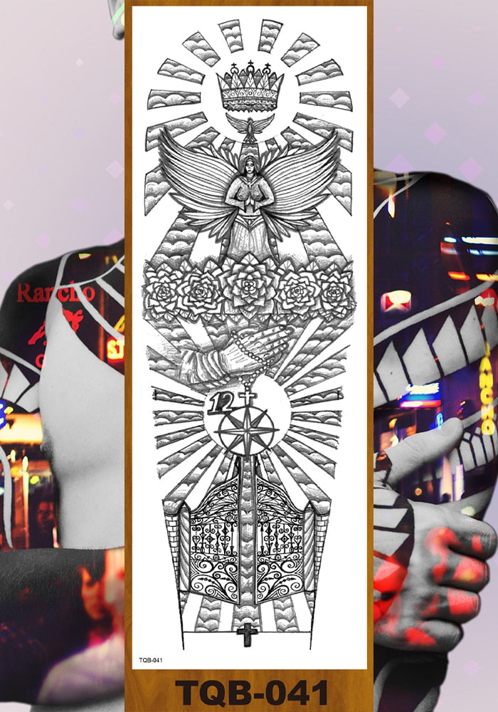 Full Flower Arm Temporary Tattoos Stickers Man Woman Girls Body Leg Fake Tatoo Buddha Bodhisattva Valkyrie Warrior Goddess DIY