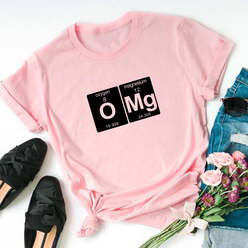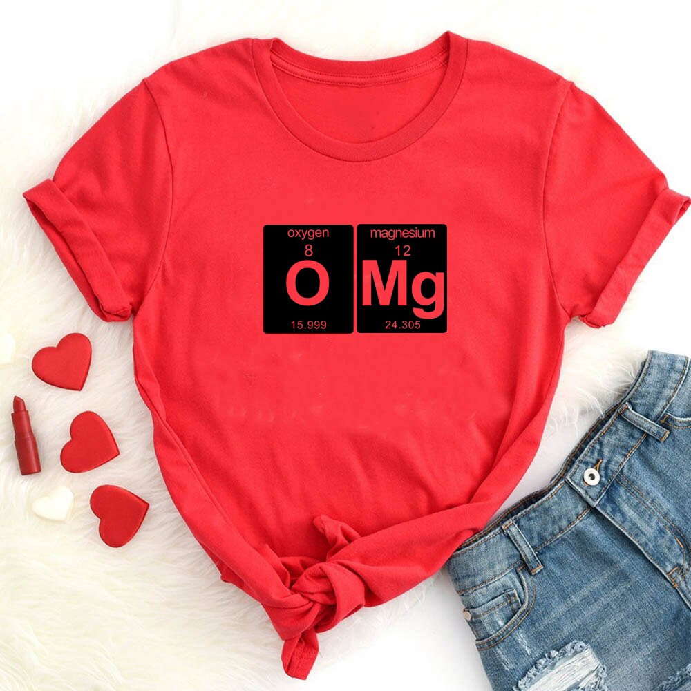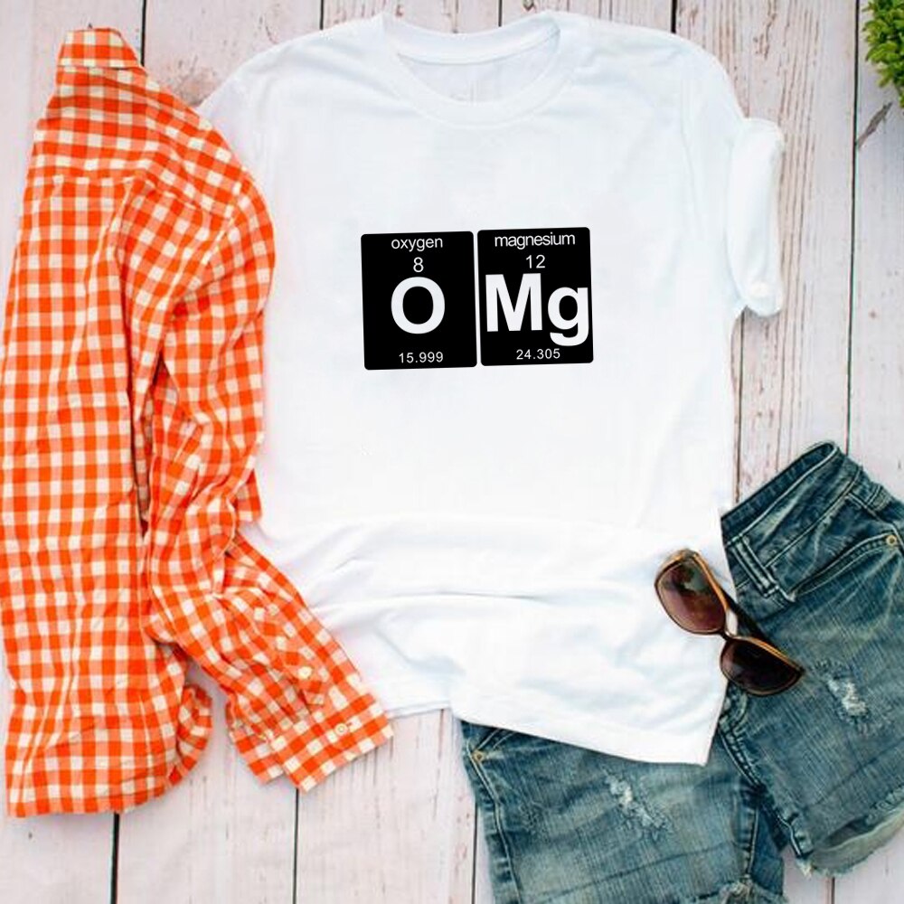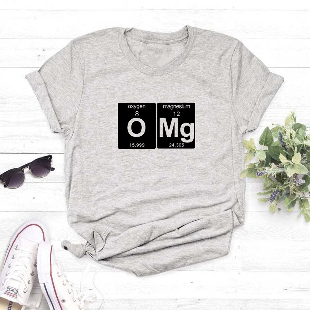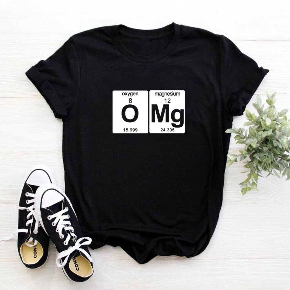 Funny Science cotton T-Shirt OMG T-shirt Oxygen Magnesium Funny Geek Screen Printed T-Shirt Tee Shirt Ladies Women students tops