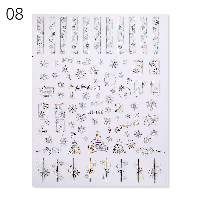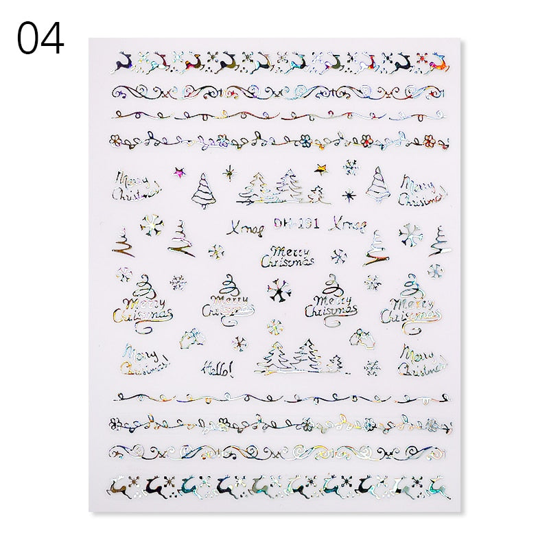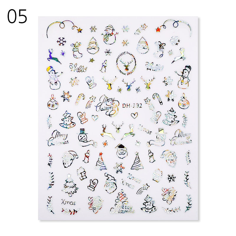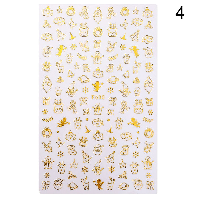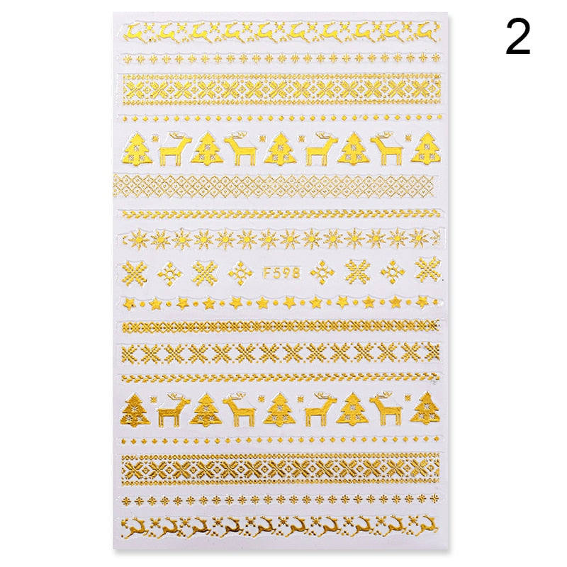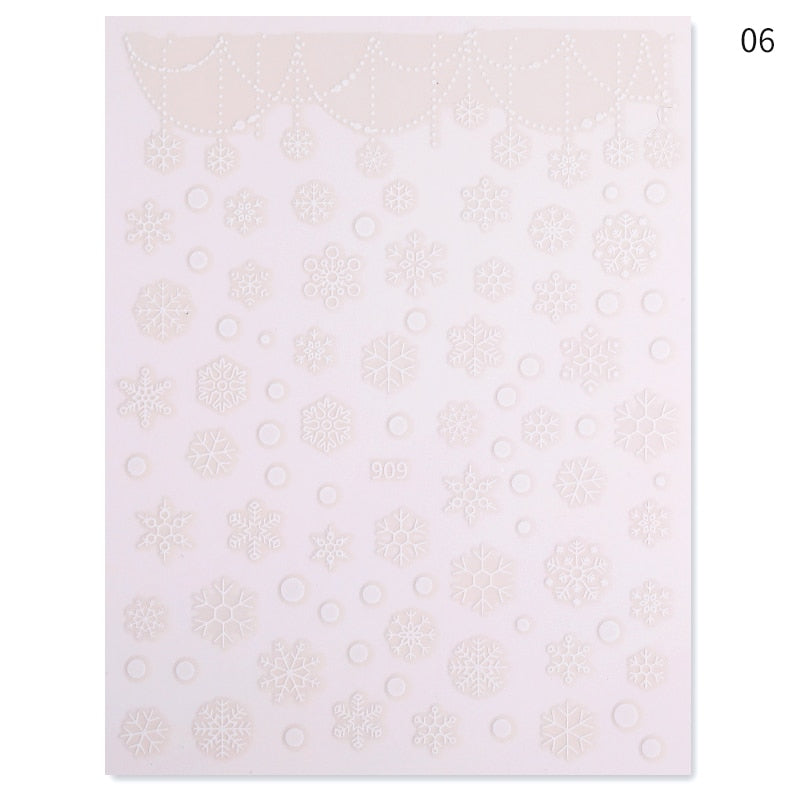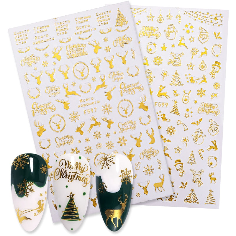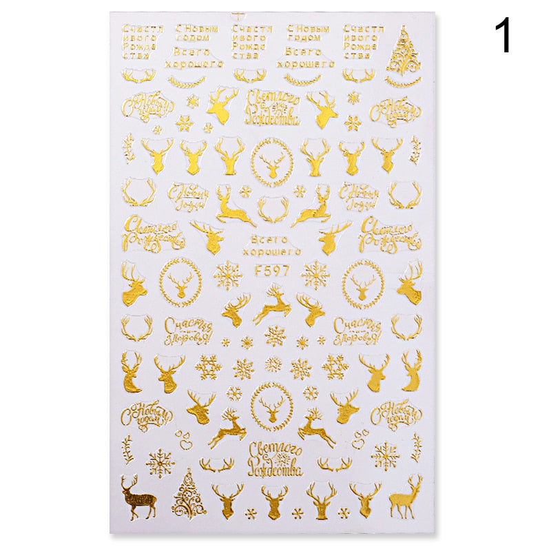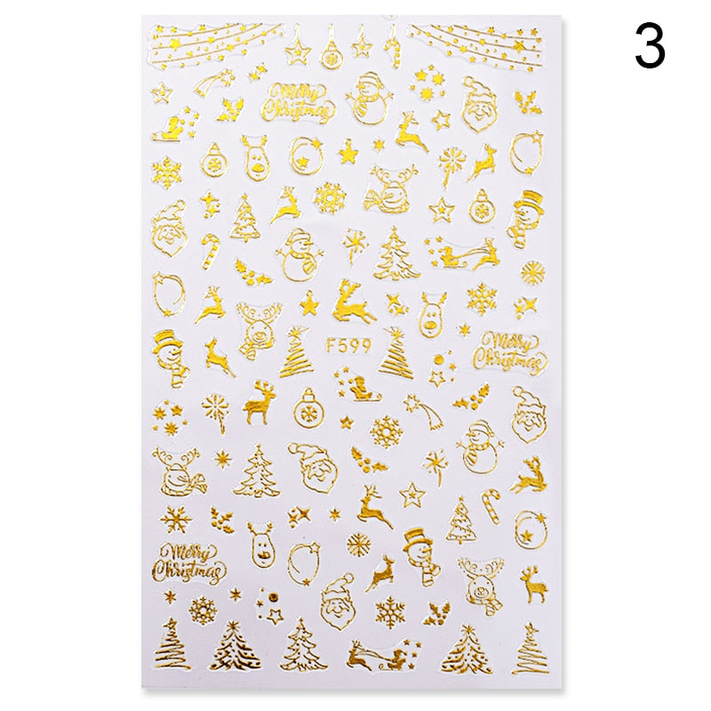Gold Bronzing 3D Christmas Nail Art Decoration Sticker Sparkly White Colorful Glitter Geometry Snowflake Winter Slider Foil
