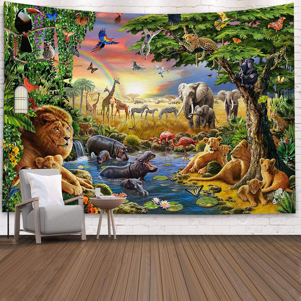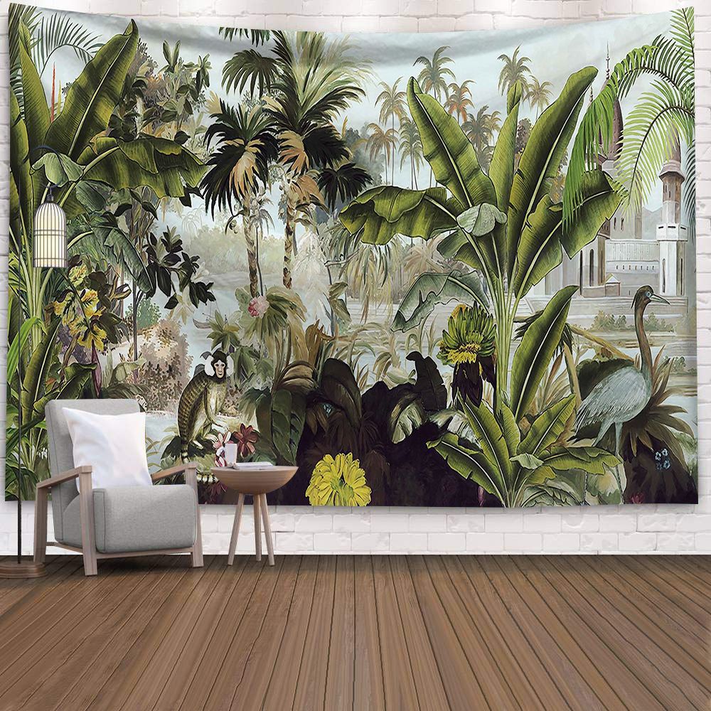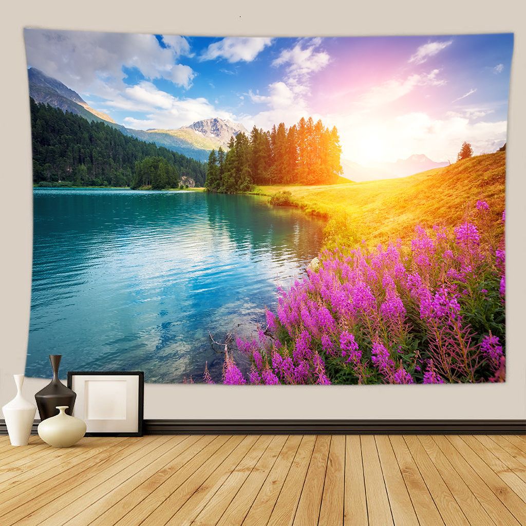 Green Forest Tree Wall Hanging Tapestries Mandala Natural Stream Flower Bedroom Wall Decor Camping Blanket Dropshipping