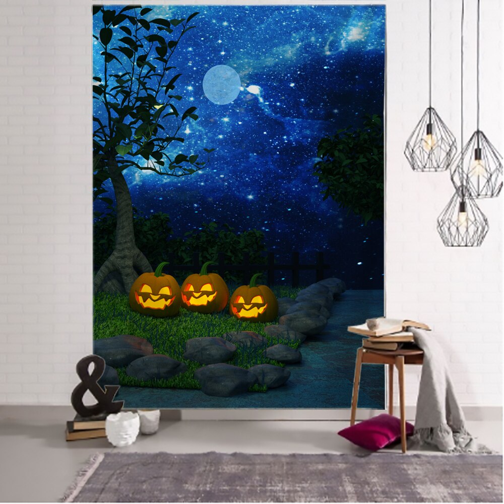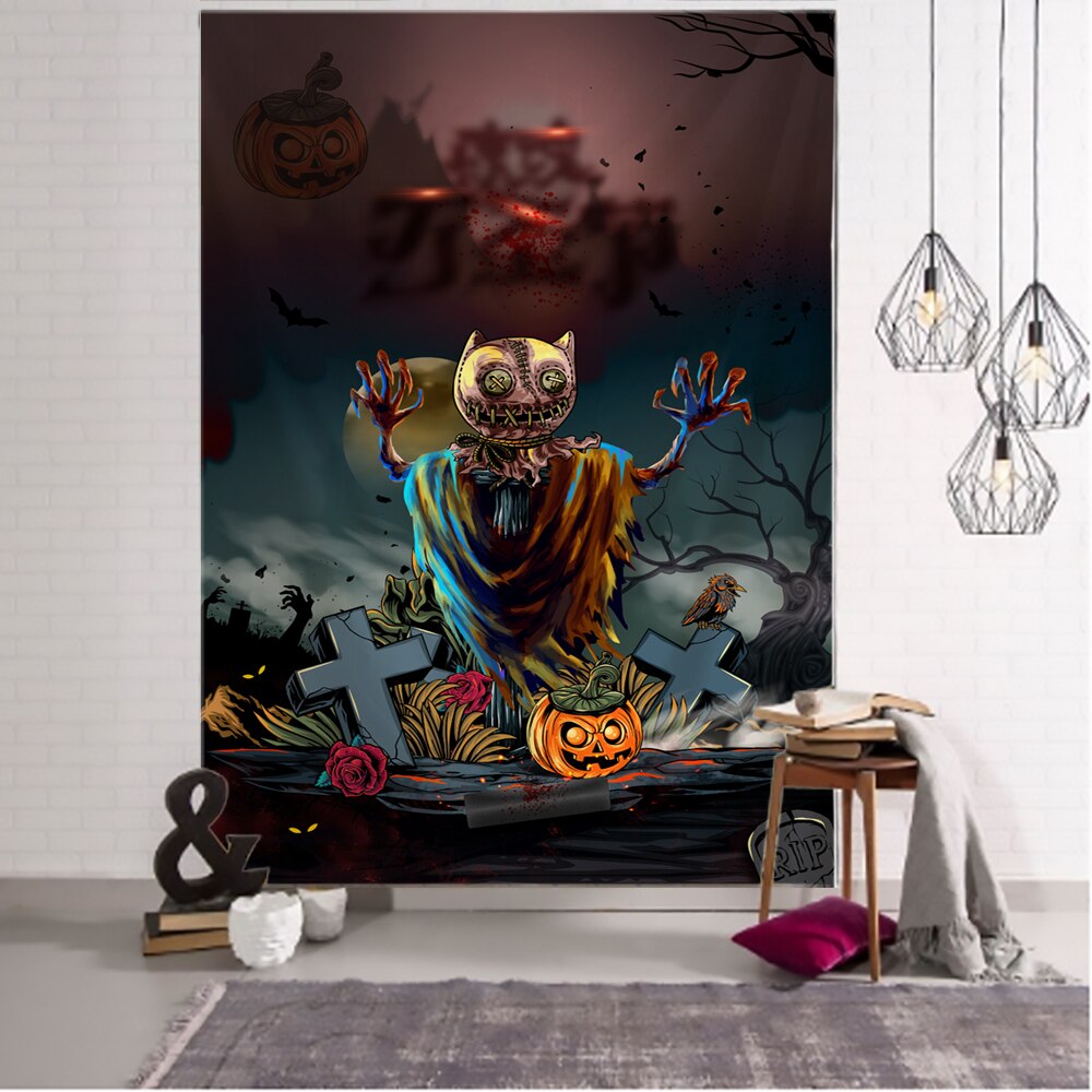 Halloween Ghost Doll Doll Party Tapestry Wall Hanging Witch Flaming Pumpkin Pattern Tapiz Witchcraft Tapestry Party Decor