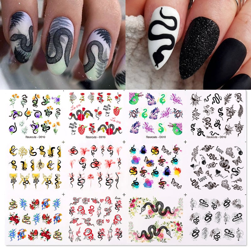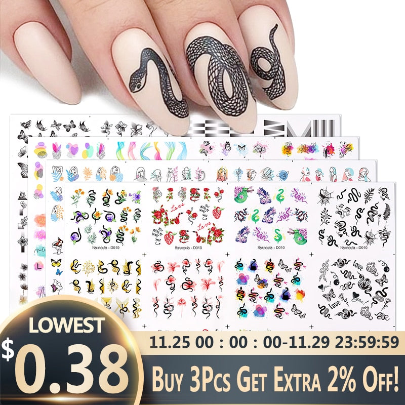 Harunouta 12pcs Black Snake Nail Stickers Wave Line Transfer Sliders Decoration Abstract Image Nail Art Designs Water Decals