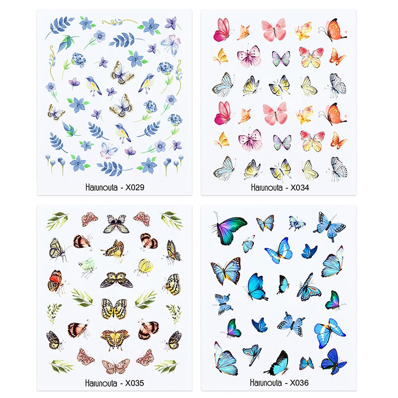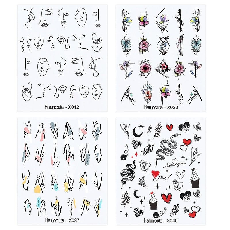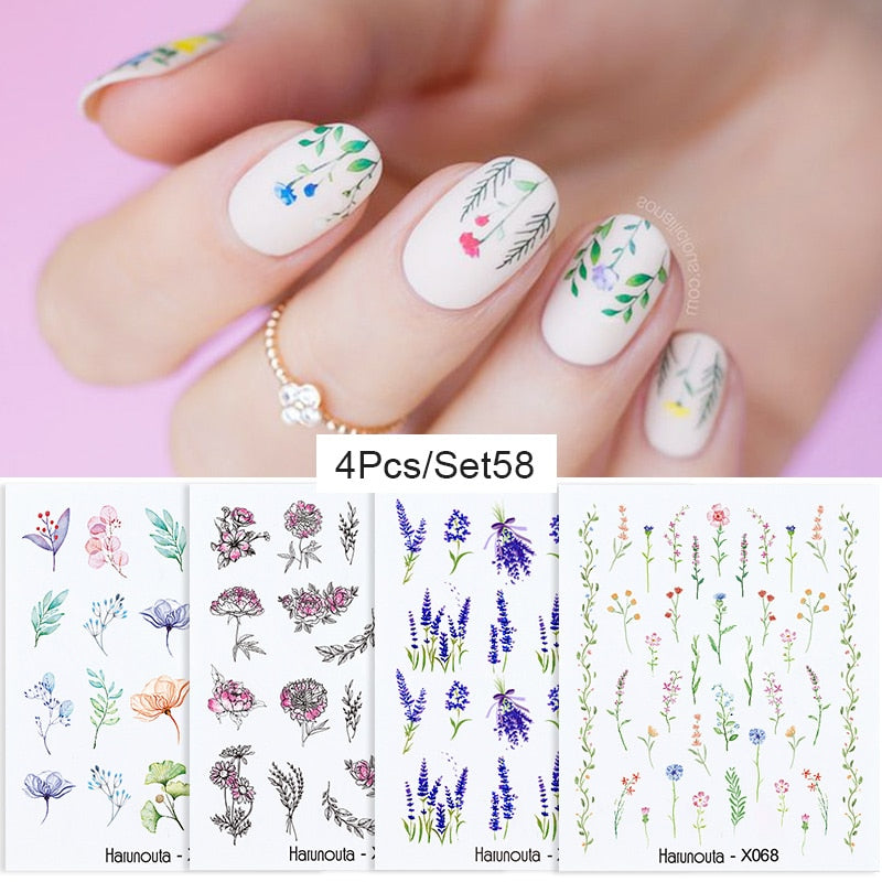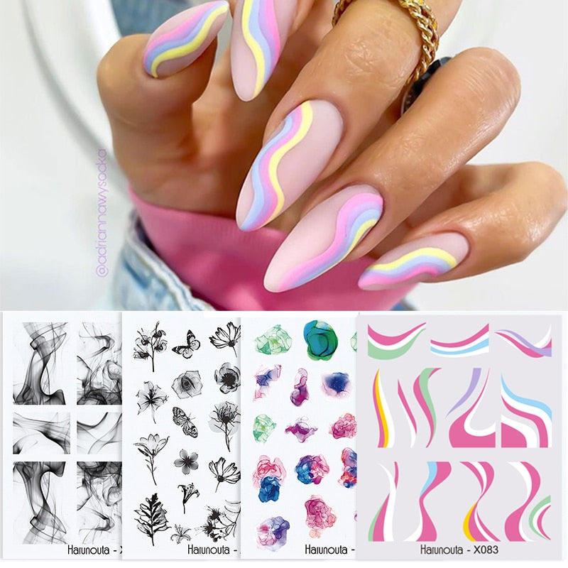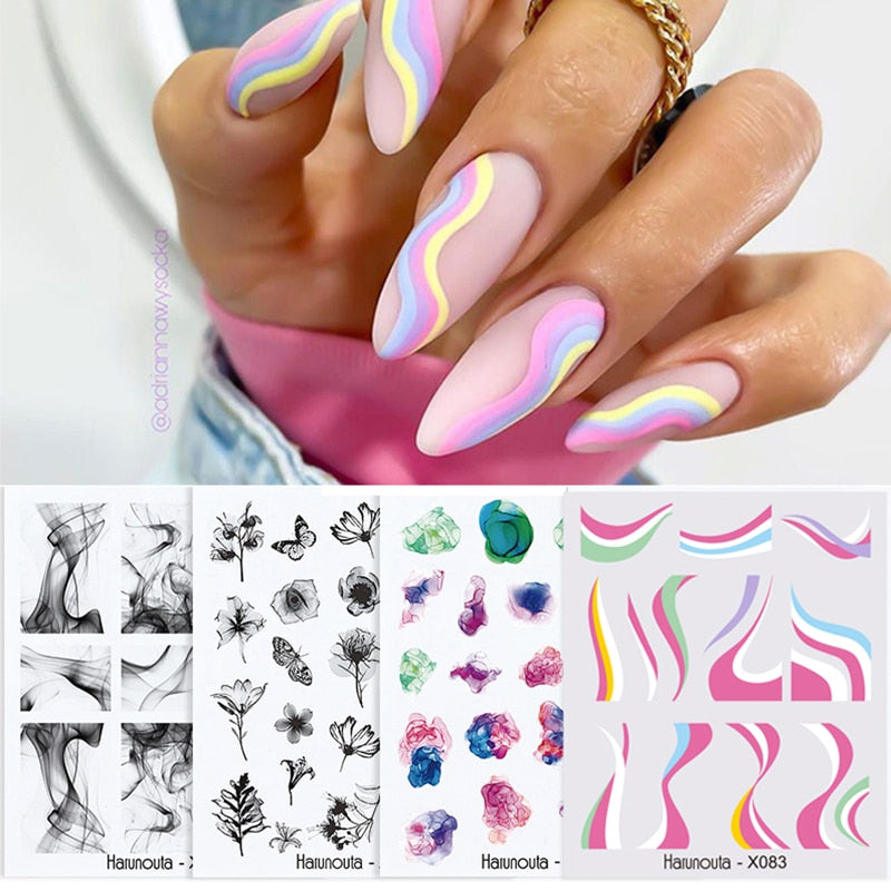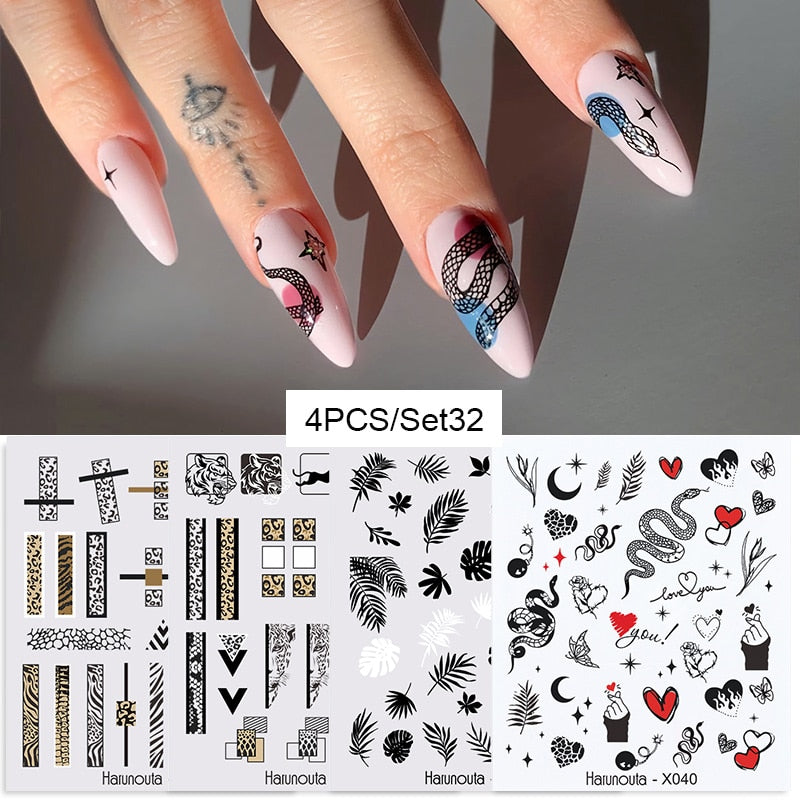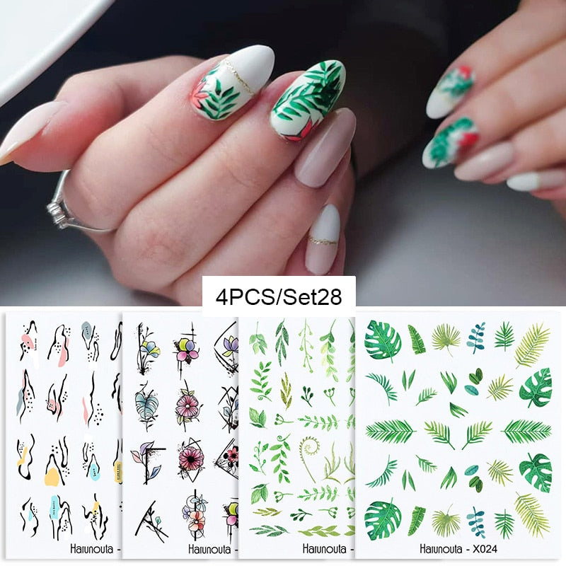 Harunouta 4Pcs Colorful Wave Leaf Flowers Water Decals Stickers Fruit Snake Designs Manicure Nail Art Decorations For Summer