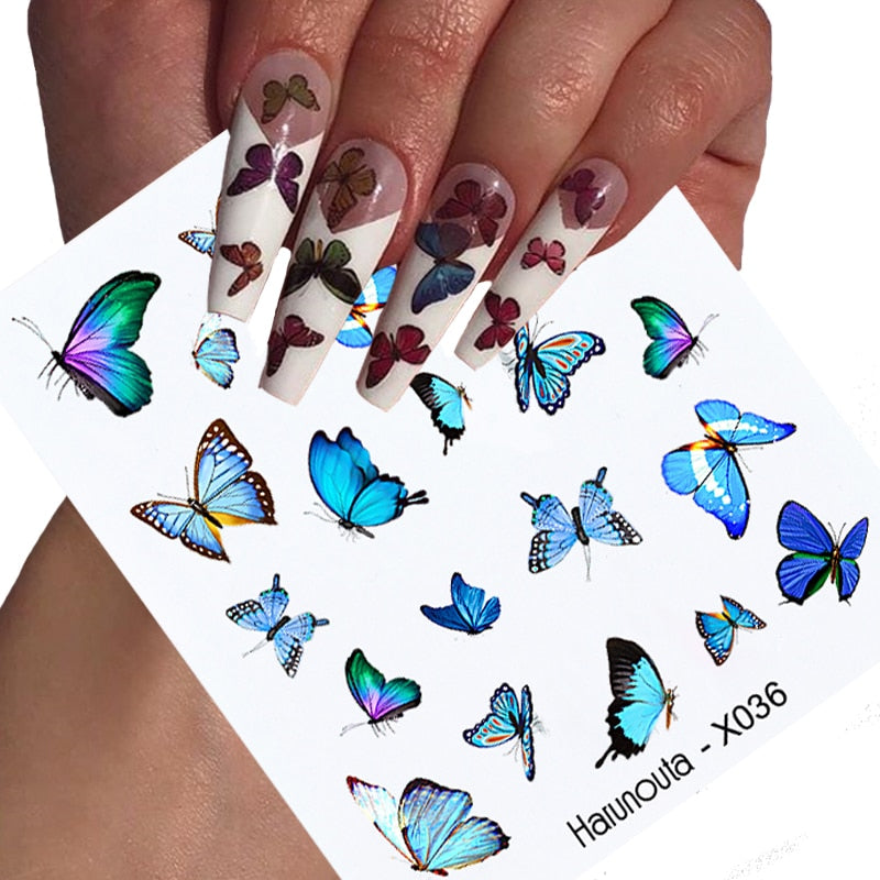 Harunouta Butterfly Spring Nail Decal And Sticker Flower Leaf Tree Green Summer DIY Sliders For Manicuring Nail Art Watermark
