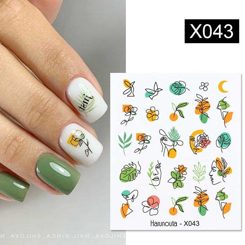 Harunouta Egg Shell French Lines Water Decals Sticker Geometric Flowers Leaves Bubble Design DIY Slider For Manicuring Nail Art