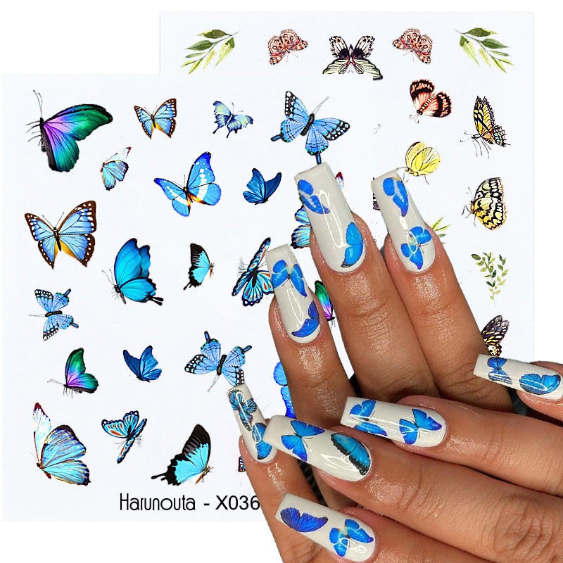 Harunouta Summer Butterfly Water Decals Flower Alphabet Leaves DIY Nail Art Stickers Wraps Slider Decorations Manicures 2021