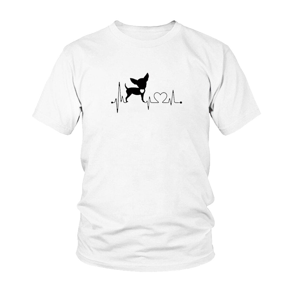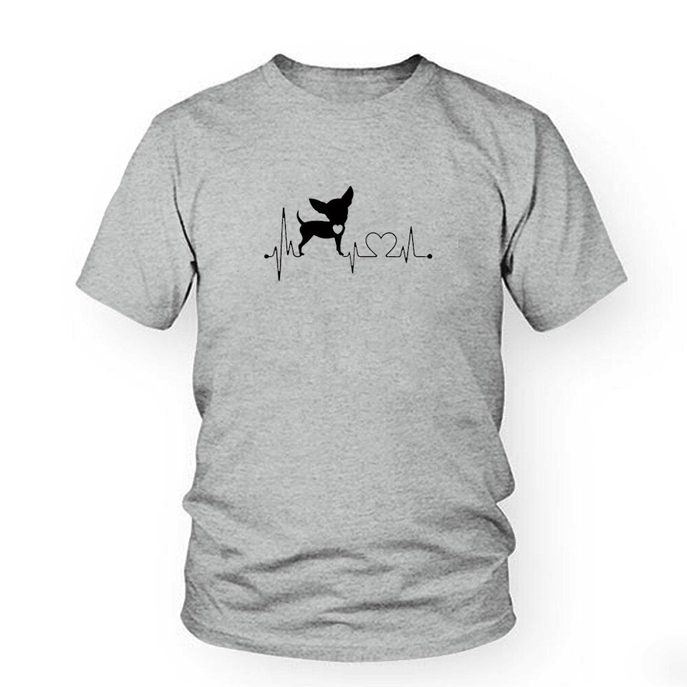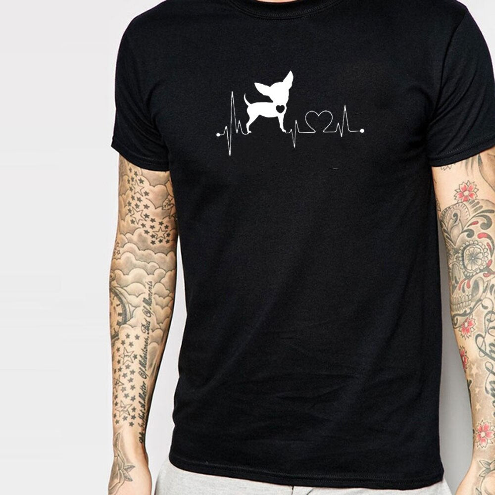 Heartbeat Chihuahua Dog Lovers cotton T Shirt Heartbeat Paw Dogs Tshirt for men Short Sleeve Cotton Top Tees Harajuku