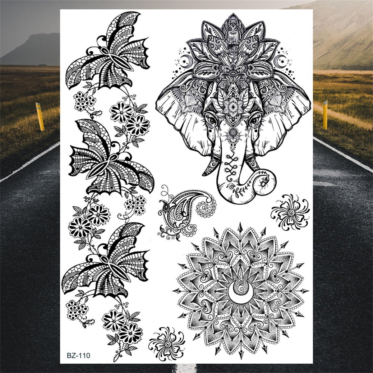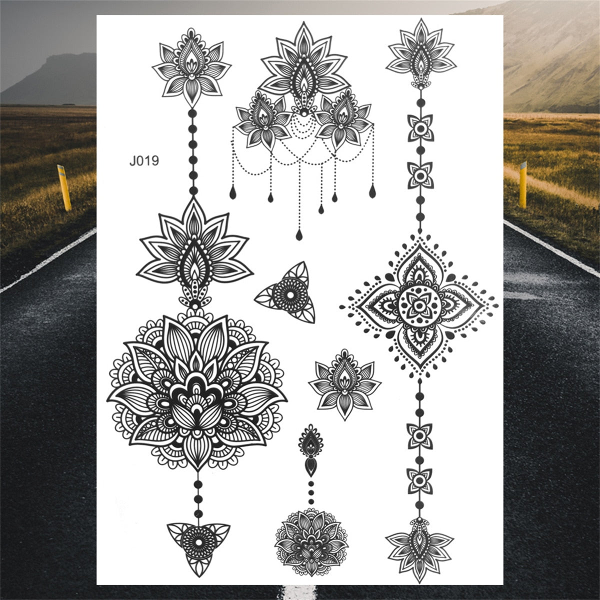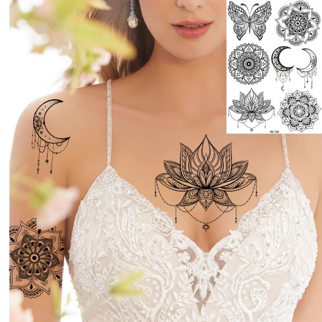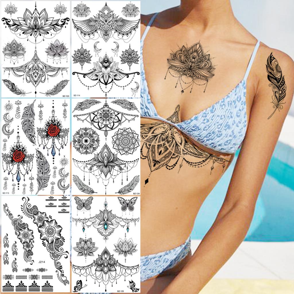 Henna Pendant Temporary Tattoos For Women Undertboob Girls Realistic Butterfly Rose Flower Fake Tattoo Sticker Chest Tatoos