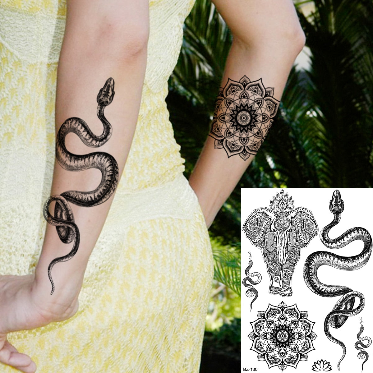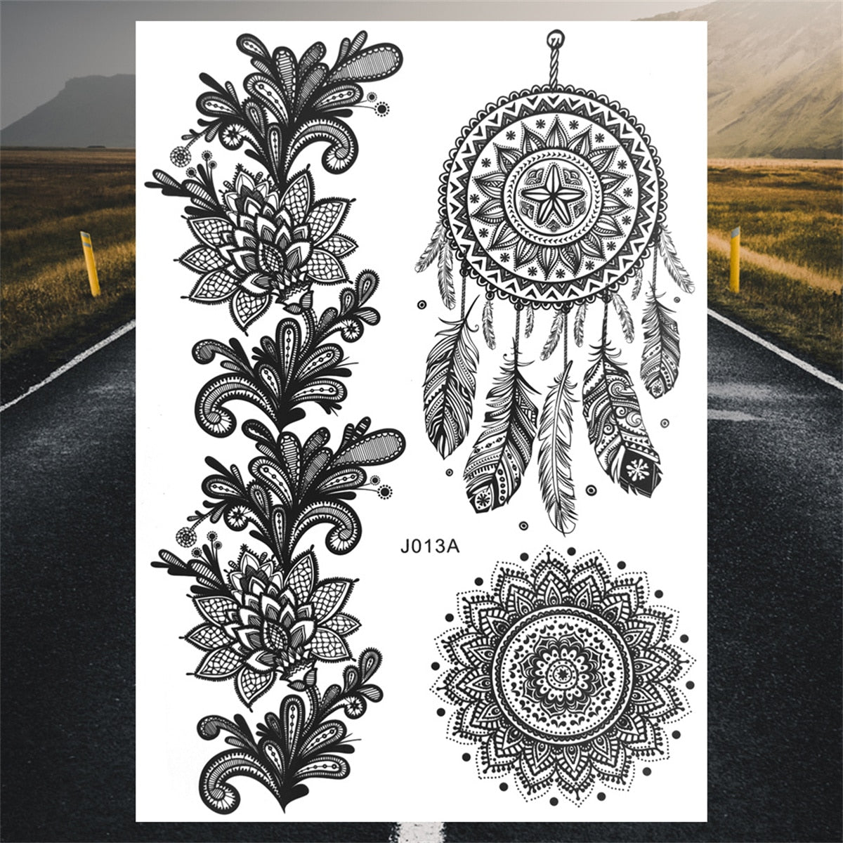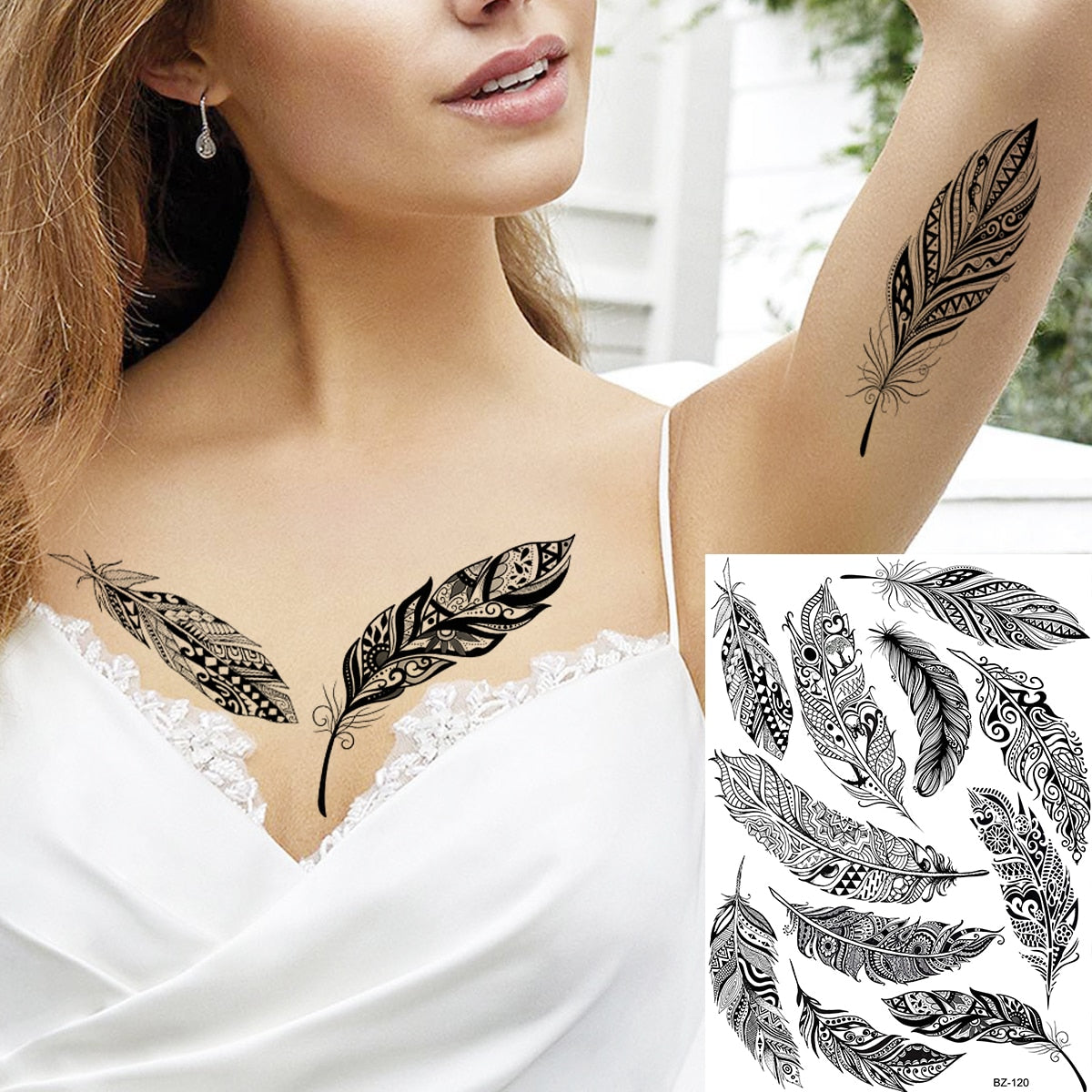 Henna Pendant Temporary Tattoos For Women Undertboob Girls Realistic Butterfly Rose Flower Fake Tattoo Sticker Chest Tatoos