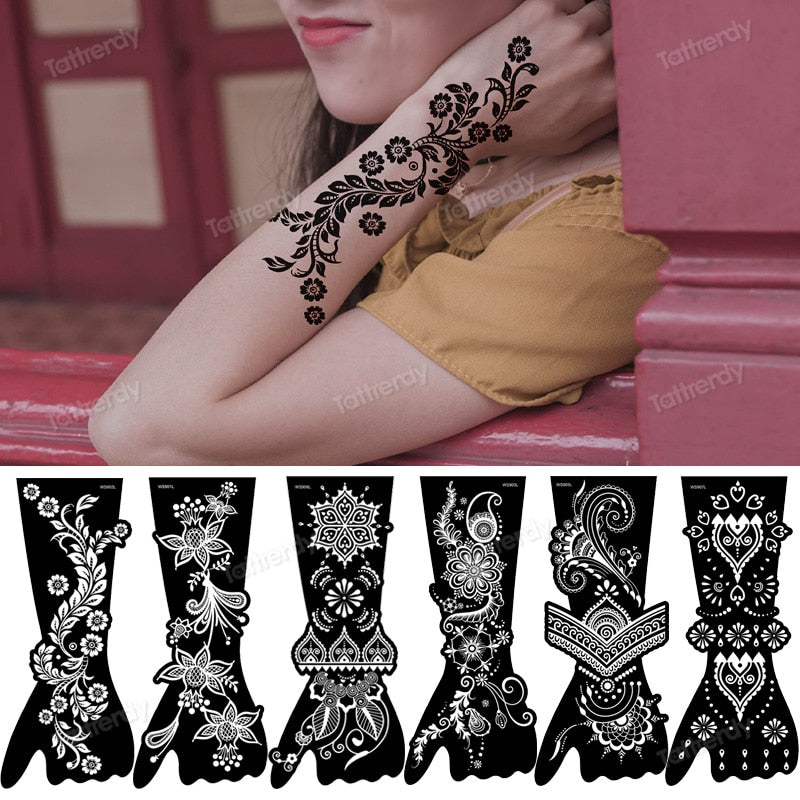 Henna Tattoo stencils for painting arm hand sleeve stencil templates airbrush indian arabic mandala tattoo reuseable paper sheet