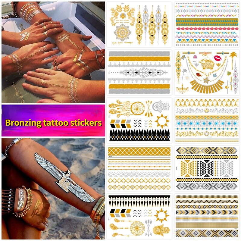 Hot bronzing tattoo stickers waterproof sweat not easy to smudge bronzing temporary tattoo stickers fashion tattoo stickers