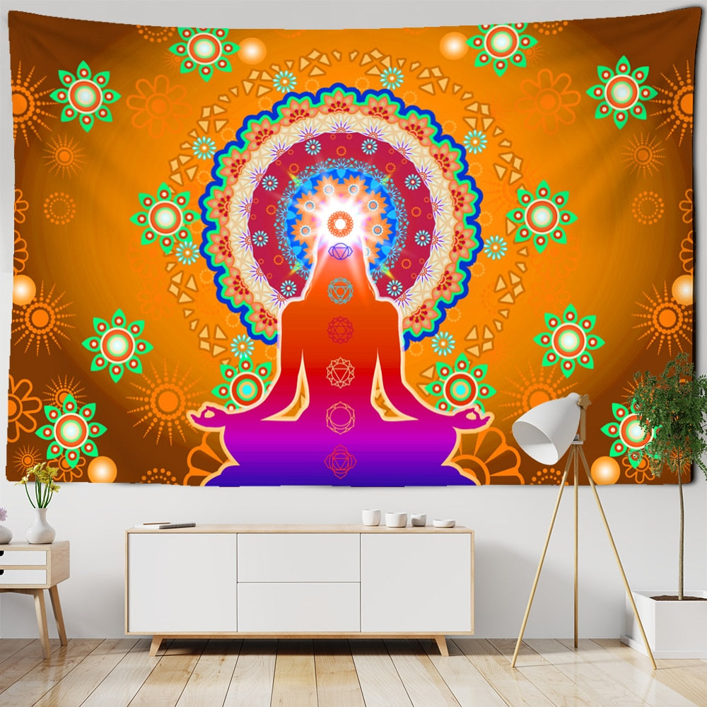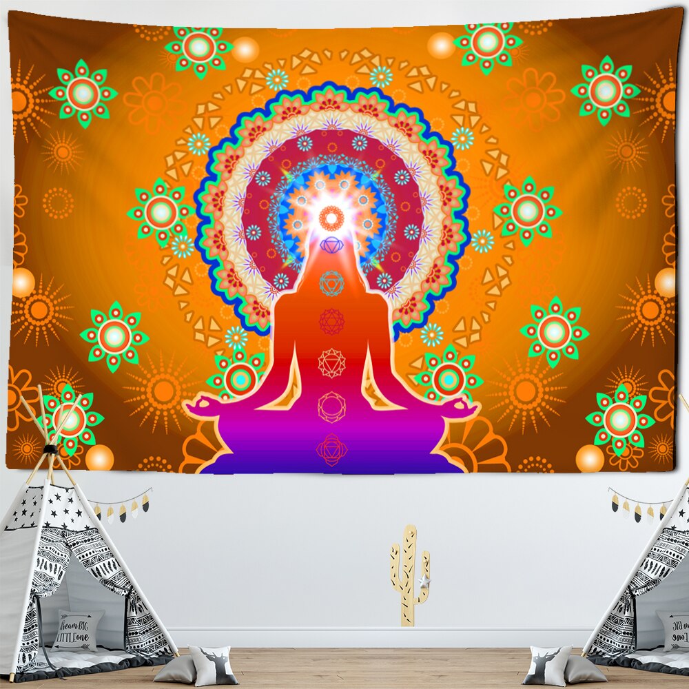 Indian Buddha Statue Meditation 7 Chakra Tapestry Mandala Wall Hanging Psychedelic Tapiz Witchcraft Wall Cloth Tapestries
