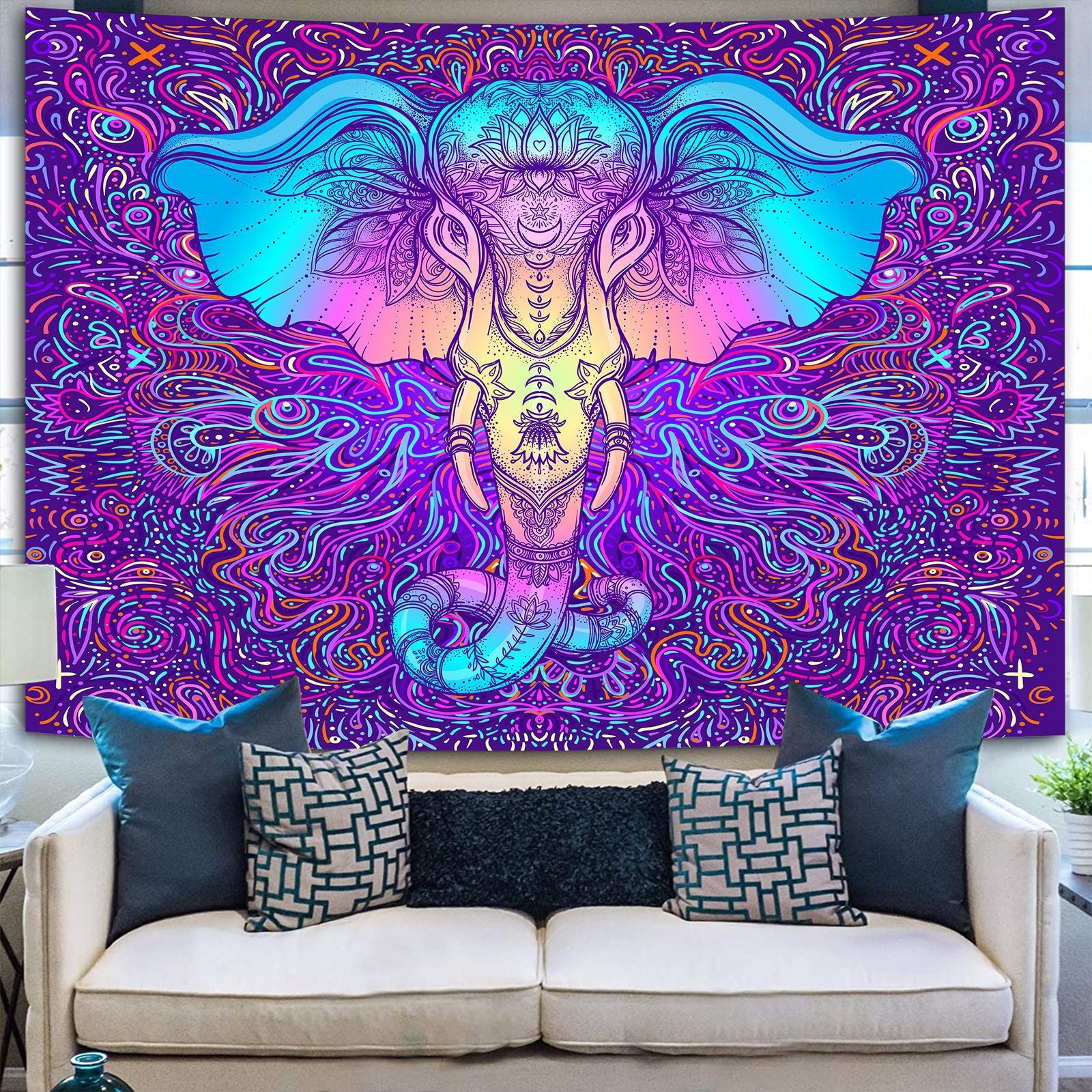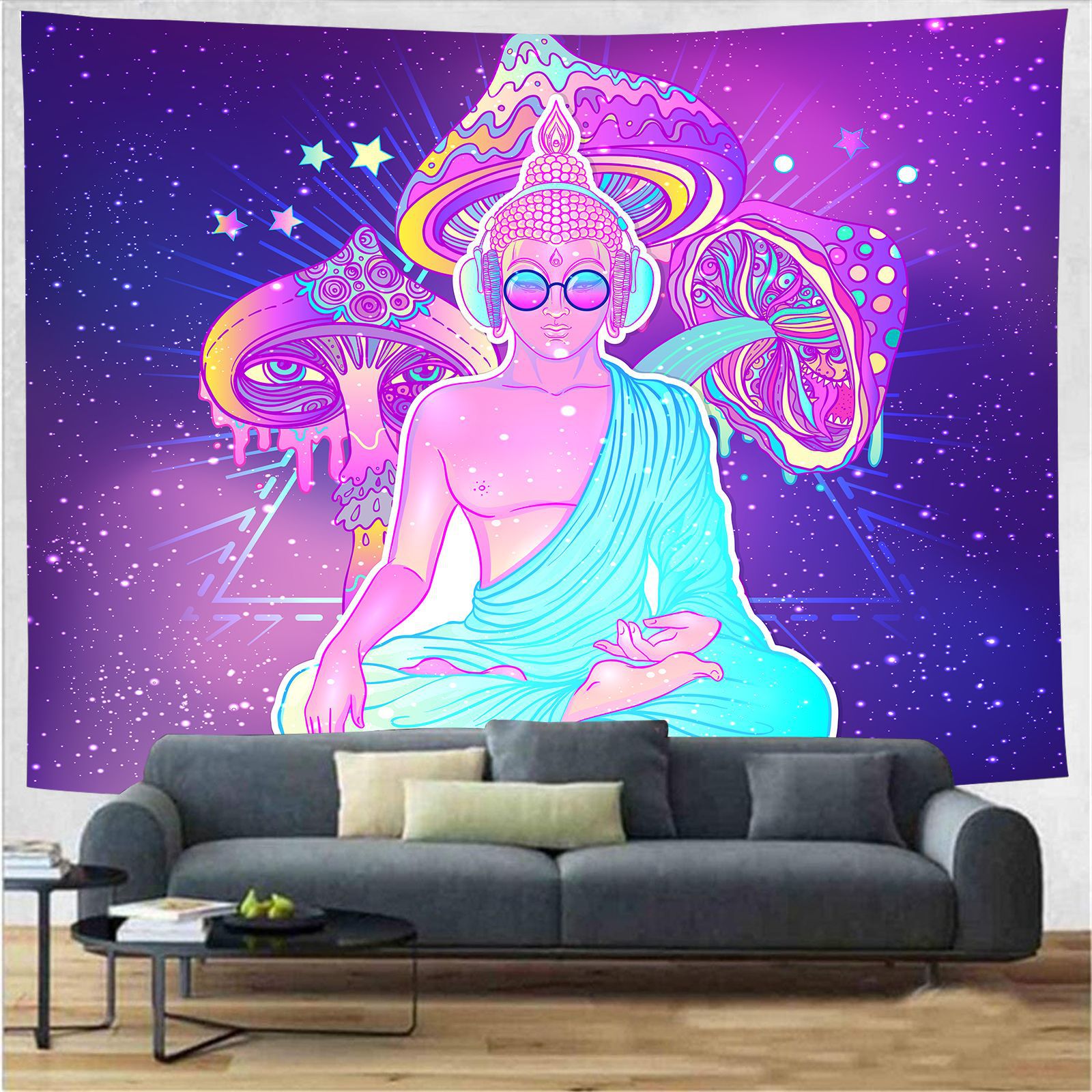 Indian Rainbow Psychedelic Buddha Tapestry Bohemia Abstract Mushroom Wall Hanging Tapestries Hippie Tarot Elephant Blanket Decor