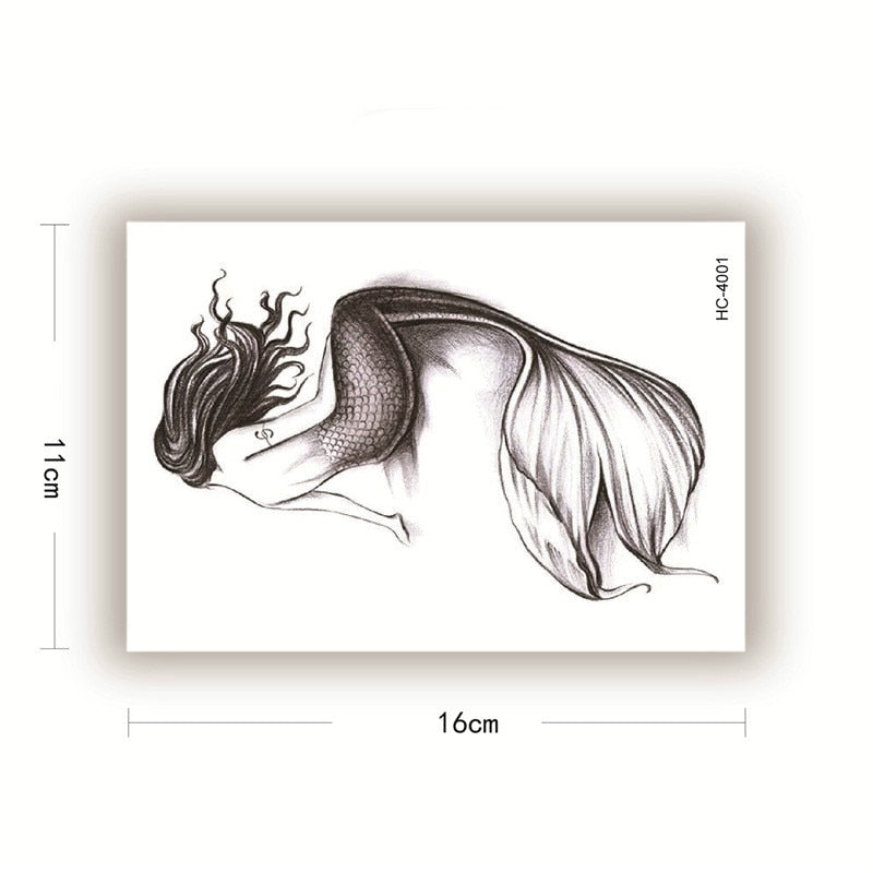 Inns Hot Black Merman Mermaid Temporary Tattoo Stickers For Arm Body Women Fake Tatoos Decals Tatto