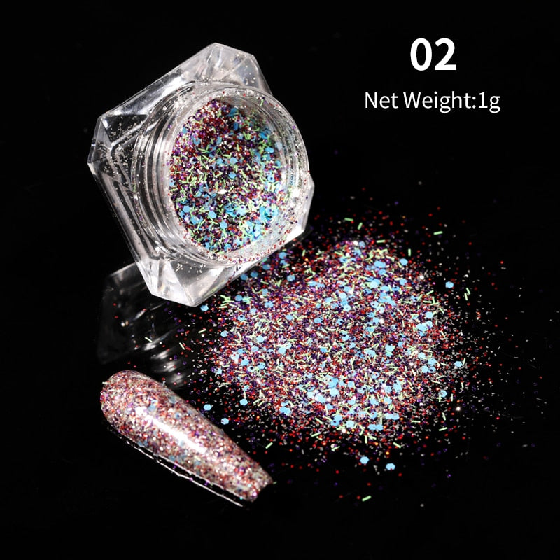 iridescent Powder On Nails iridescent Silver Red Glitter Chrome Sparking Shining Sequins Gel Polish Flakes Manicures Decoration