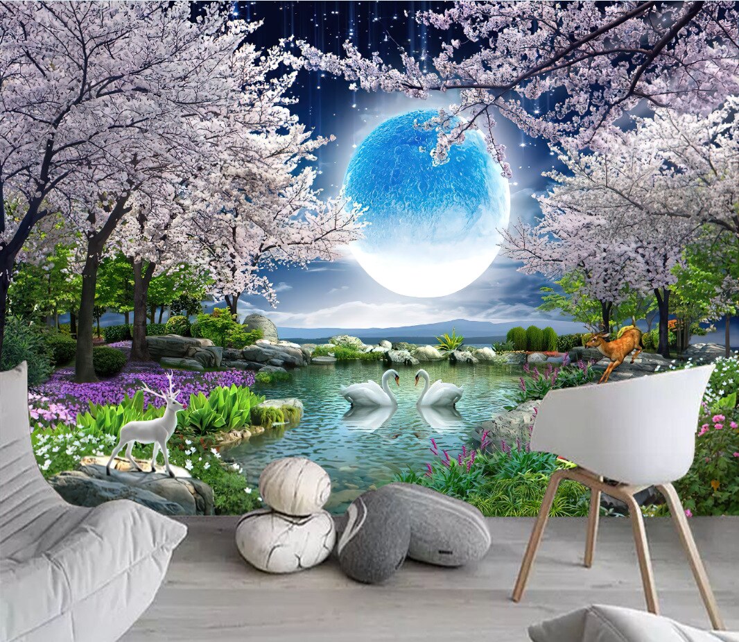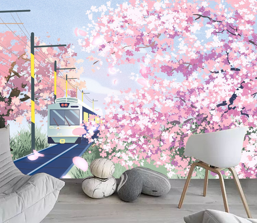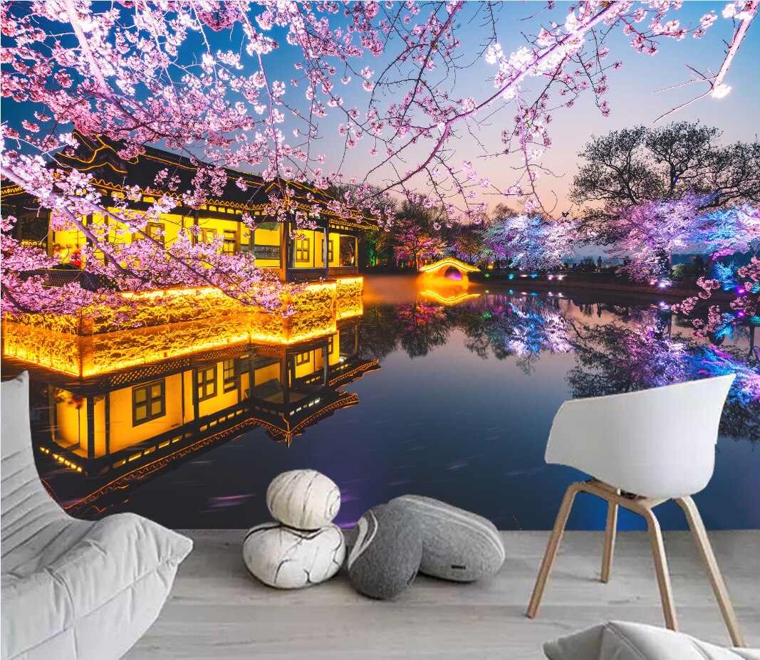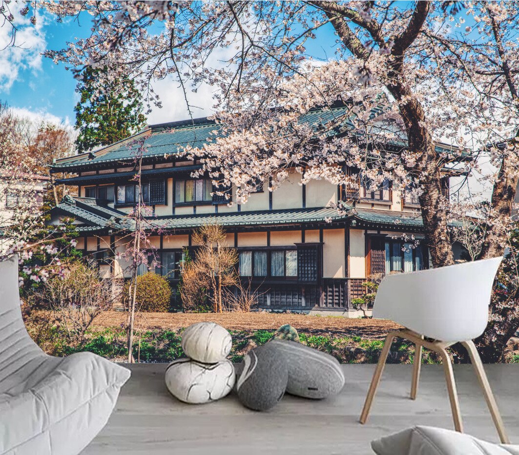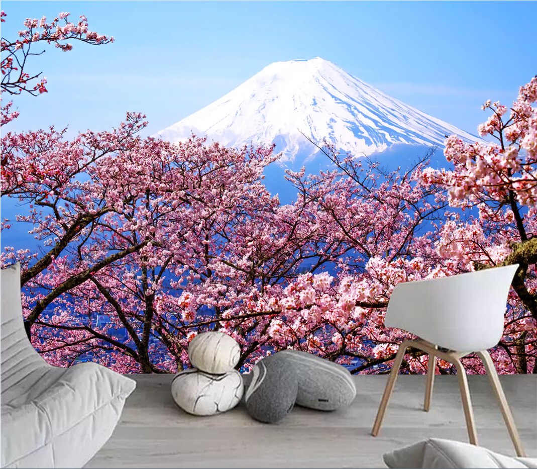 Japanese Cherry Blossoms Mount Fuji Landscape Wall Hanging Tapestry Ancient Palace With Moon Nature Scendry Home Wall Blanket