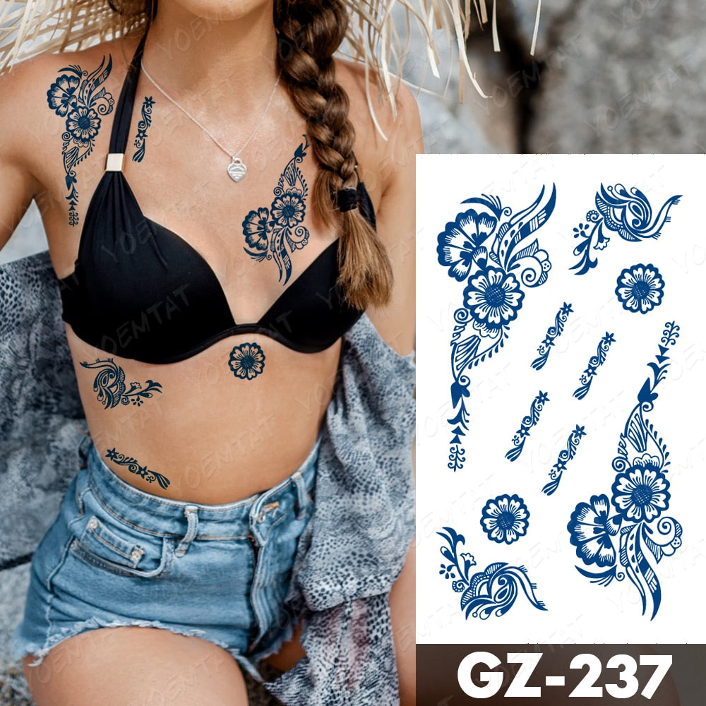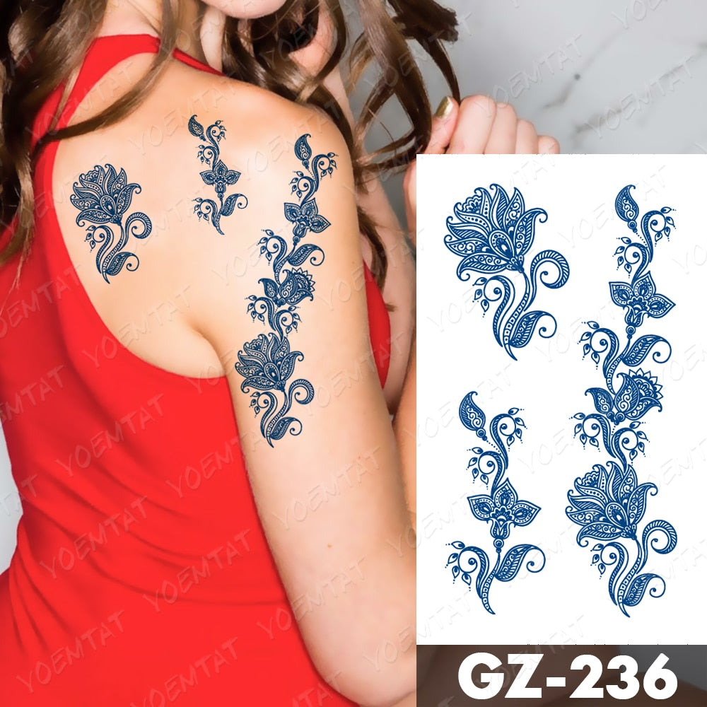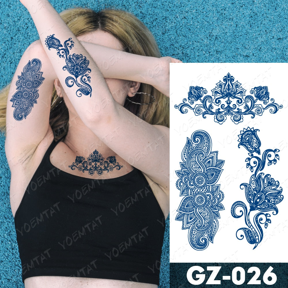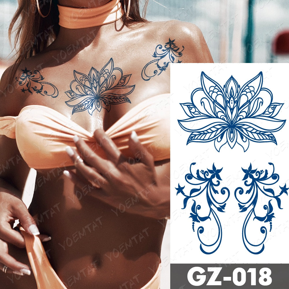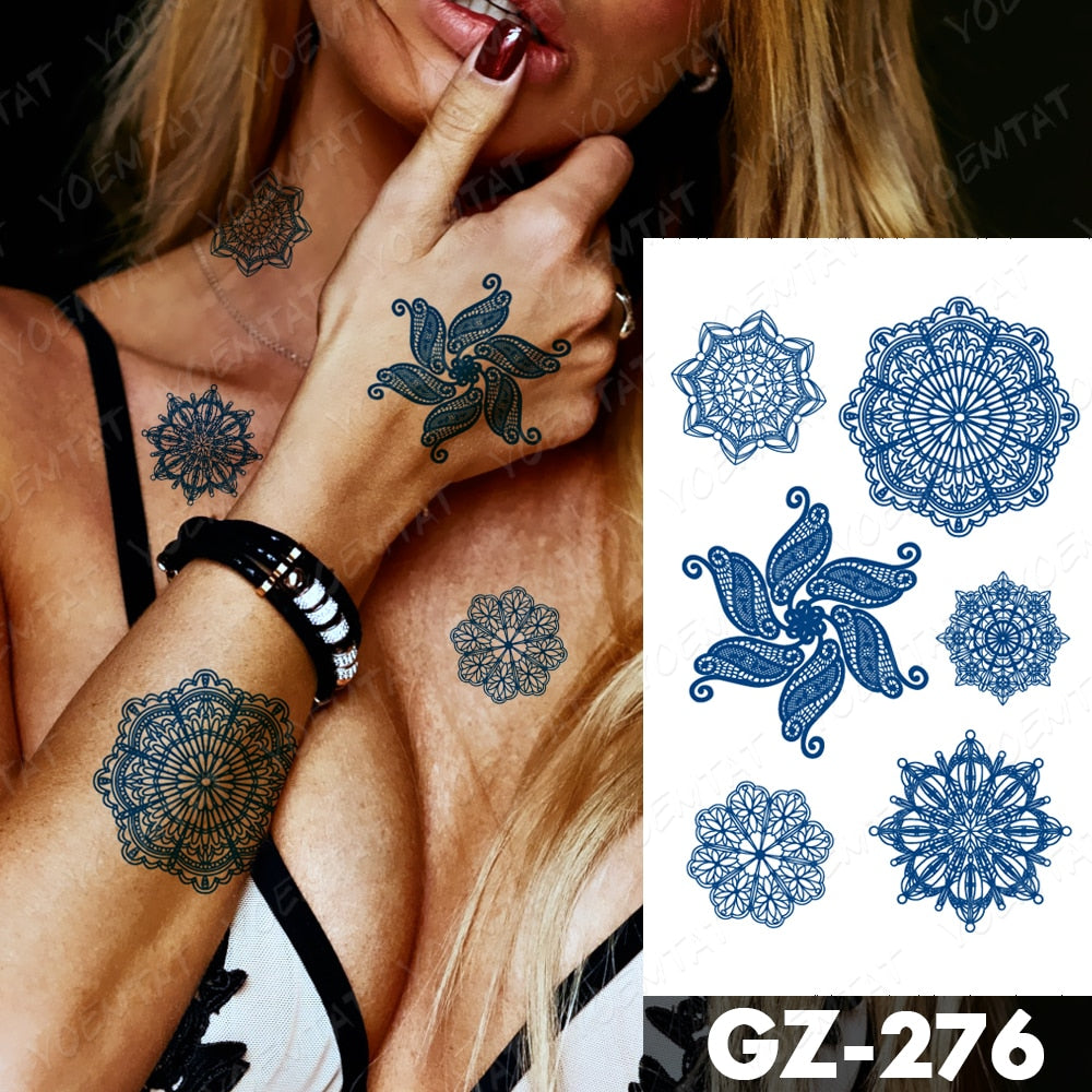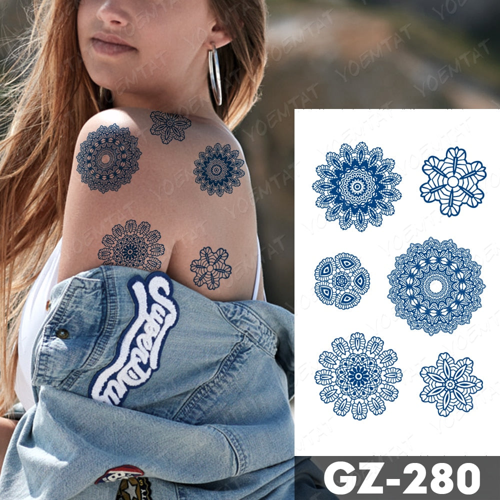 Juice Lasting Waterproof Temporary Tattoo Stickers Lotus Totem Flower Mandala Flash Tattoos Ink Fatima Hand Body Art Fake Tatto