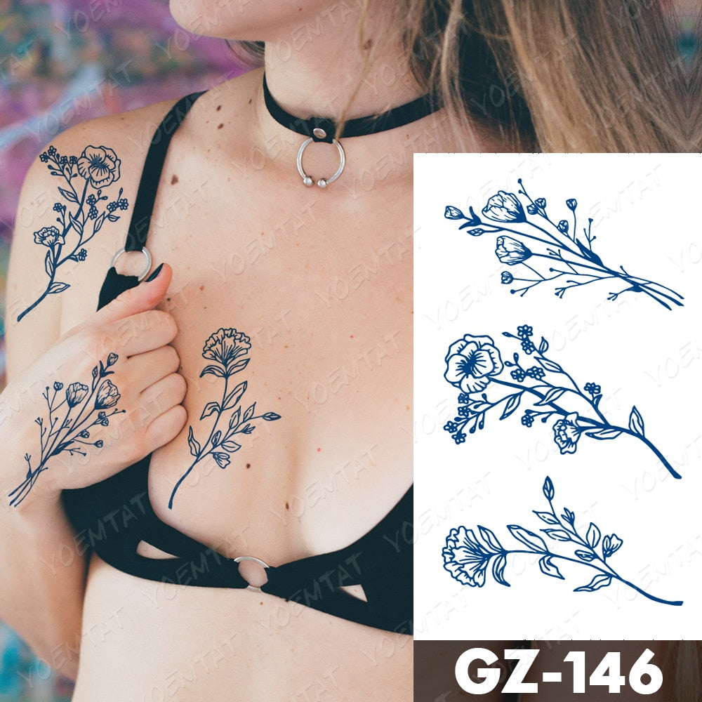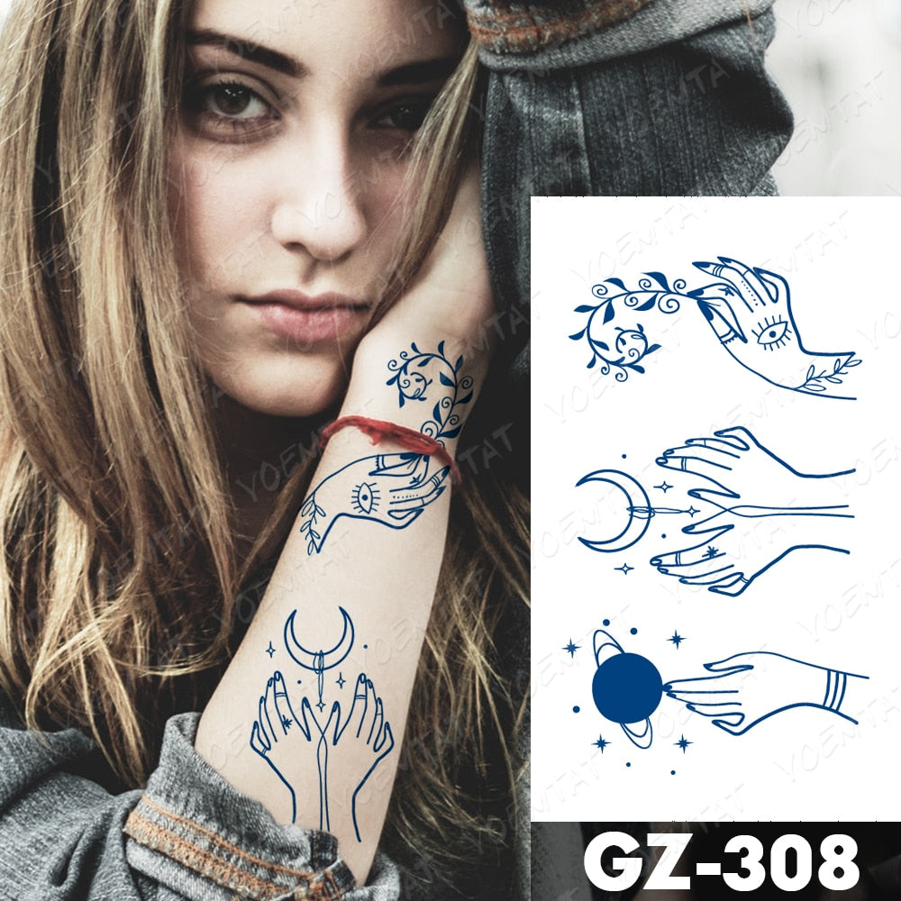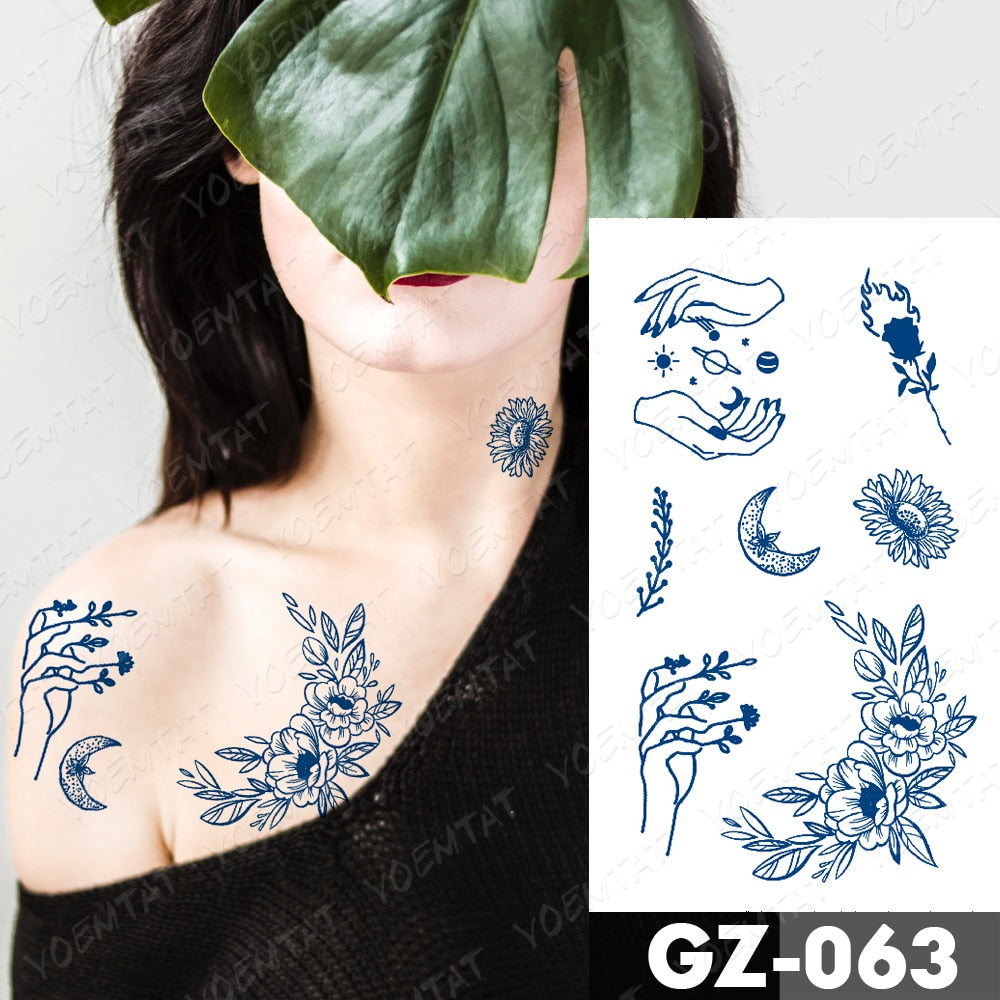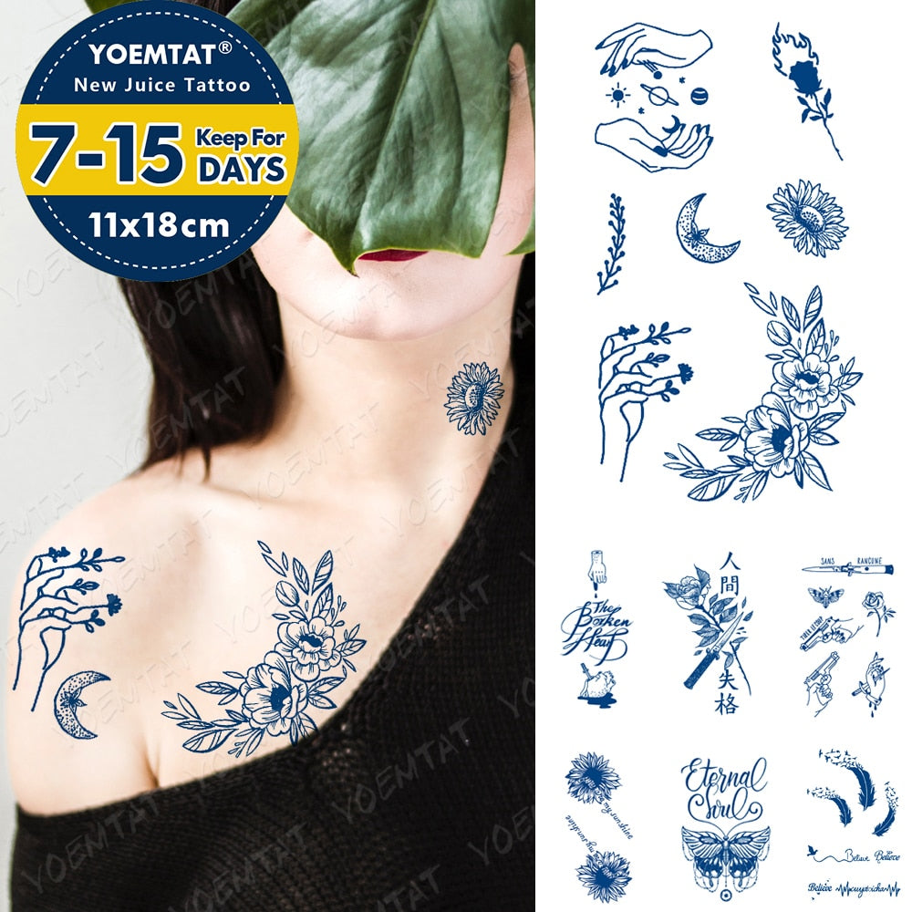 Juice Lasting Waterproof Temporary Tattoo Stickers Starry Sky Moon Flower Rose Flash Tattoos Woman Arm Ink Body Art Fake Tatto