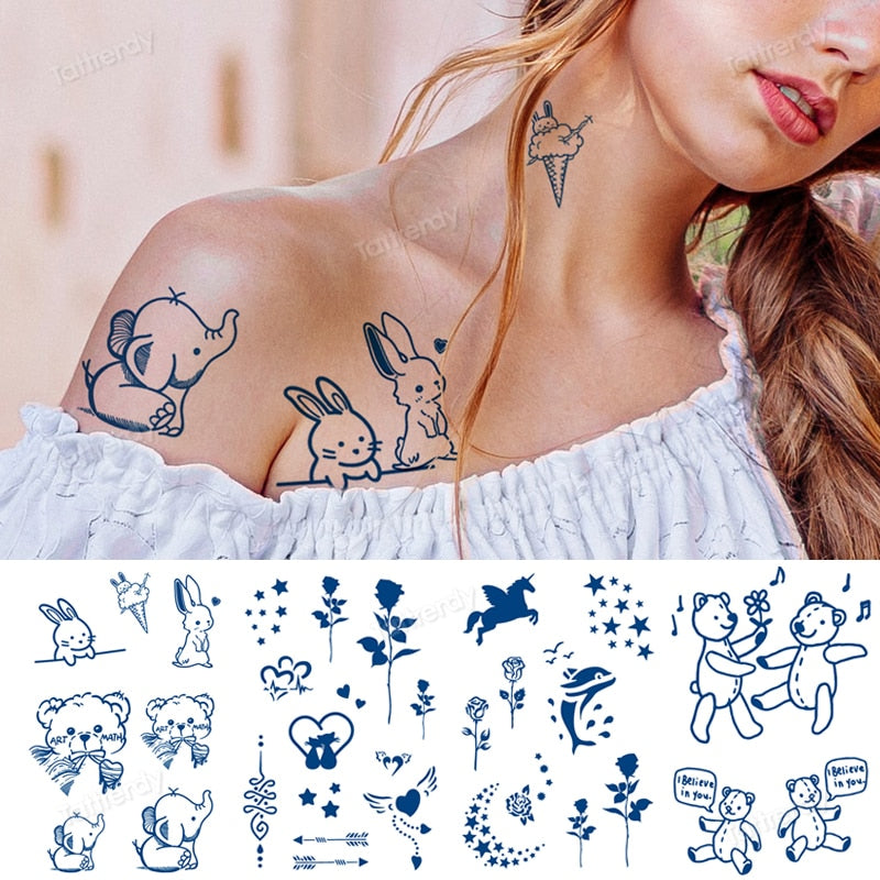 juice tattoo natural fruit ink body art painting Semi-permanent tattoo sticker lasting 7-15 days cartoon anime rabbit elephant