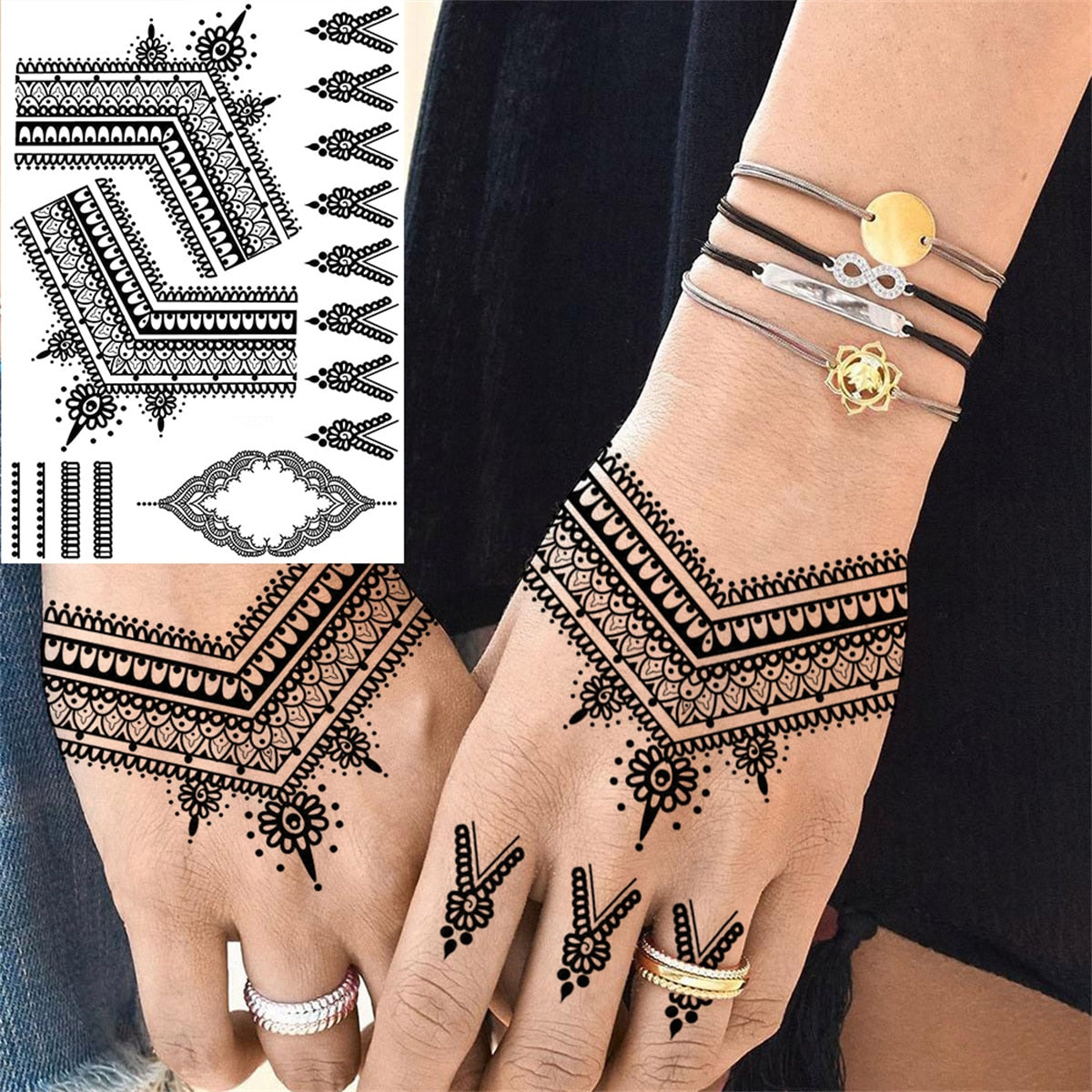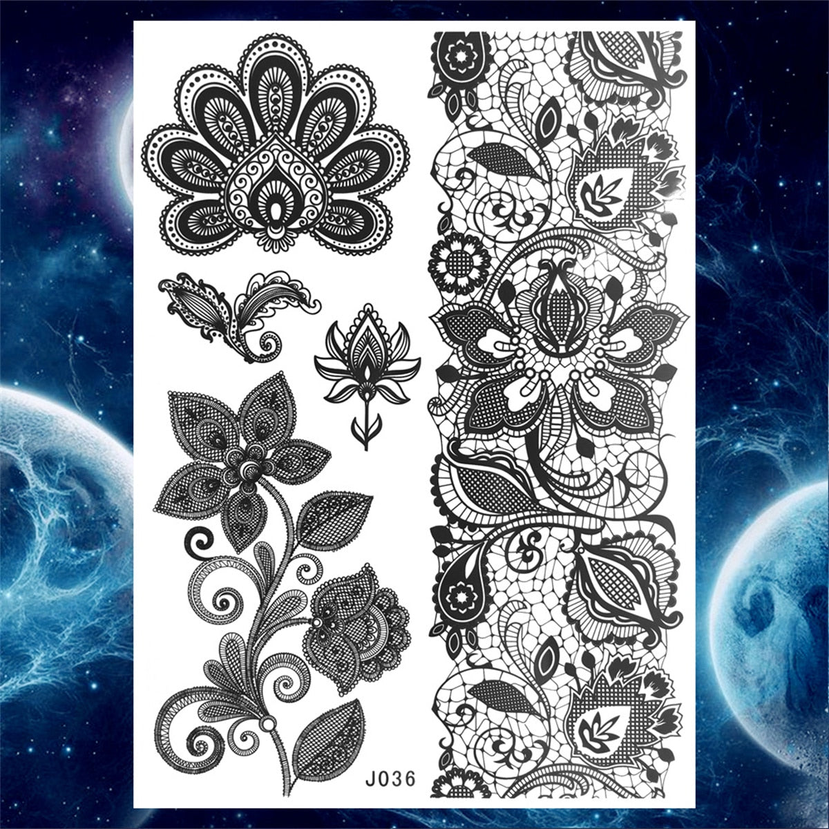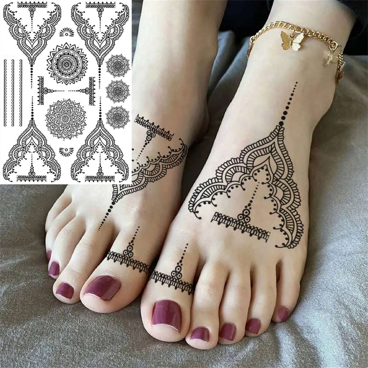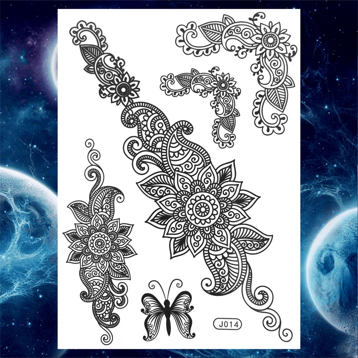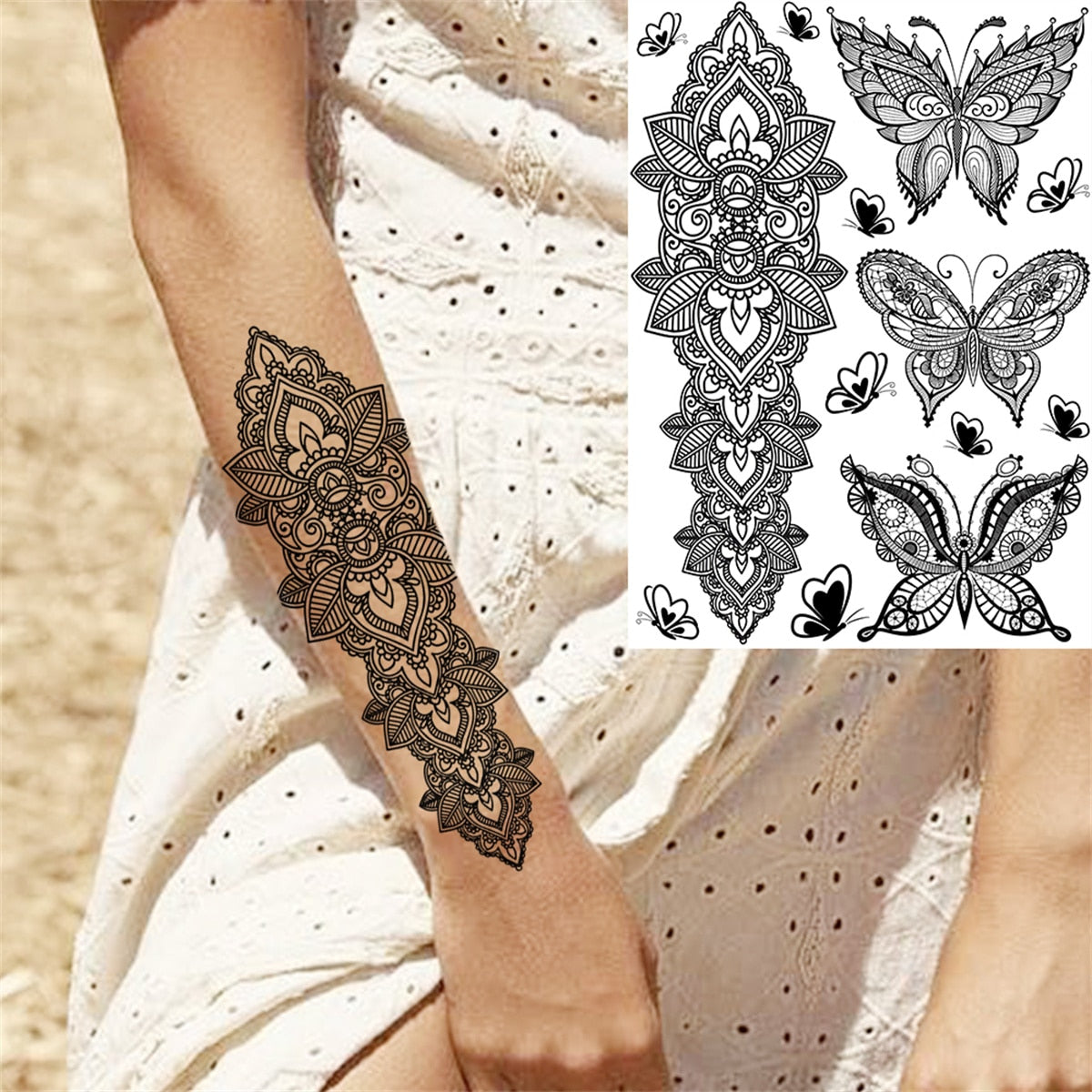 Lace Butterfly Temporary Tattoos For Women Girls Kids Tribal Black Henna Tattoo Sticker Mandala Flower Fake Jewelry Tatoos Adult