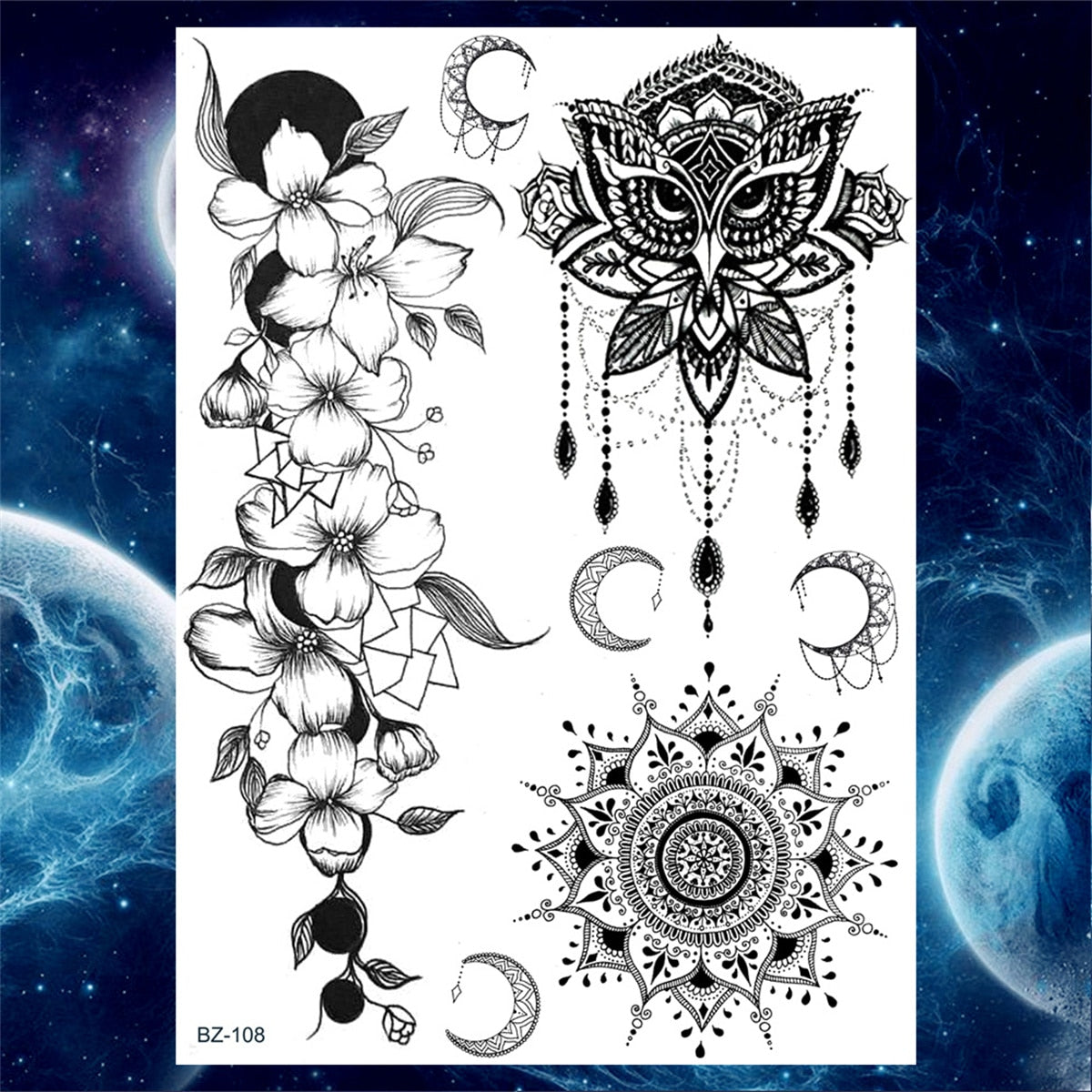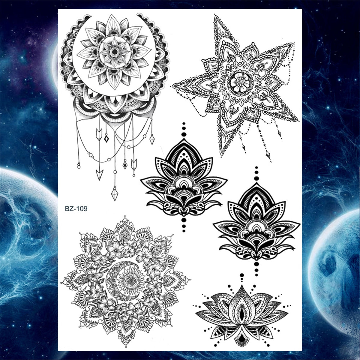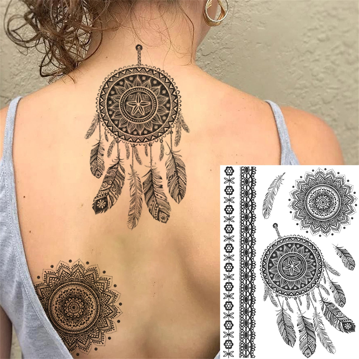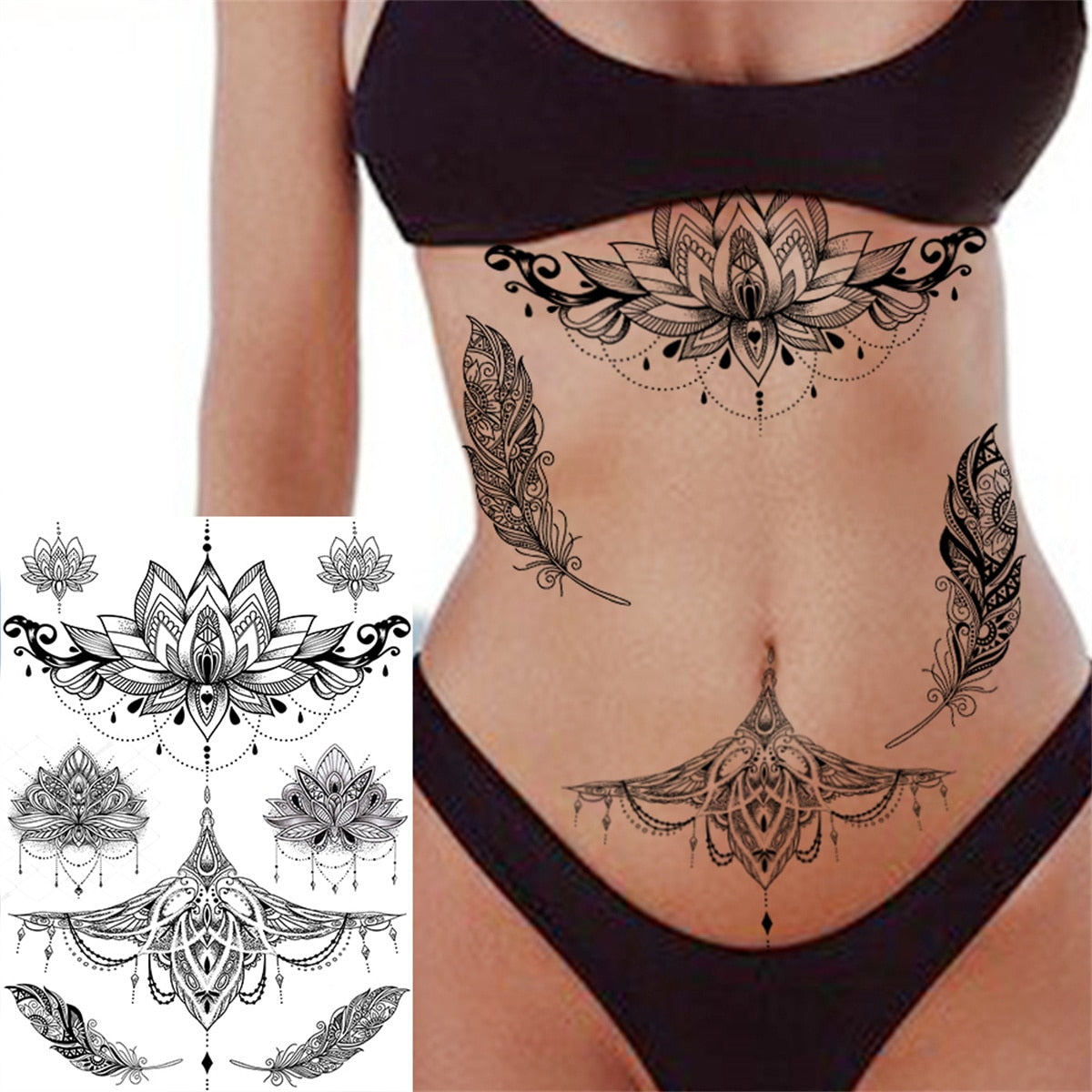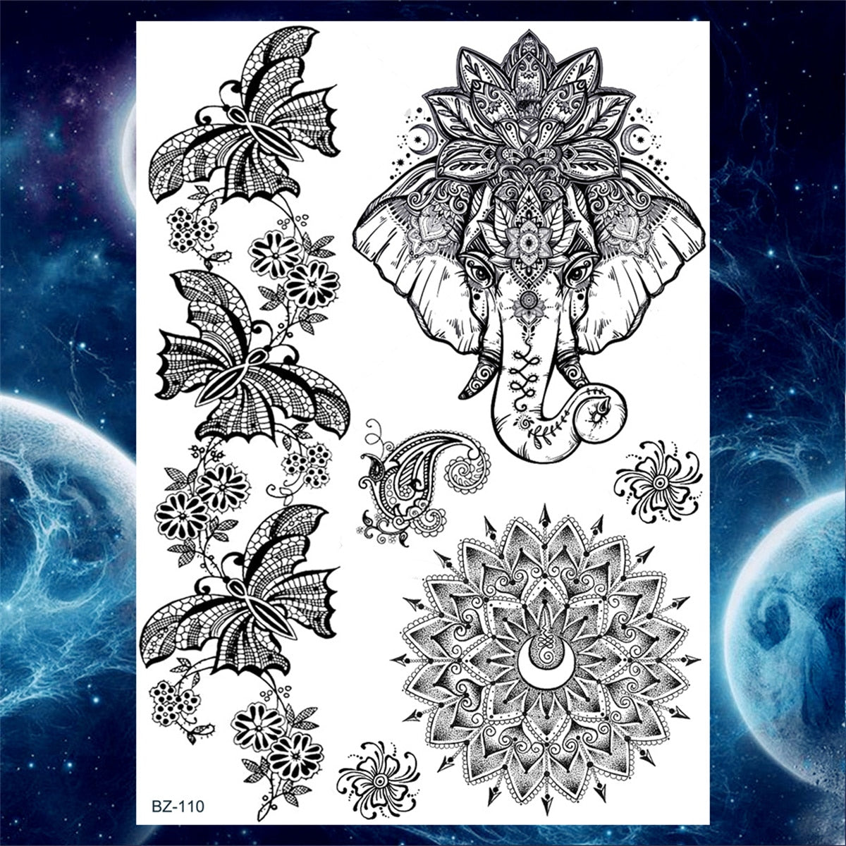 Lace Butterfly Temporary Tattoos For Women Girls Kids Tribal Black Henna Tattoo Sticker Mandala Flower Fake Jewelry Tatoos Adult