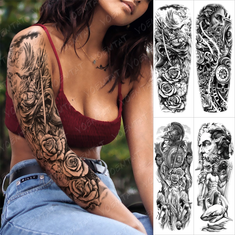 Large Arm Sleeve Tattoo Angel Statue Warrior Waterproof Temporary Tatto Sticker Rose Samurai Body Art Full Fake Tatoo Women Men