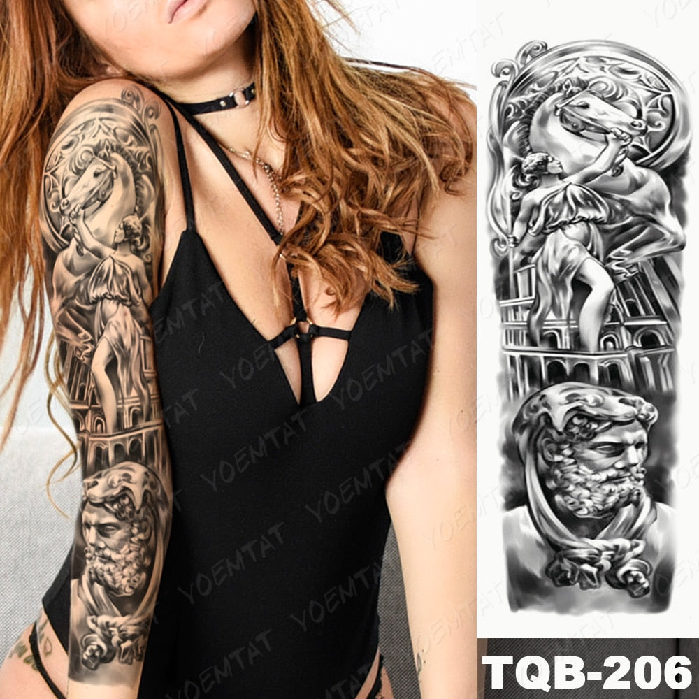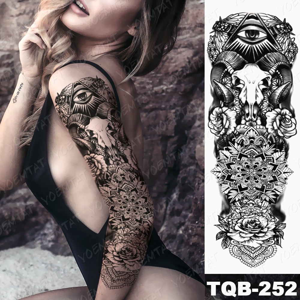 Large Arm Sleeve Tattoo Black Tribal Totem Warrior Waterproof Temporary Tatto Sticker Eye Rose Body Art Full Fake Tatoo Men