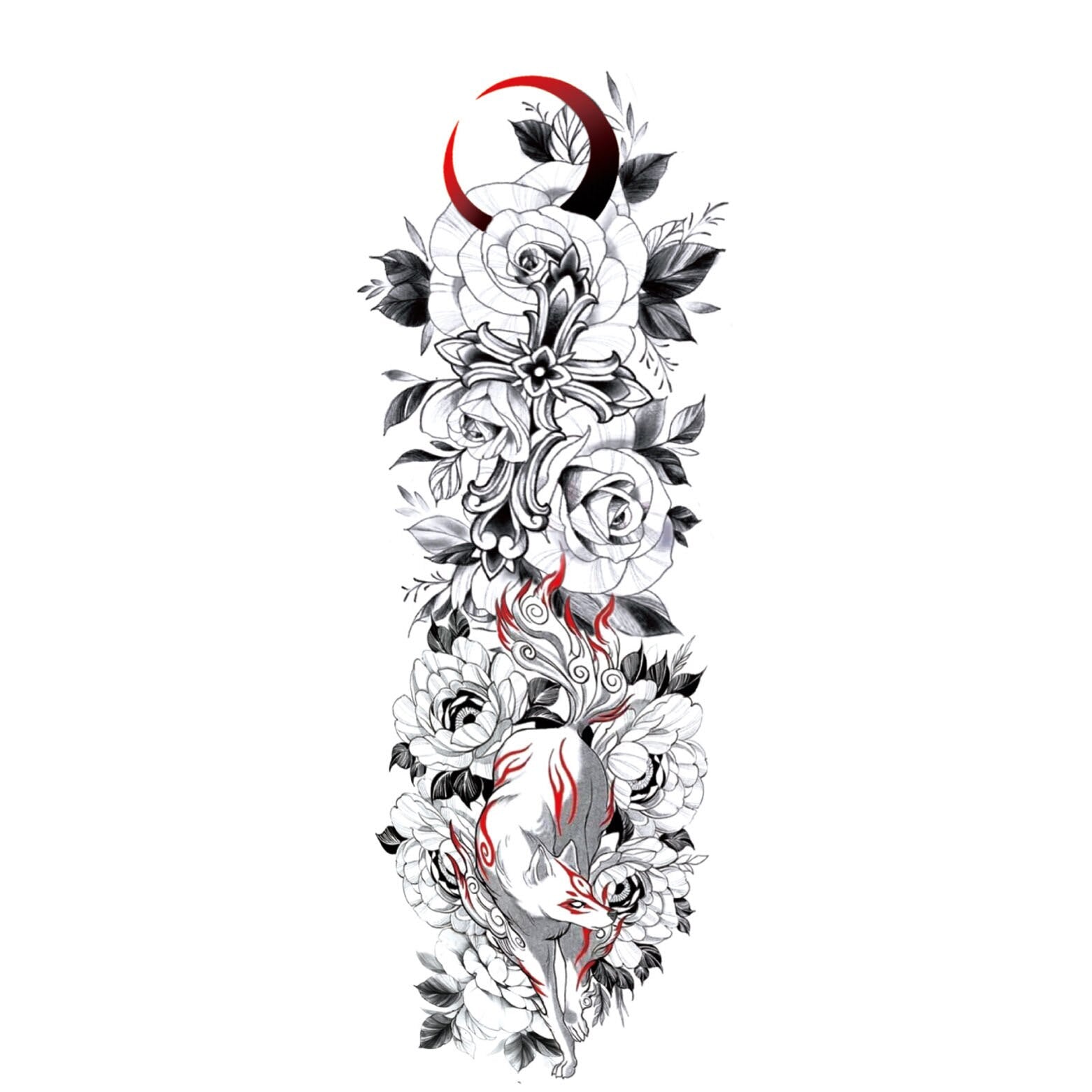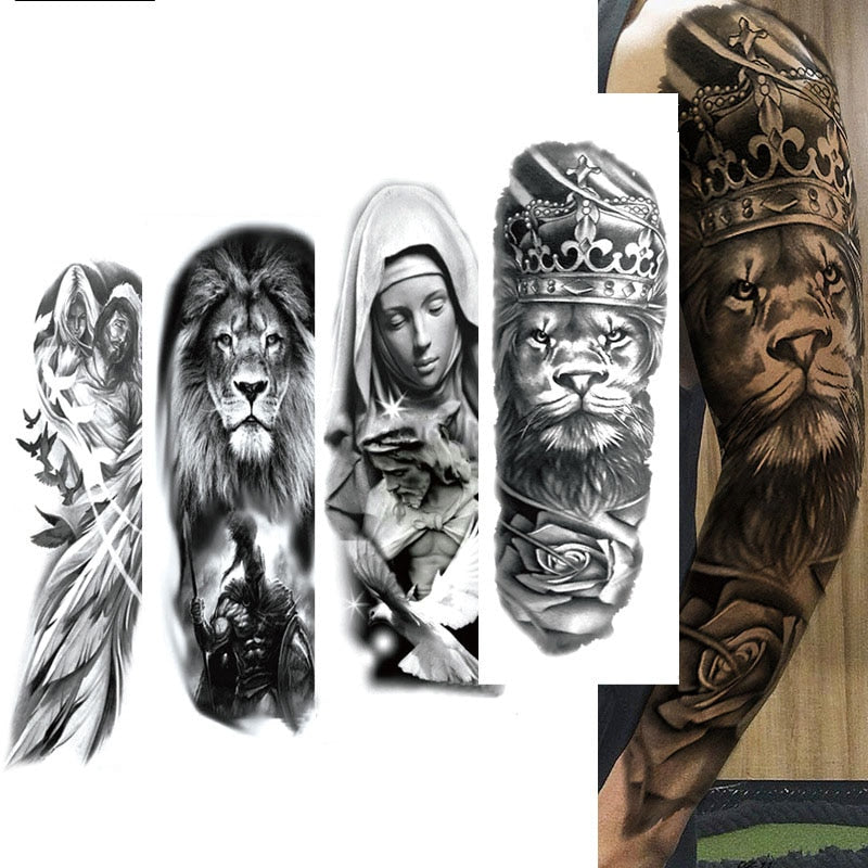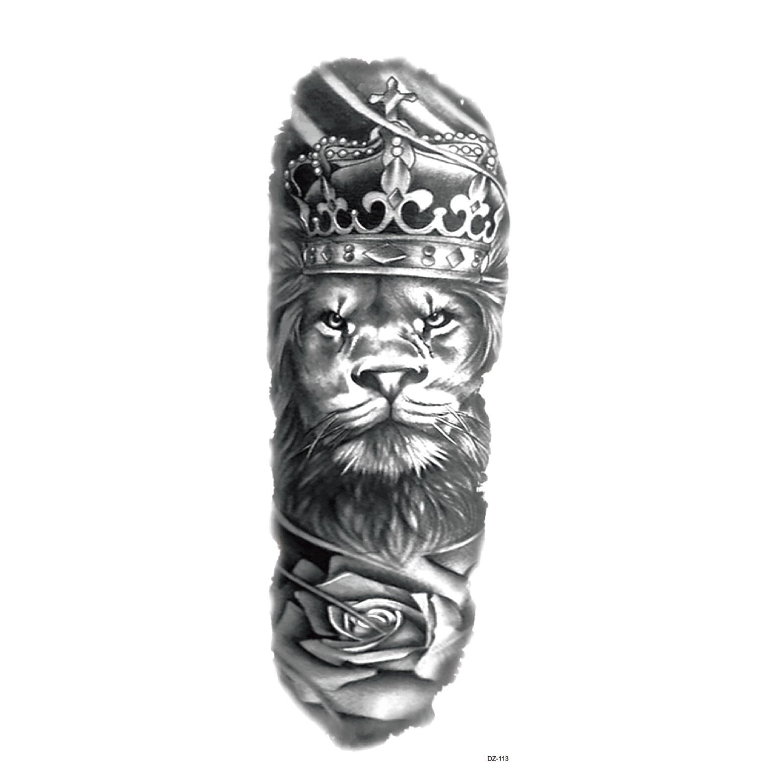 Large Arm Sleeve Tattoo Lion Crown King Rose Waterproof Temporary Tatoo Sticker Full Skull Totem Tatto