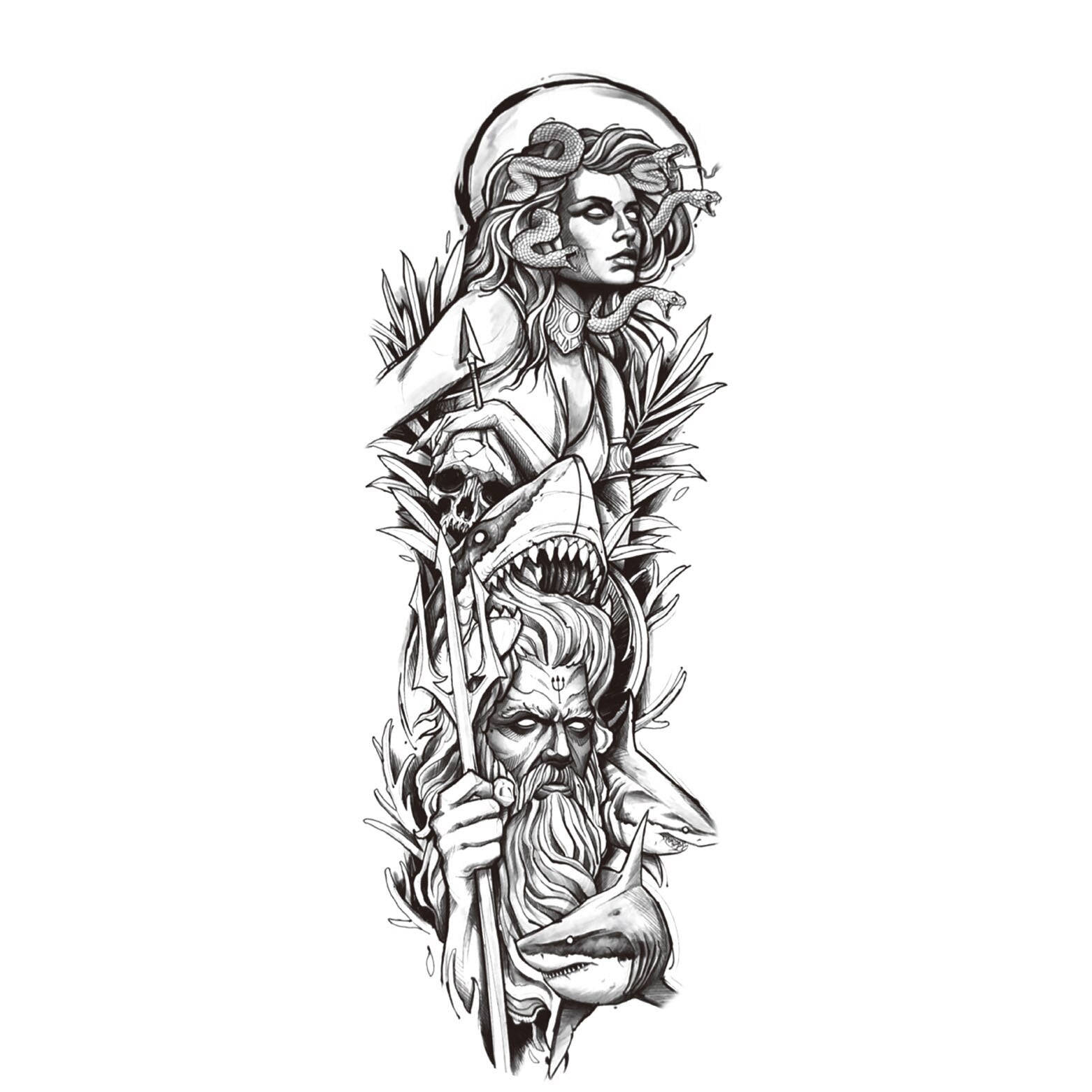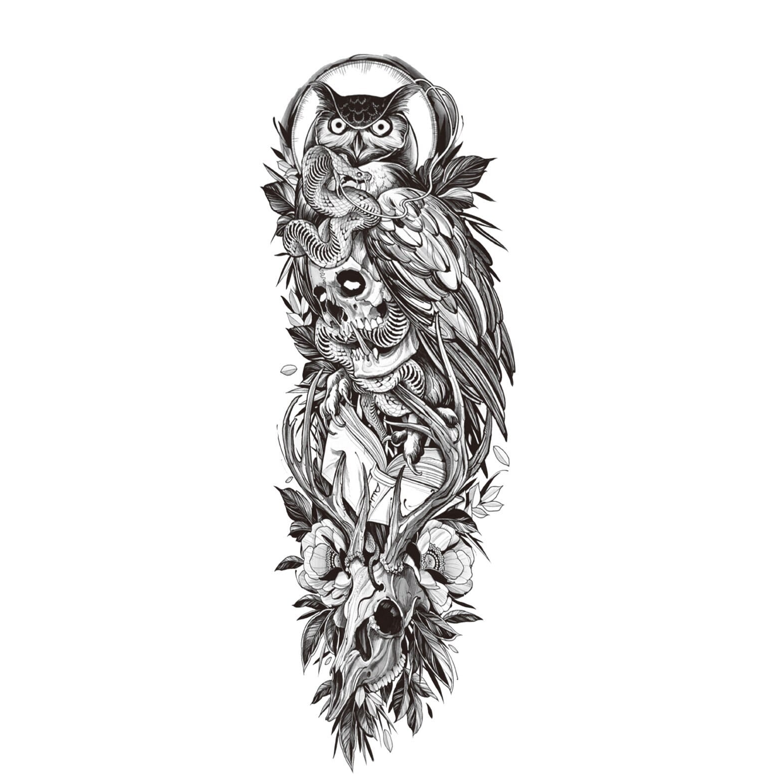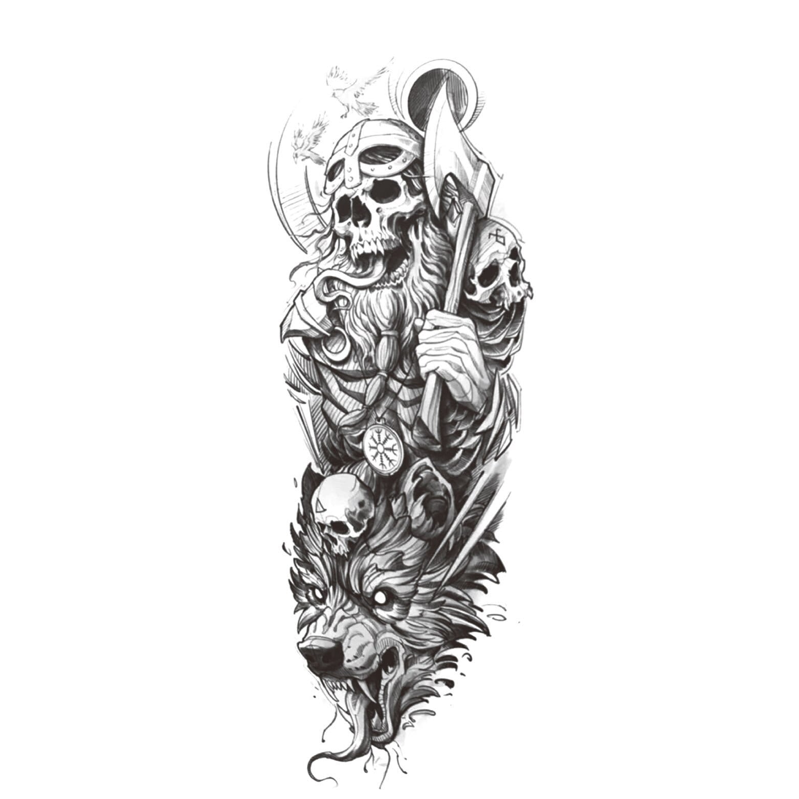 Large Arm Sleeve Tattoo Lion Crown King Rose Waterproof Temporary Tatoo Sticker Full Skull Totem Tatto