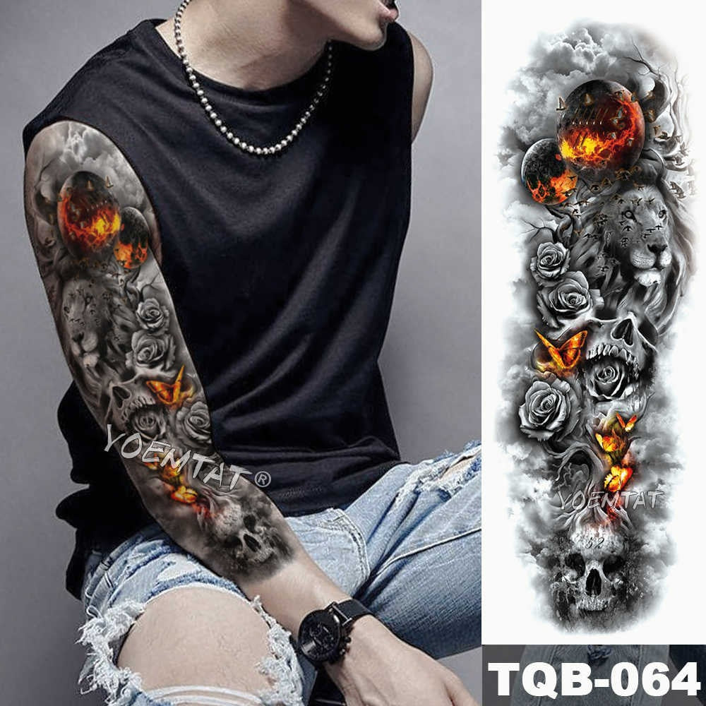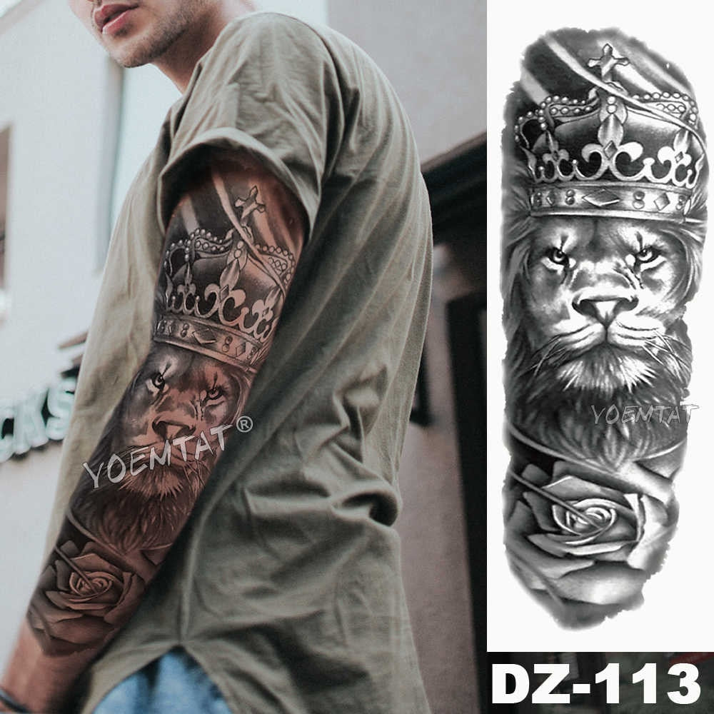 Large Arm Sleeve Tattoo Lion Crown King Rose Waterproof Temporary Tatoo Sticker Wild Wolf Tiger Men Full Skull Totem Tatto