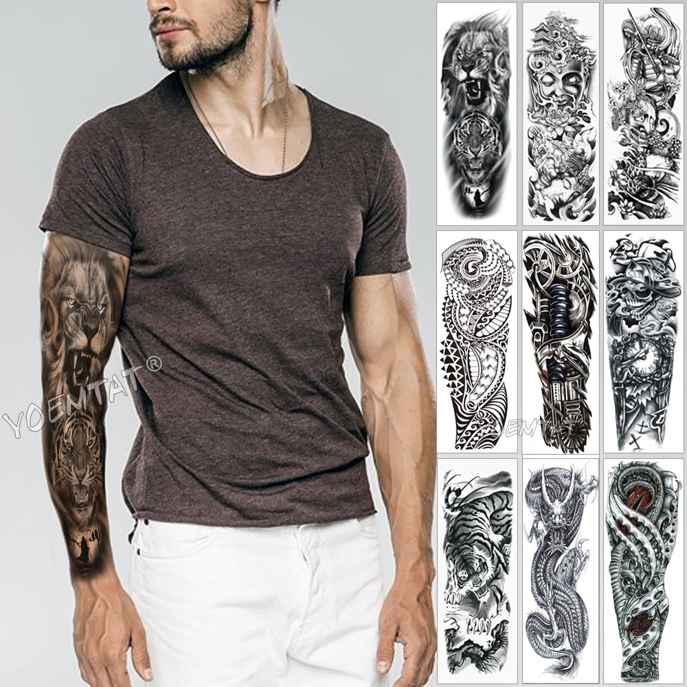 Large Arm Sleeve Tattoo Sketch Lion Tiger Waterproof Temporary Tatoo Sticker Wild Fierce Animal Men Full Bird Totem Tatto