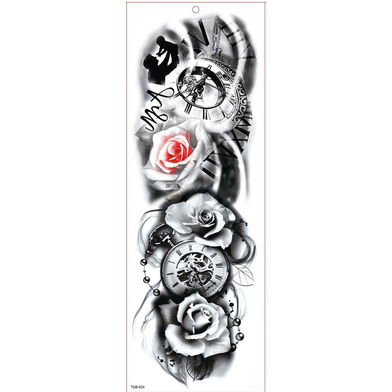 Large Arm Sleeve Tattoo Waterproof Temporary Tattoo Sticker Clock Rose Full Flower Tatoo Body Art Tattoo Girl