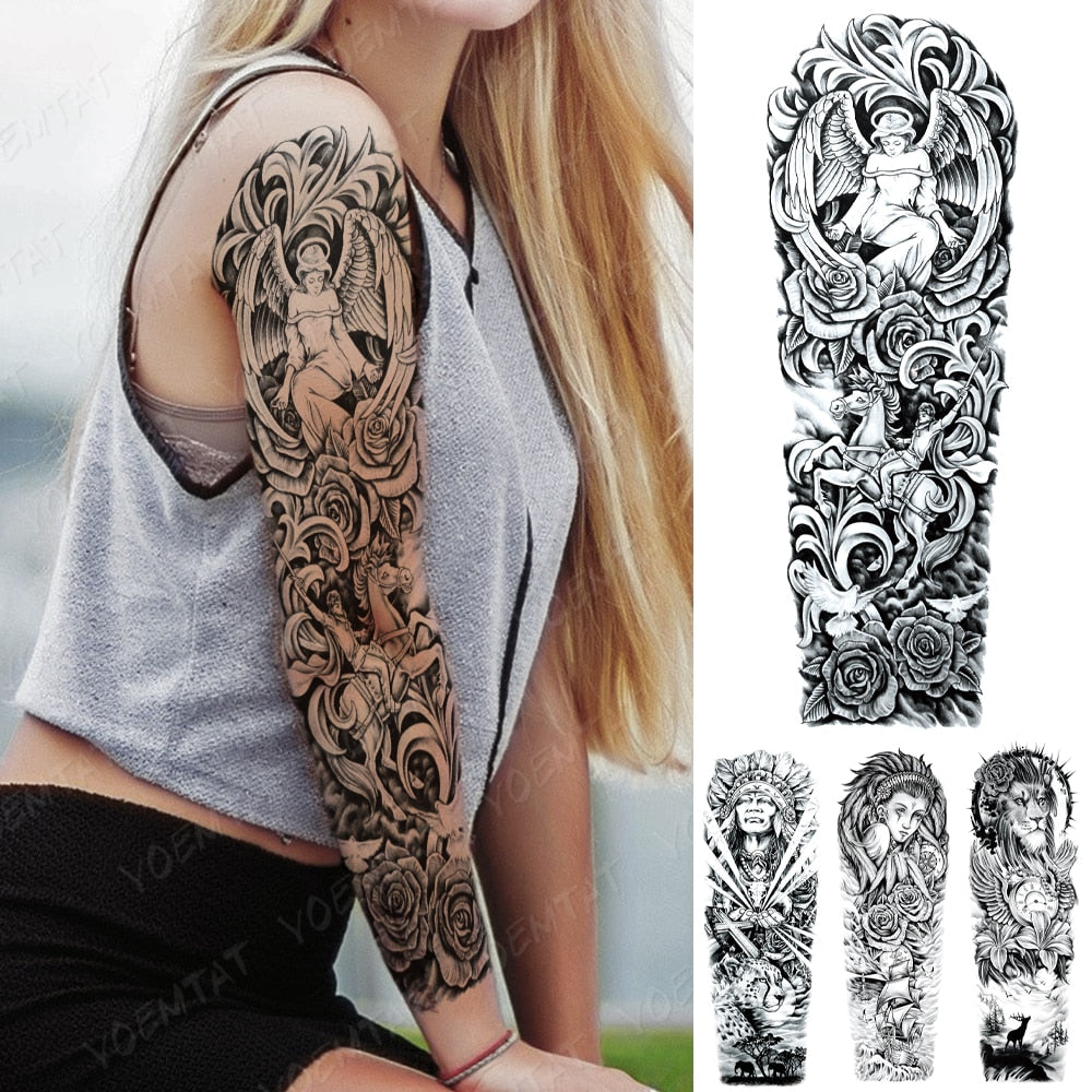 Large Full Arm Sleeve Tattoo Angel Knight Soldier Waterproof Temporary Tatoo Sticker Baroque Style Men Women Body Art Tatto