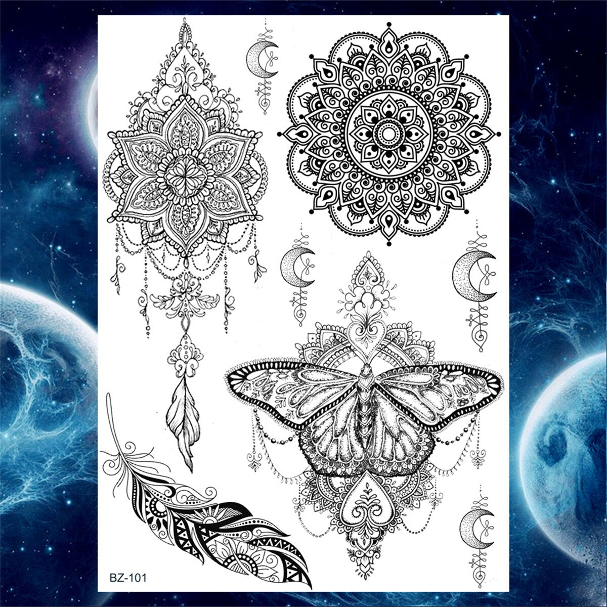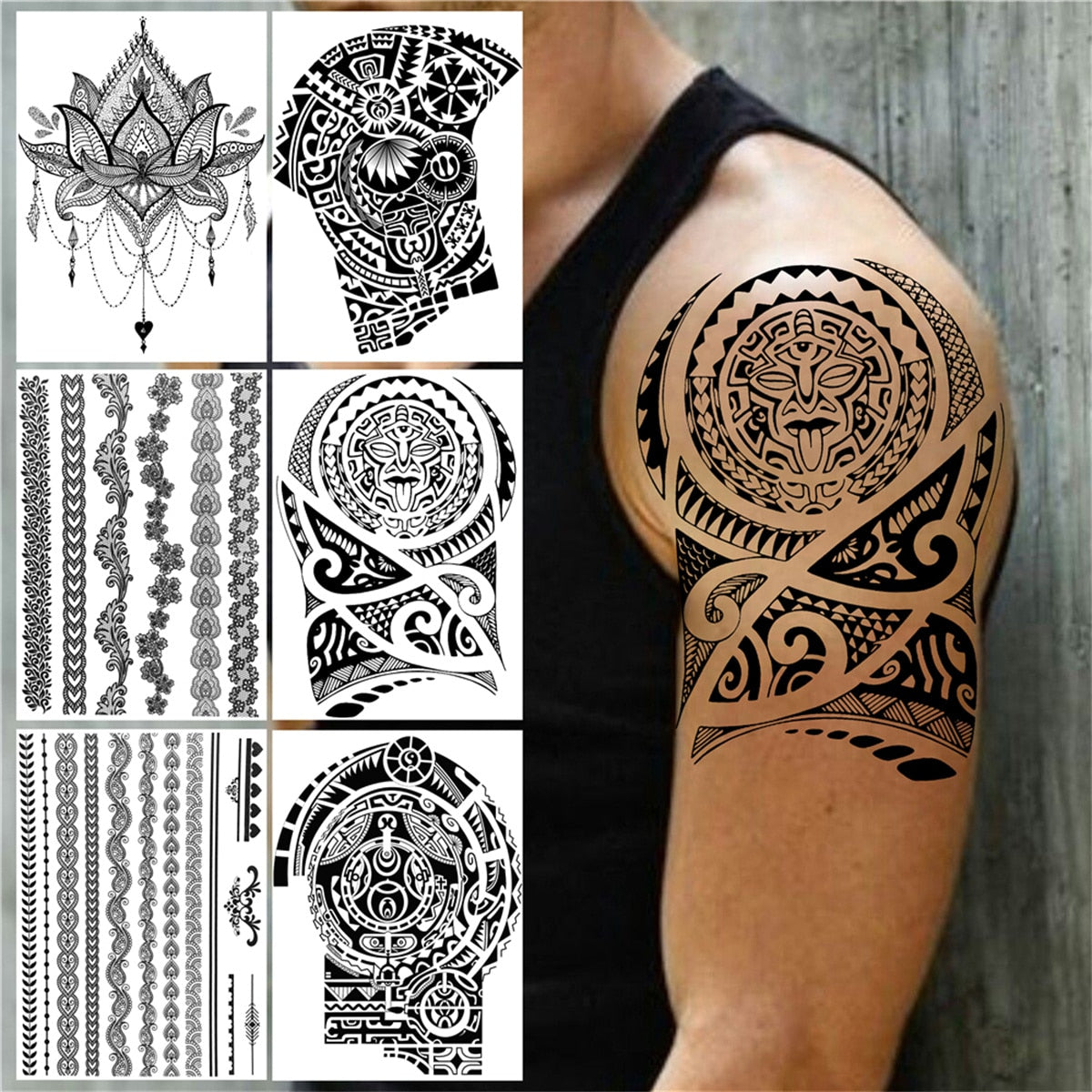 Large Tribal Totem Temporary Tattoos For Men Women Adult Henna Lotus Tattoo Sticker Fake Black Lace Flower Body Art Tatoos Arm