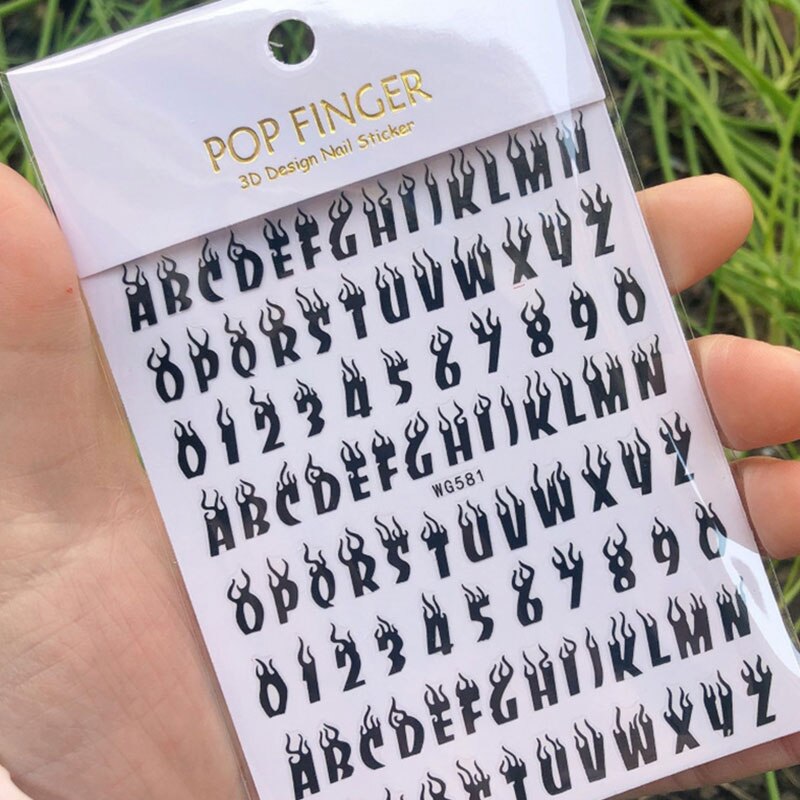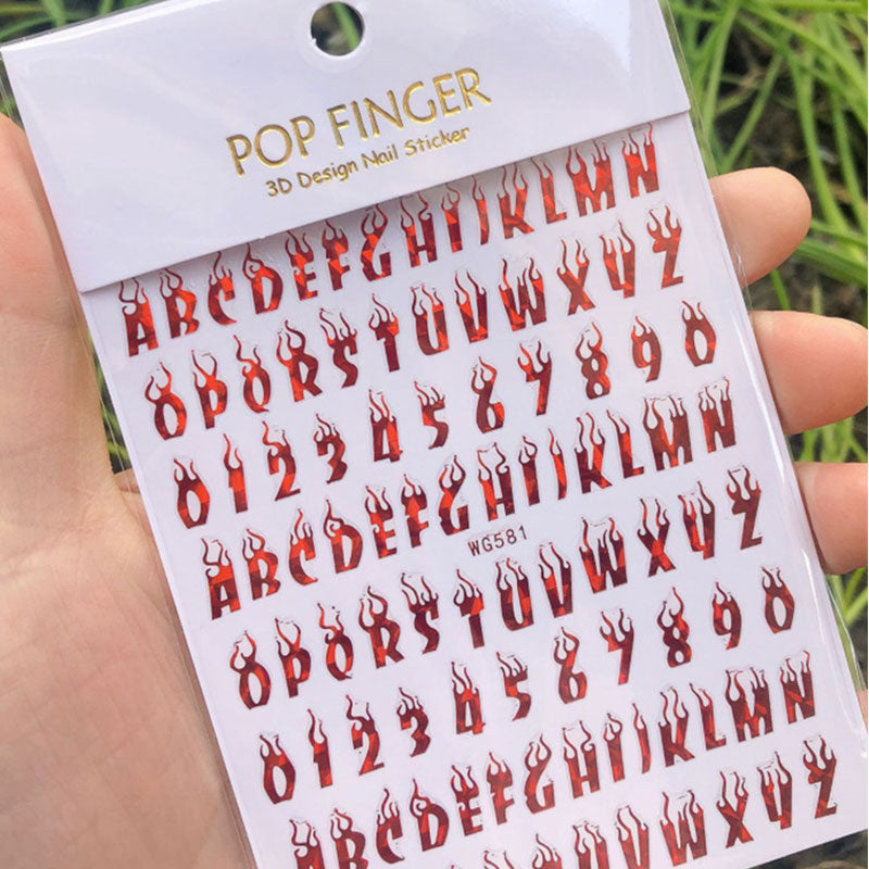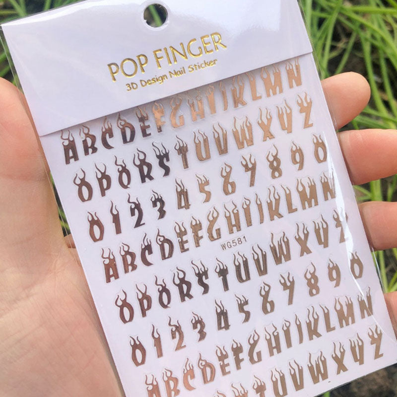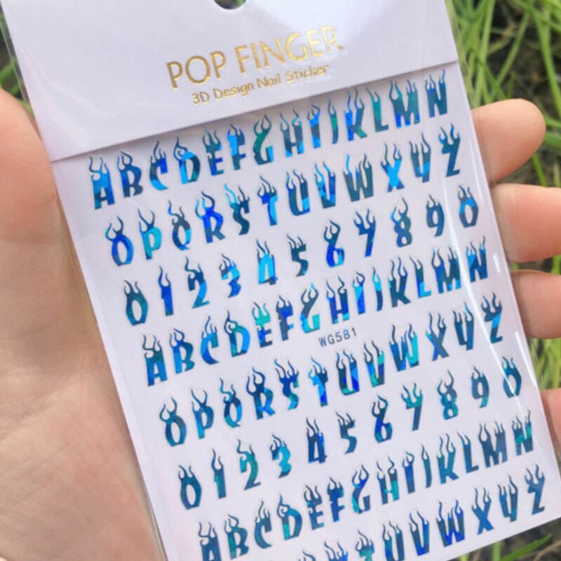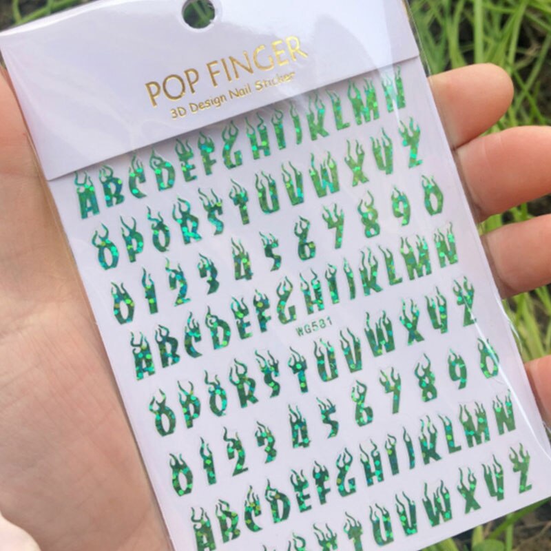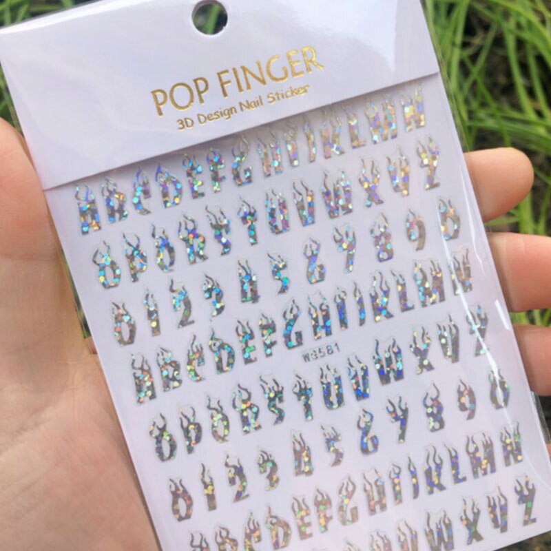 Laser Alphanumeric 10 Color Nail Sticker Decoration 3D Burning Alphabet Arabic Numerals Nail Slider Decal Manicure Accessories