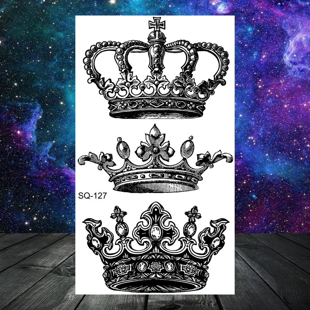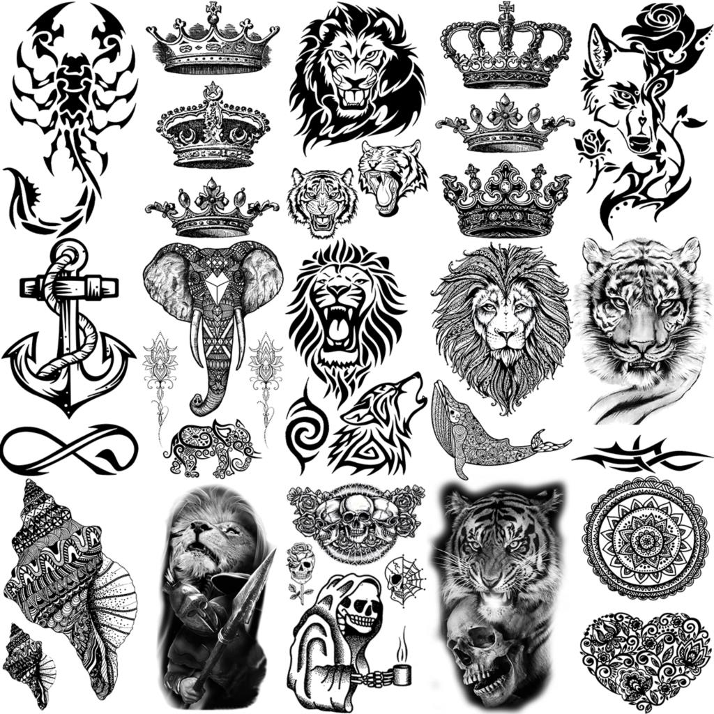 Lion Tiger Elephant Wolf Temporary Tattoos For Women Adult Men Skull Mandala Anchor Crown Fake Tattoo Neck Arm Hands Small Tatoo