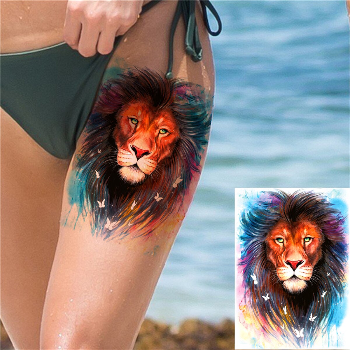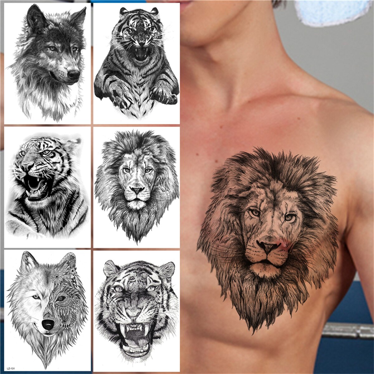 Lion Tiger Temporary Tattoos For Men Women Adult Large Wolf Tattoo Sticker Black Animals Transferable Fake 3D Tatoos Covers Up
