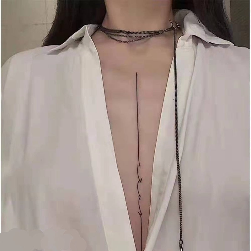 Long Line Temporary Tattoo Stickers Chest Female Waterproof Simple Beaded Arm Collarbone Personality Fake Tattoo Small Pattern