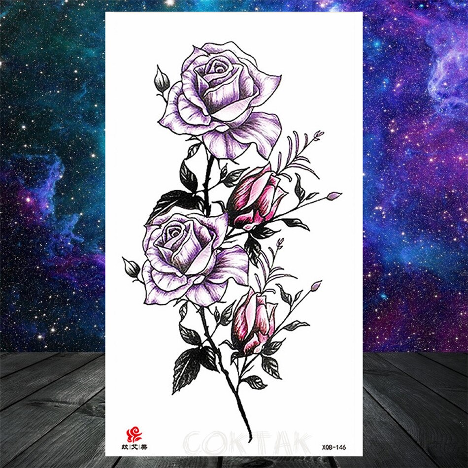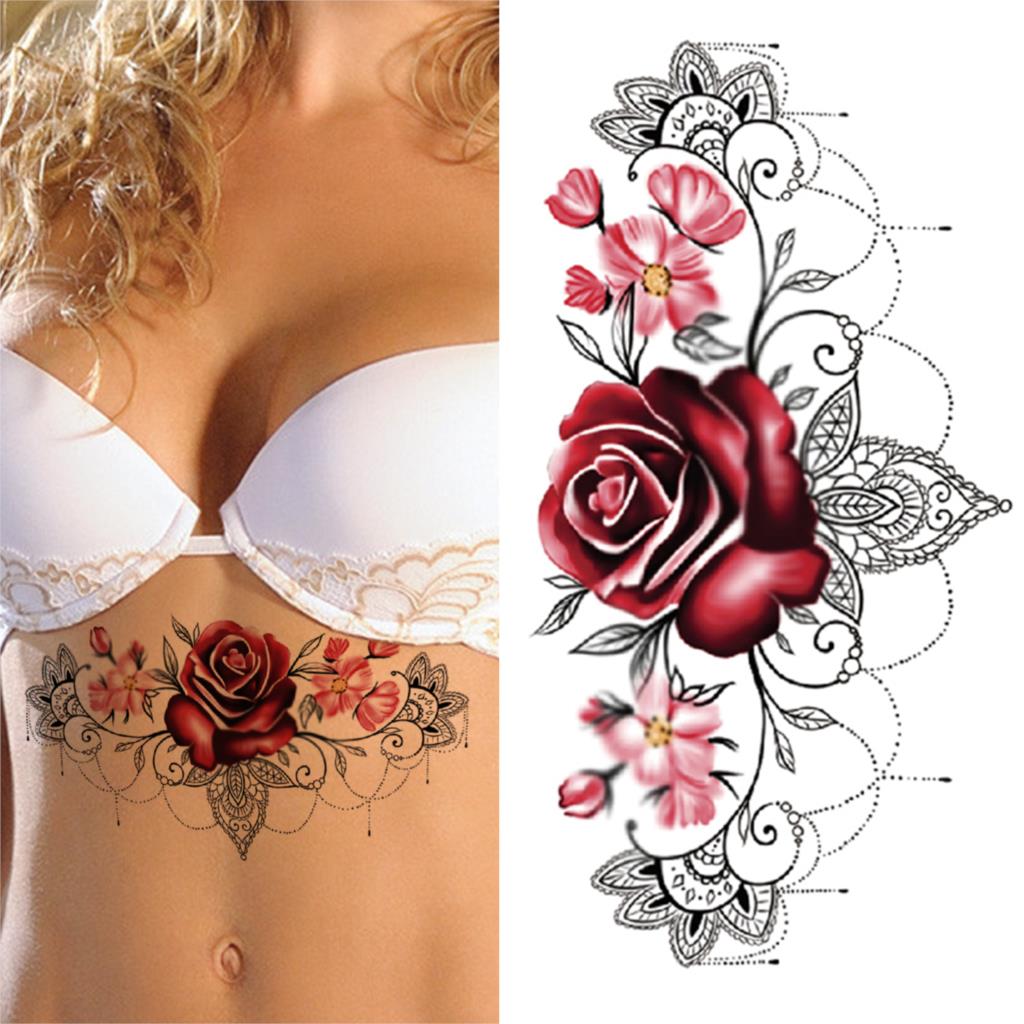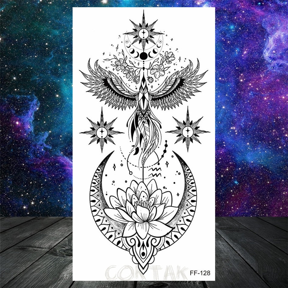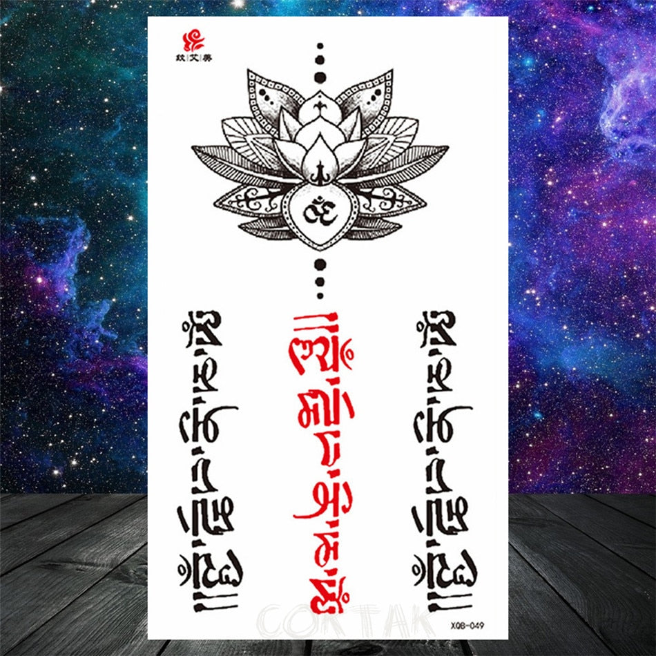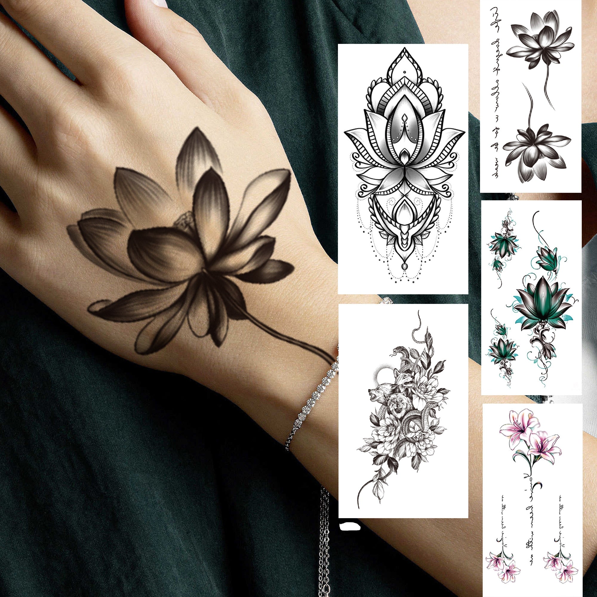 Lotus Flower Temporary Tattoo For Women Girls Snake Peony Lily Rose Chains Tattoos Sticker Black Blossom Fake Transferable Tatoo