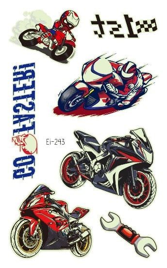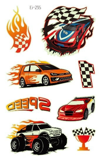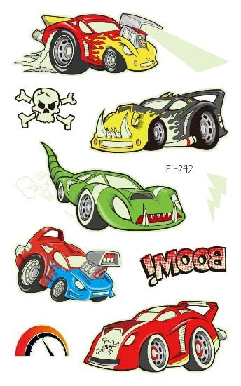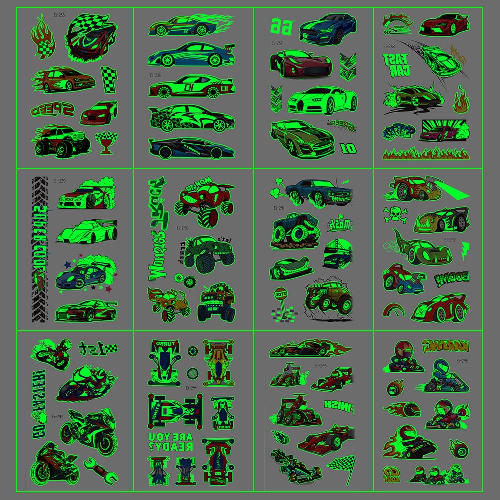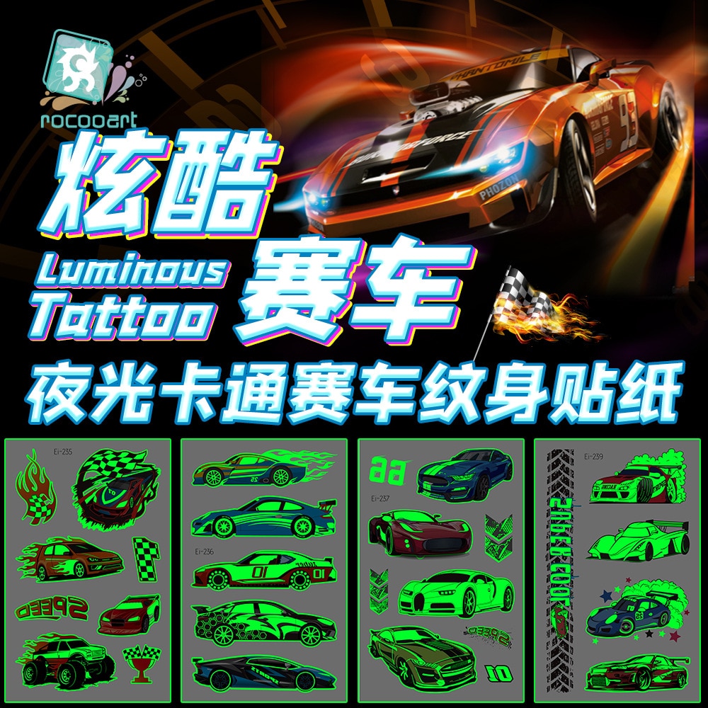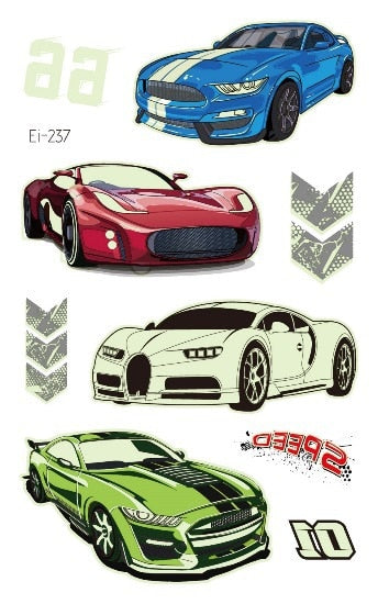 Luminous Cool Racing Tattoo Stickers Waterproof Party Cartoon Car Children's Temporary Tattos Hand Body Foot Men Fake Tatoo