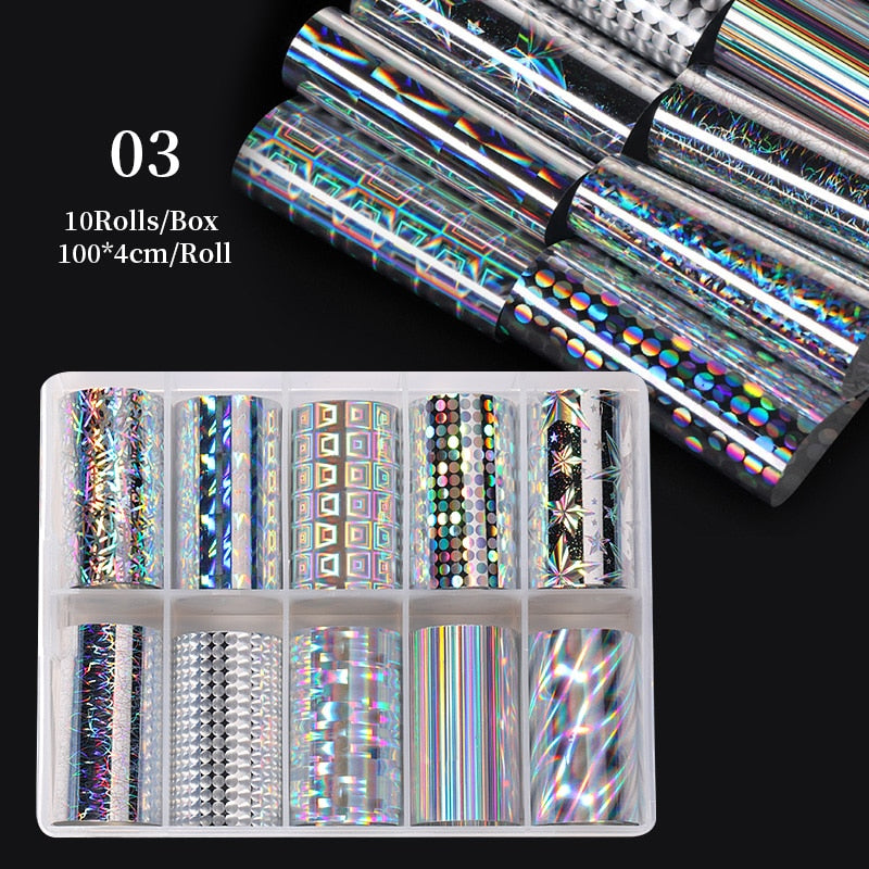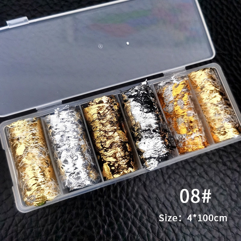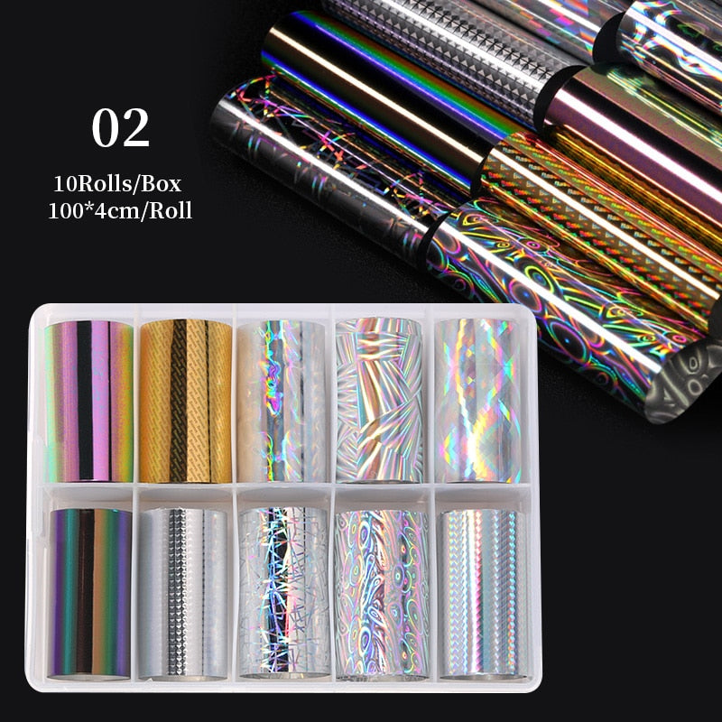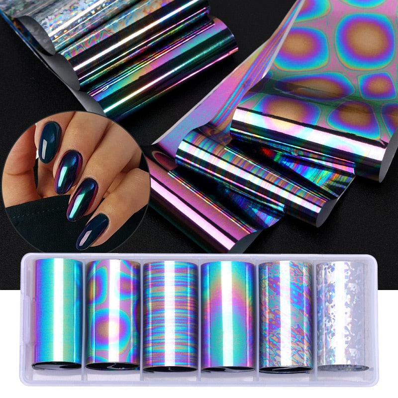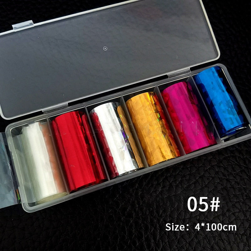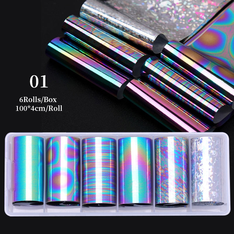 Luxury Iridescent Transfer Foil Paper Sticker Designer Set Nail Art Decal Adhesive Tropical Star 3D Art Decoration